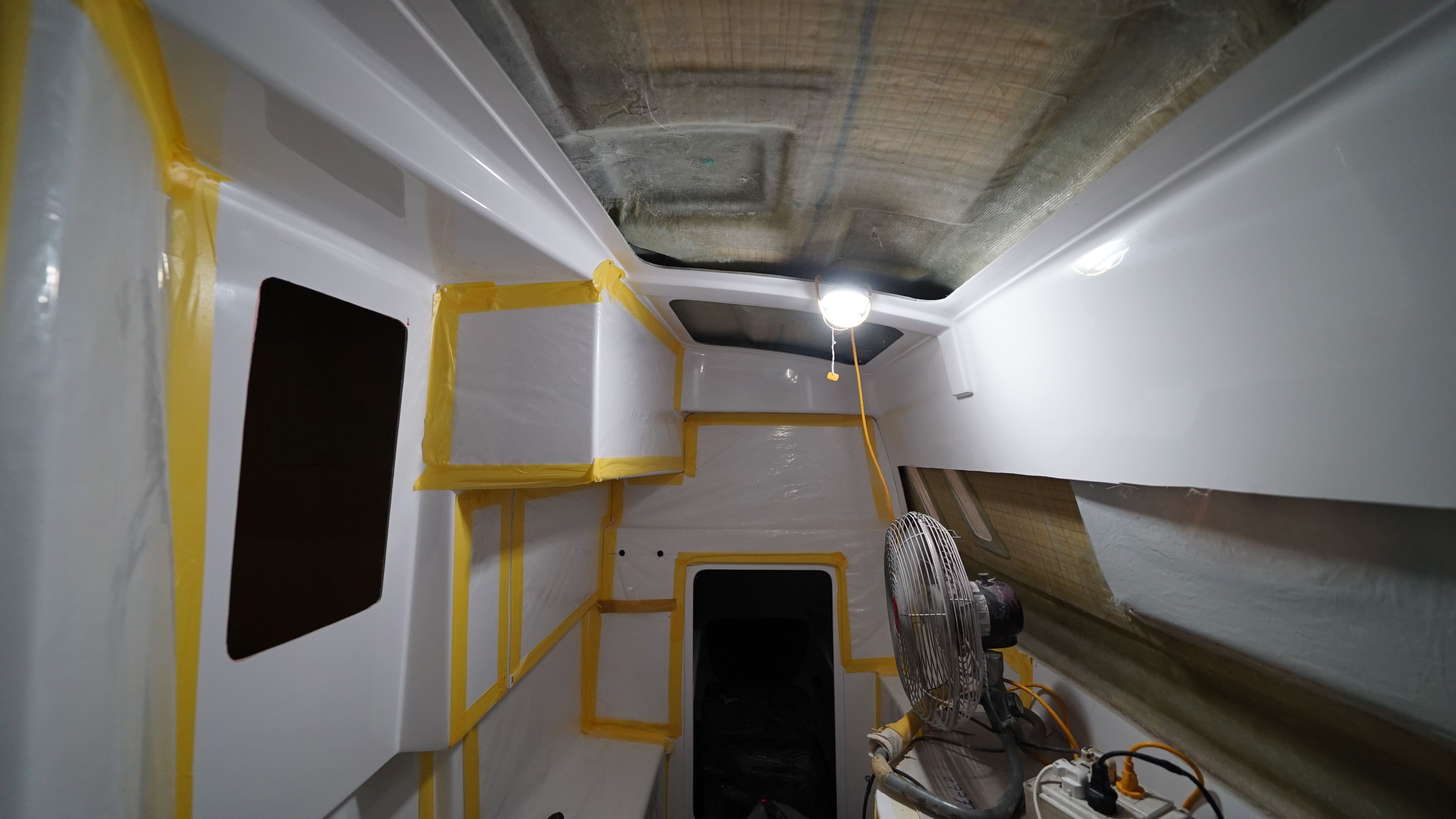 At this stage, the interior laminations between the hull and deck are now 90% finished, reflecting steady advancement toward the next milestones. Exterior gelcoat repair work is scheduled to begin next week.