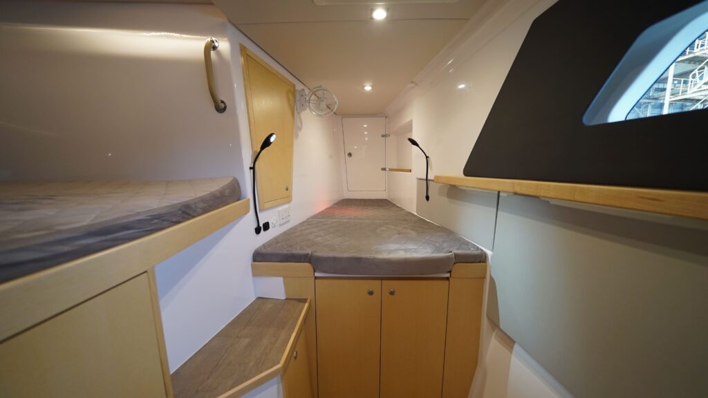 The boat has recently been equipped with some critical parts to get closer to Detailing & QA stage. At this point, we have completed the hull–deck interior laminations as well as the exterior and interior gelcoat repairs. The windows, fuel system, and bilge system have also been installed.
