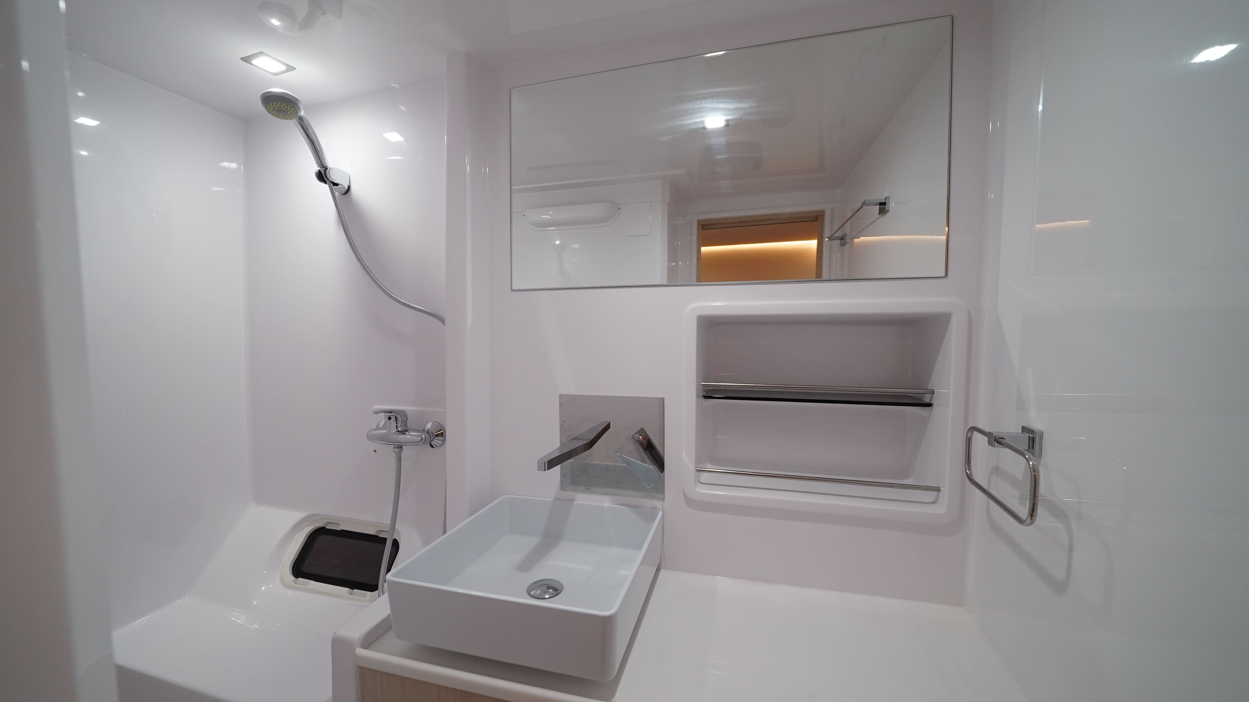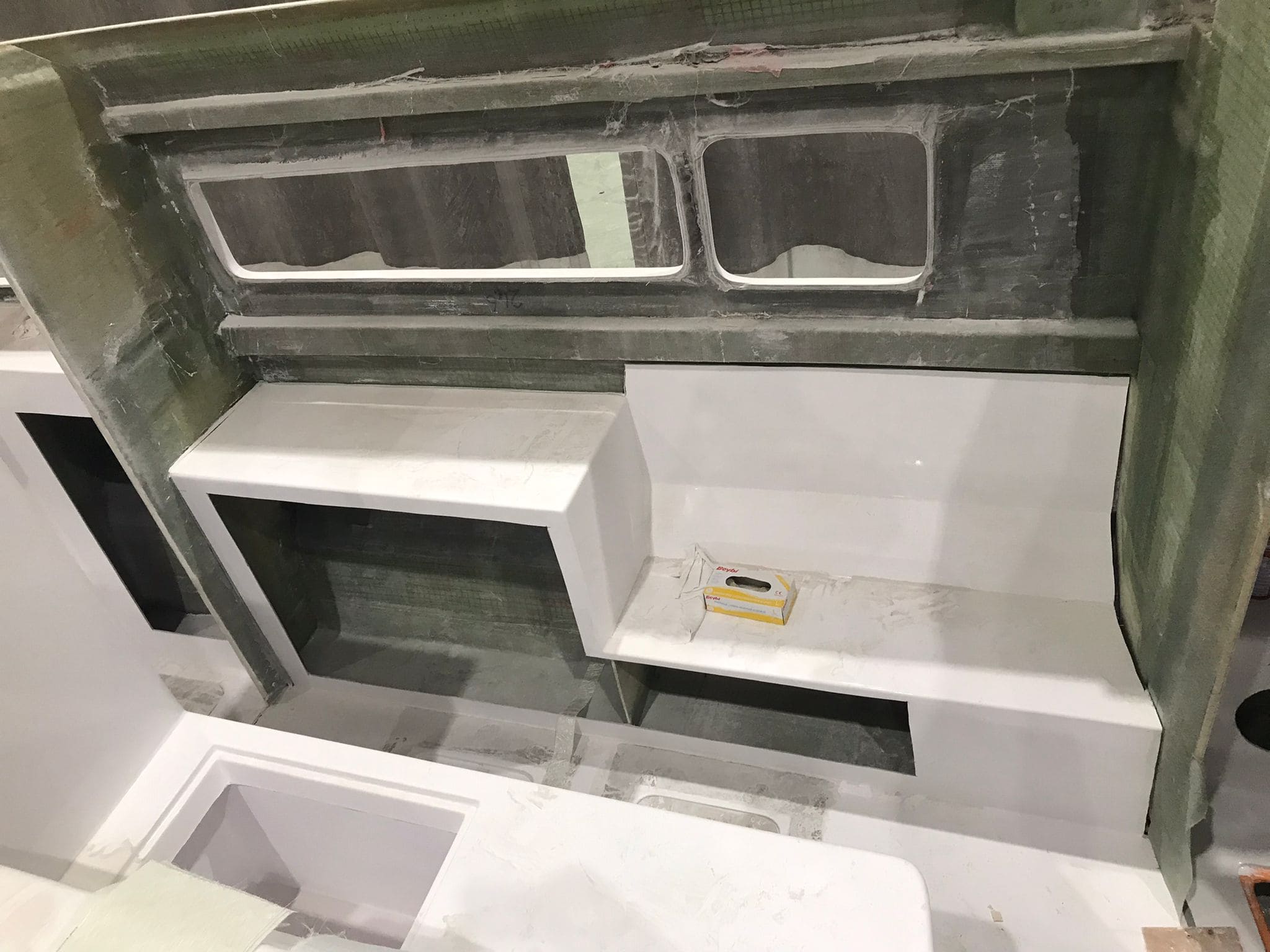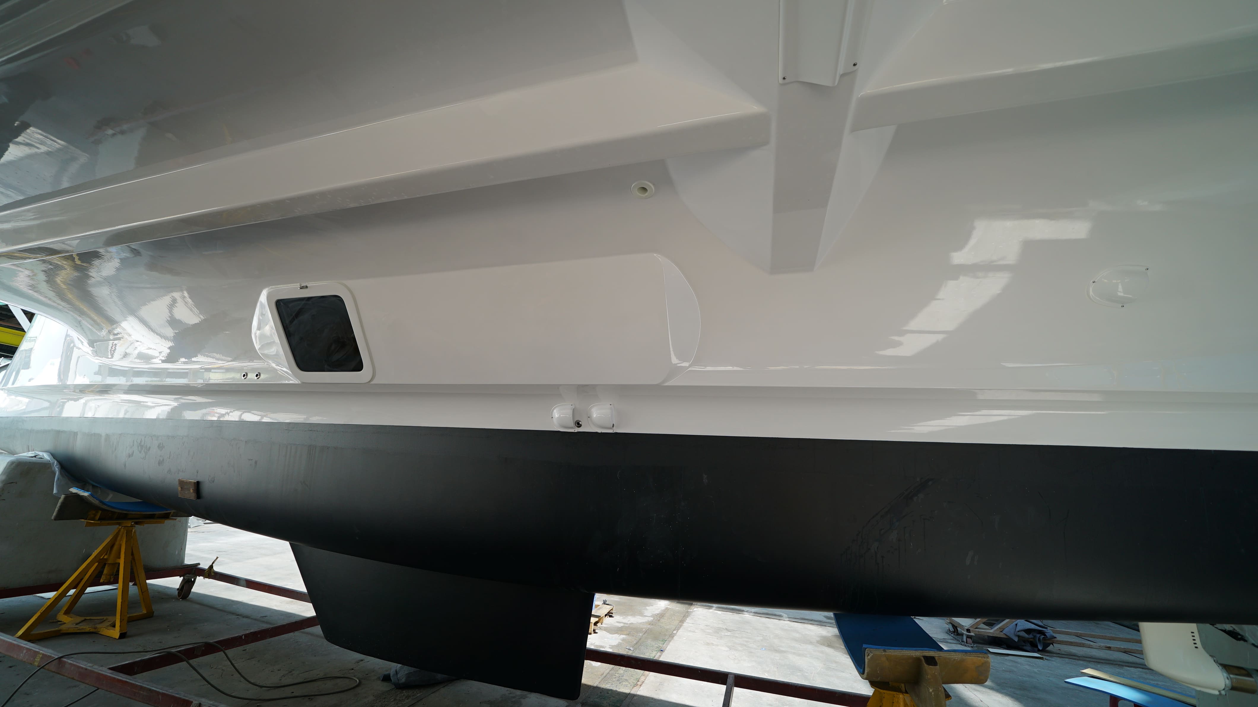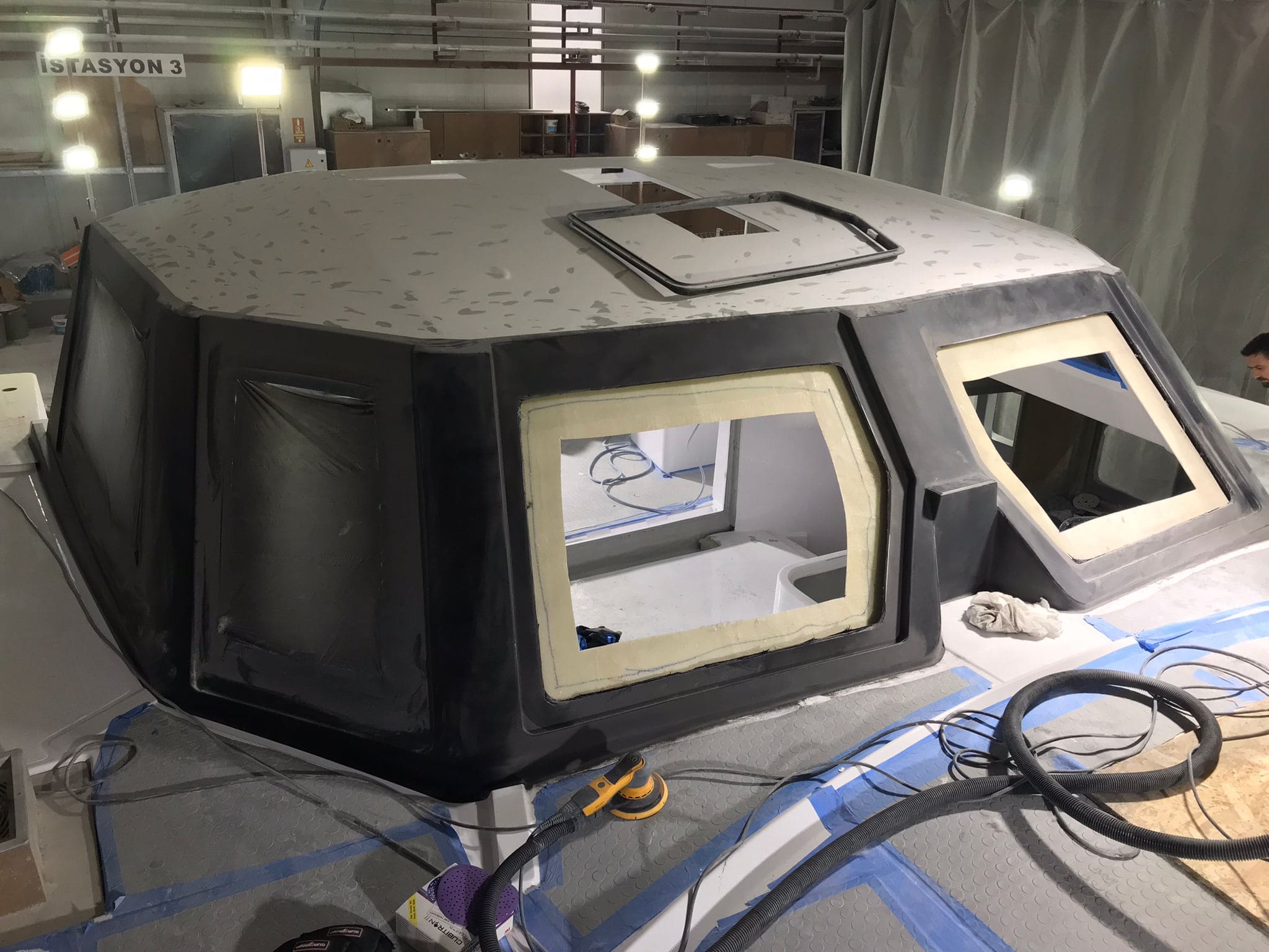 The boat has recently been equipped with some critical parts to get closer to Detailing & QA stage. At this point, we have completed the hull–deck interior laminations as well as the exterior and interior gelcoat repairs. The windows, fuel system, and bilge system have also been installed.