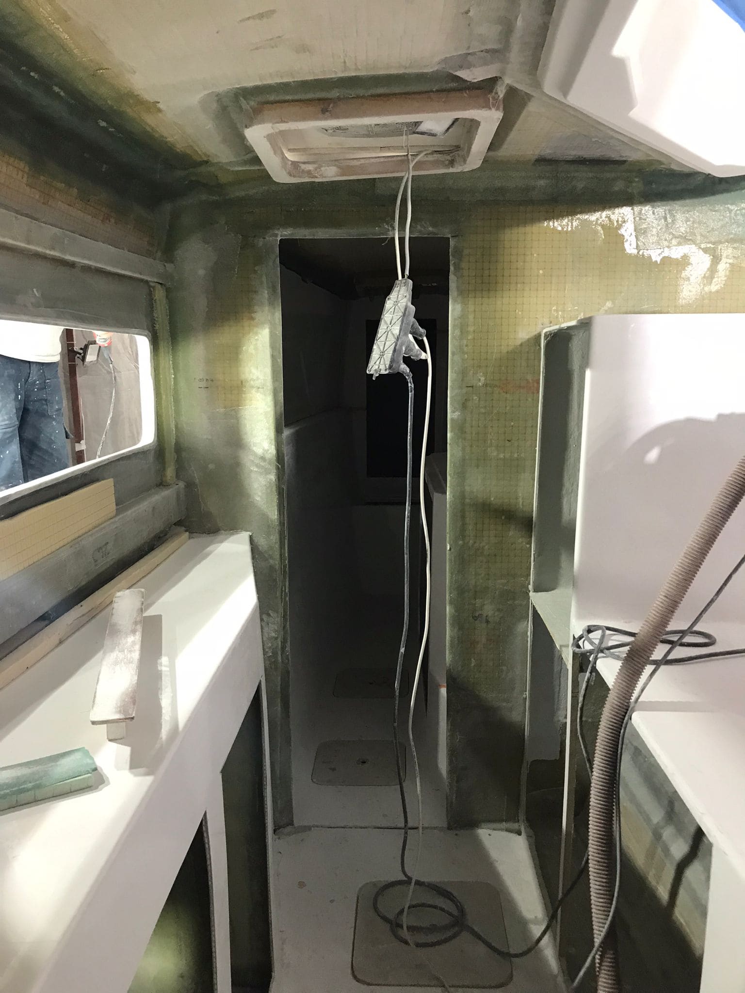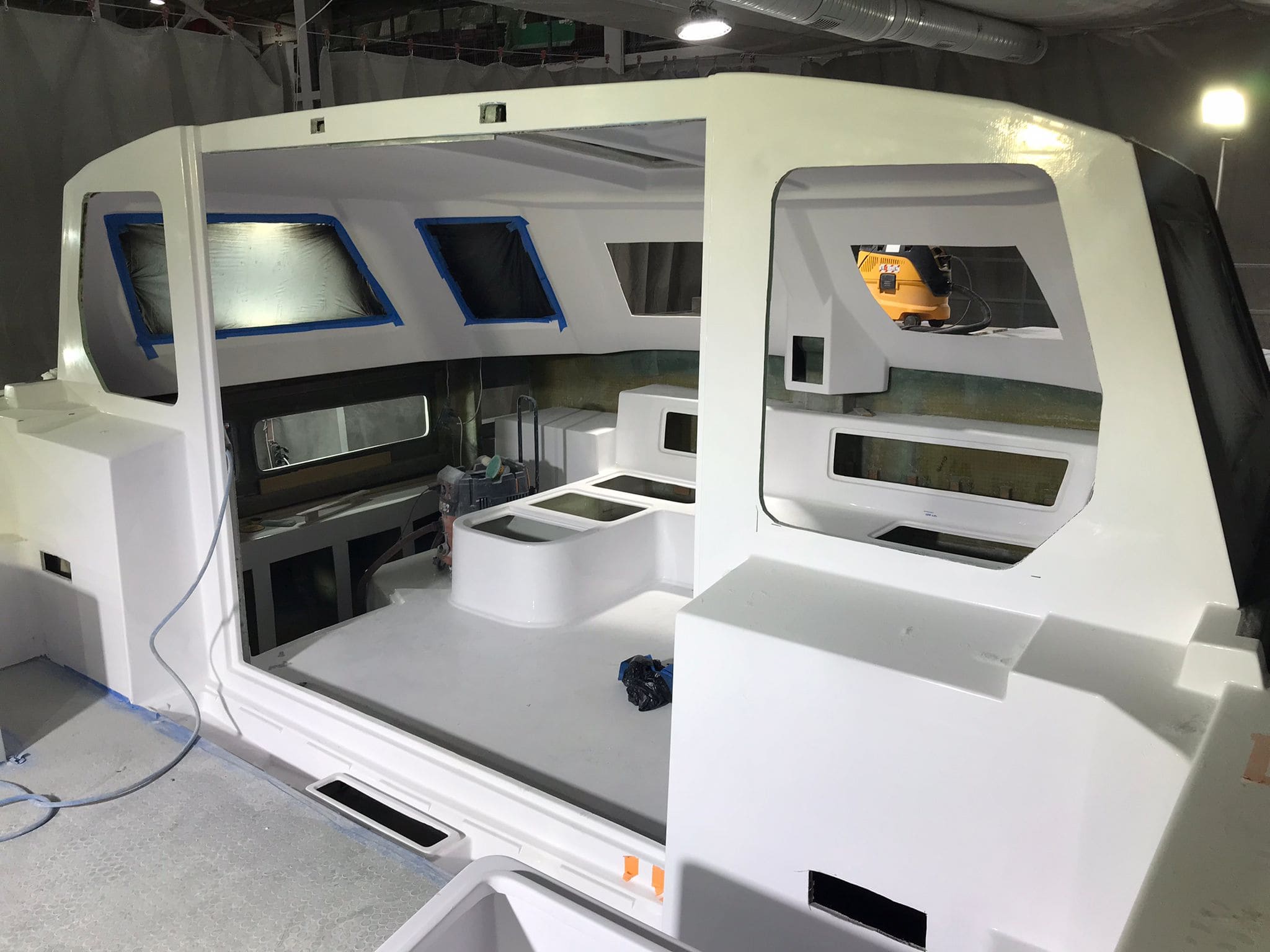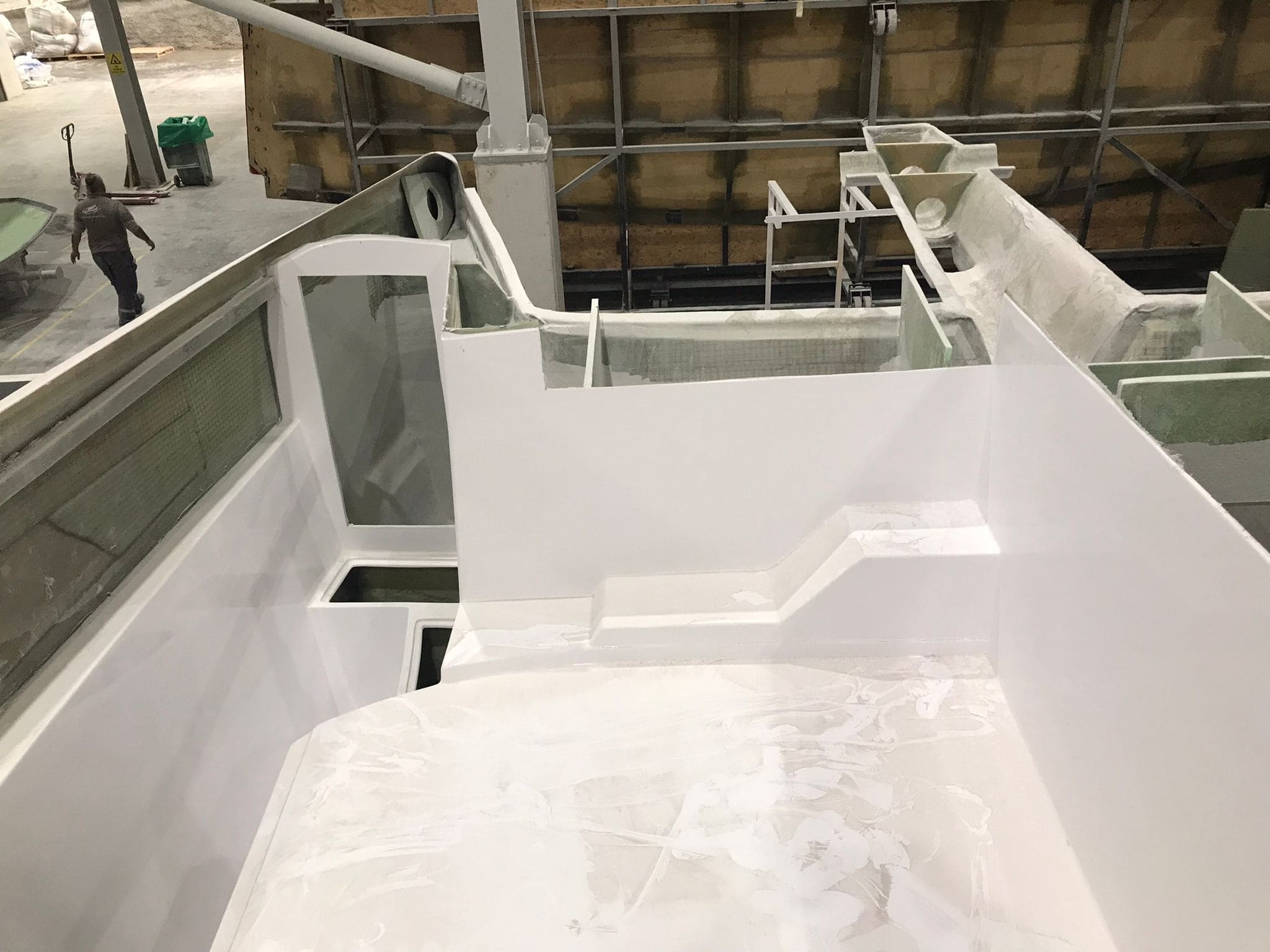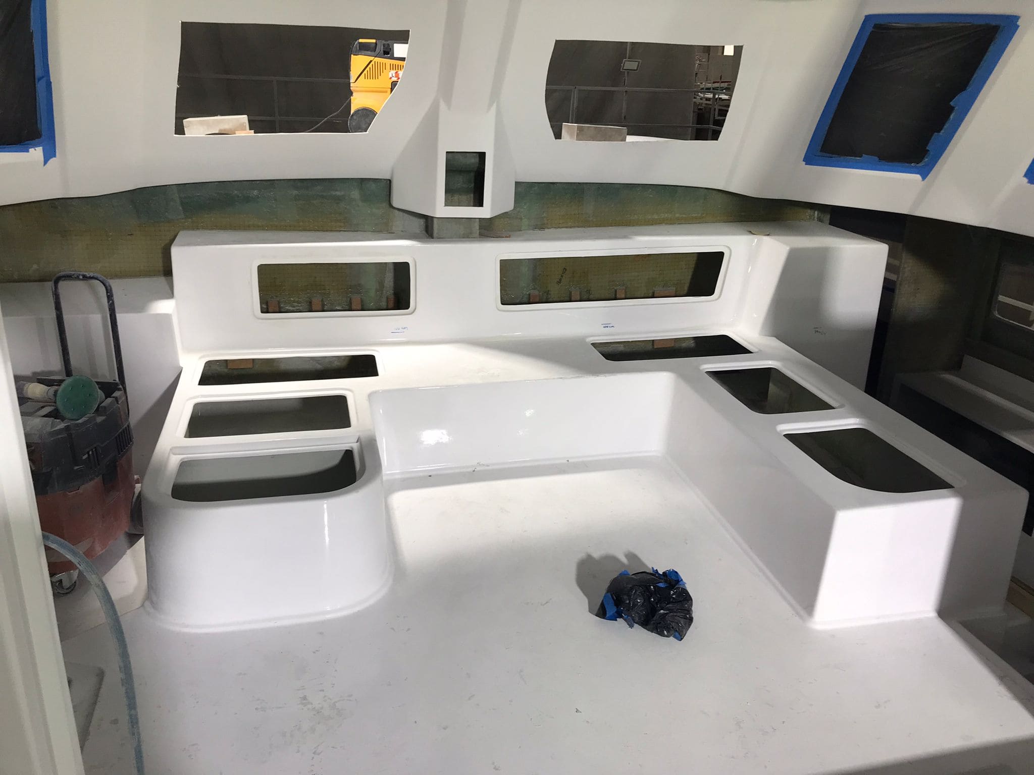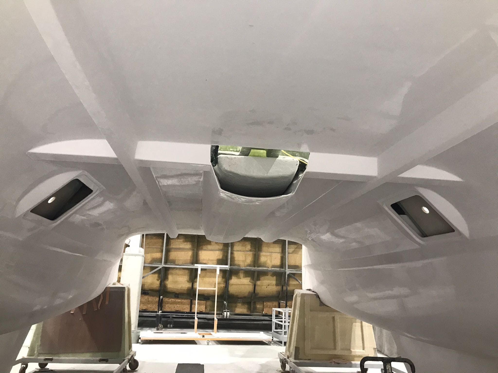 At this stage, the interior laminations between the hull and deck are now 90% finished, reflecting steady advancement toward the next milestones. Exterior gelcoat repair work is scheduled to begin next week.