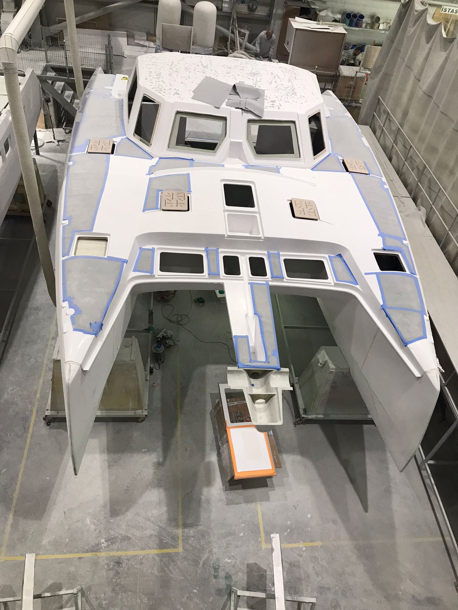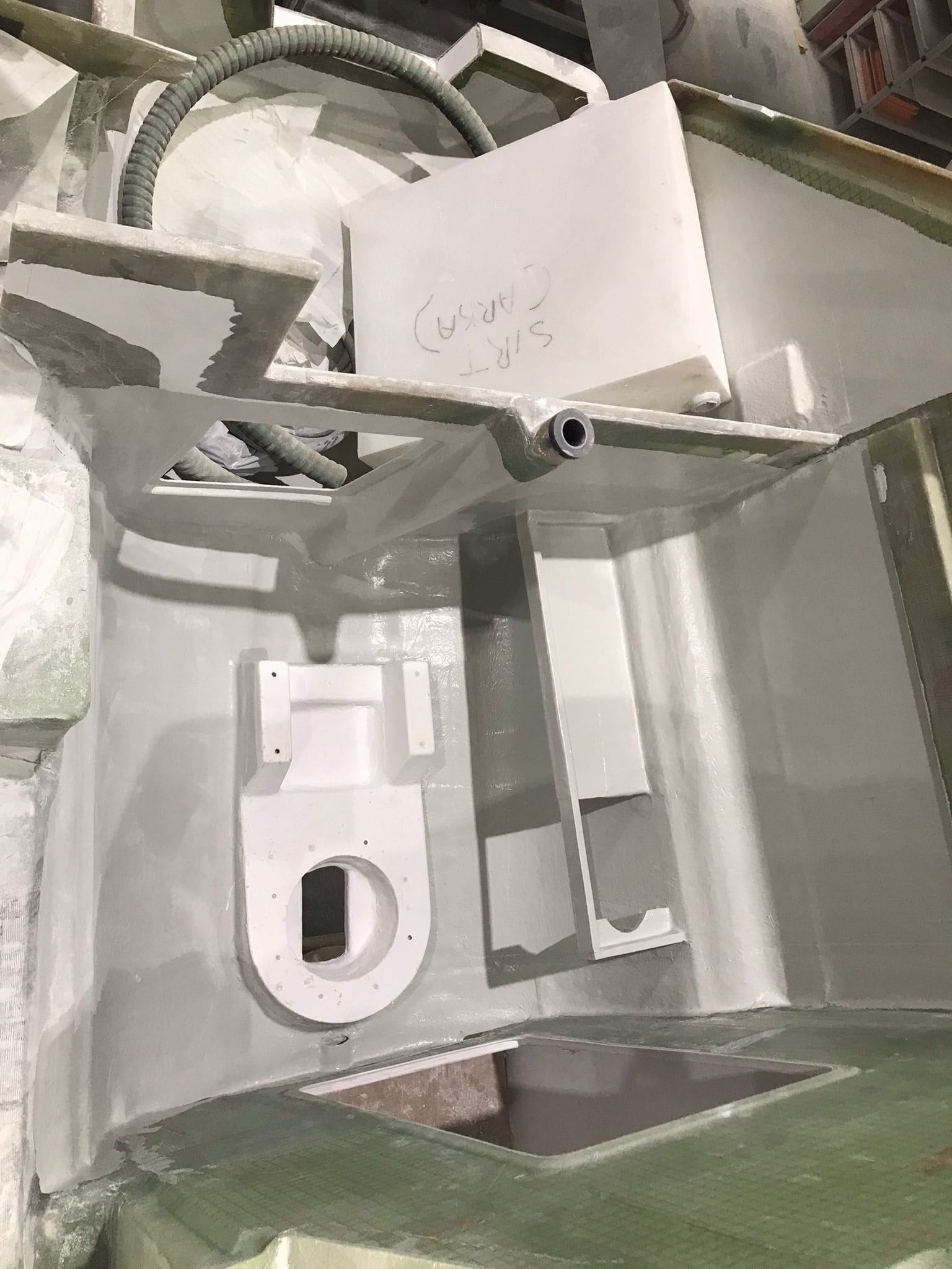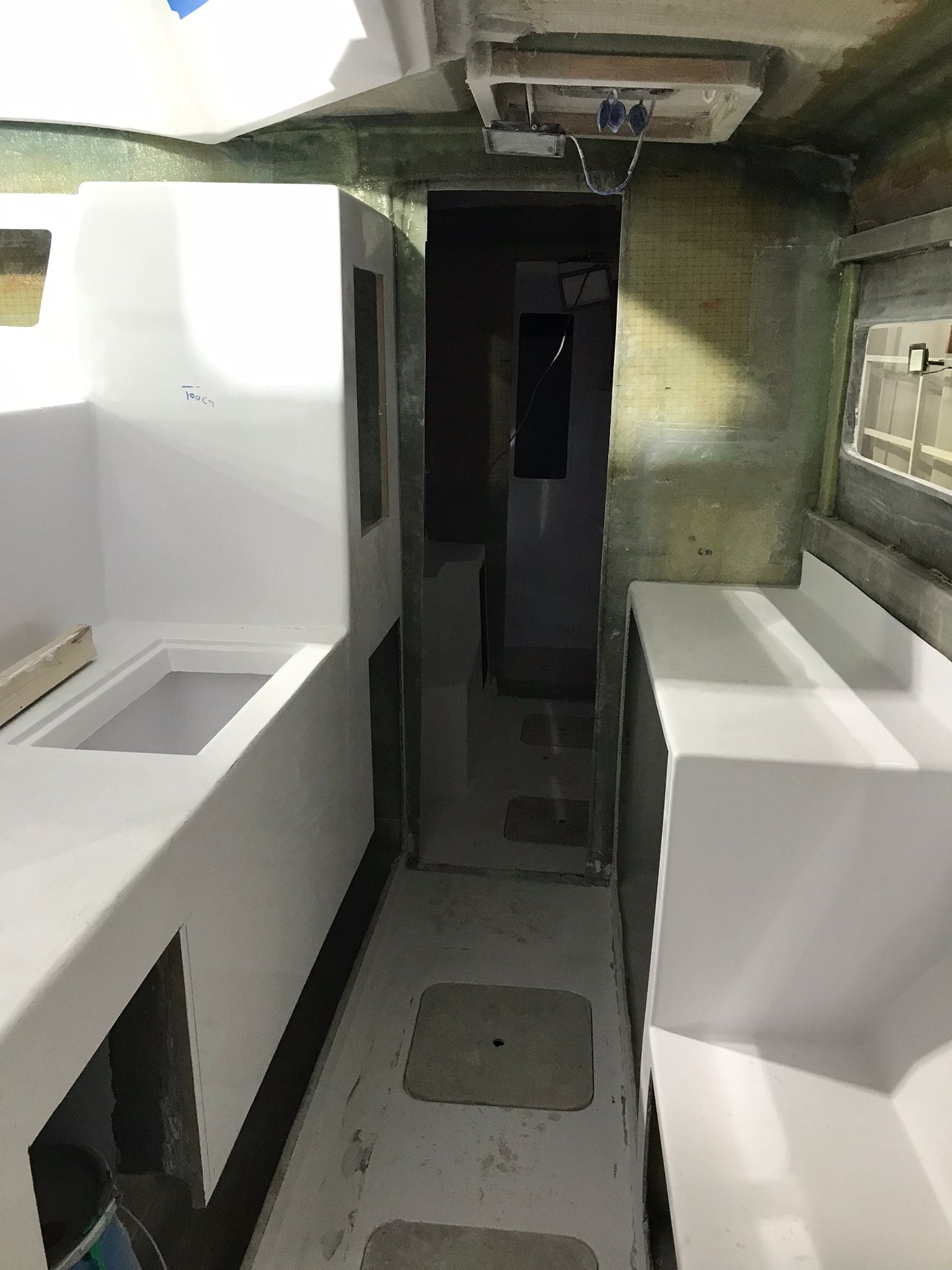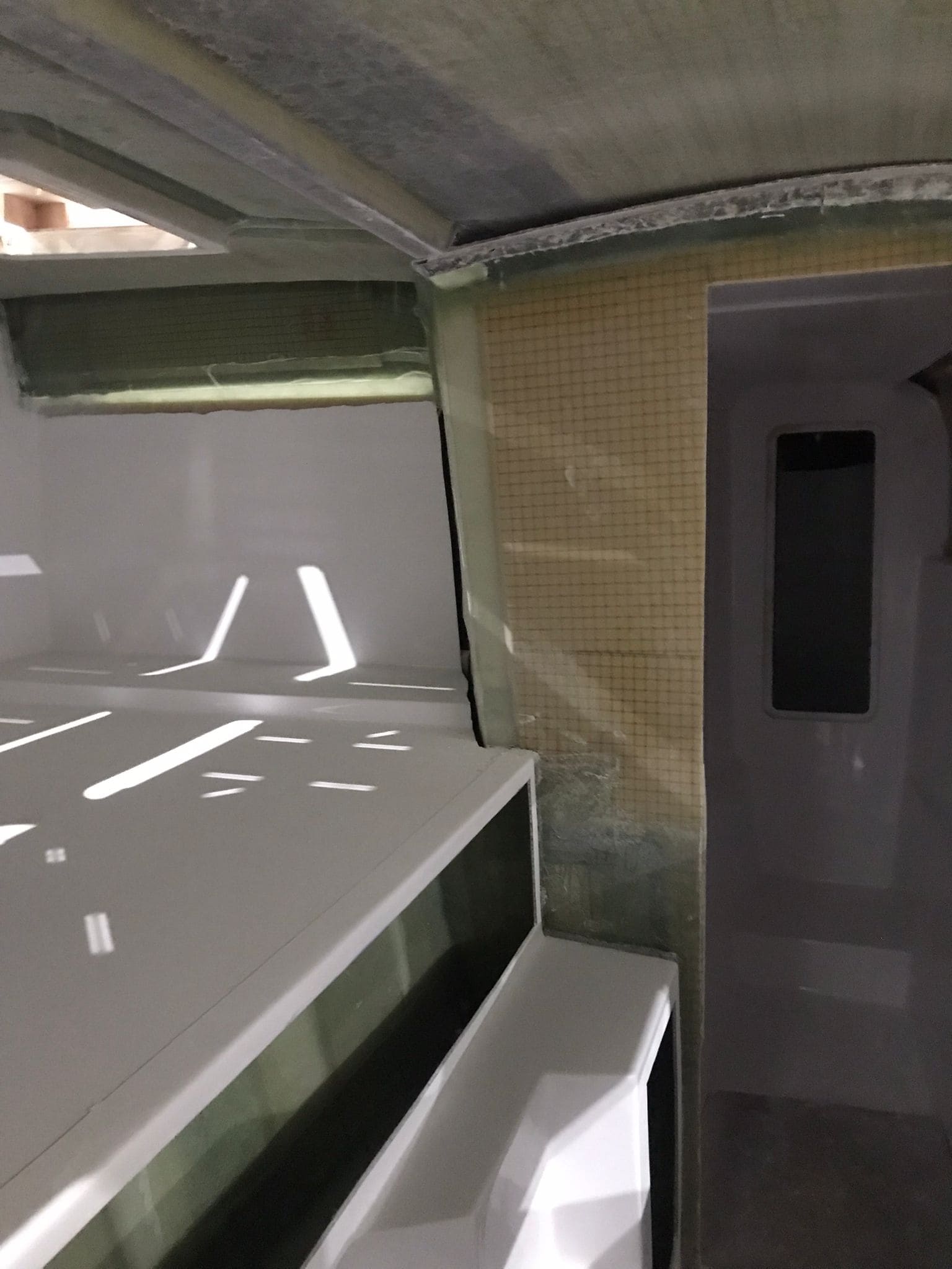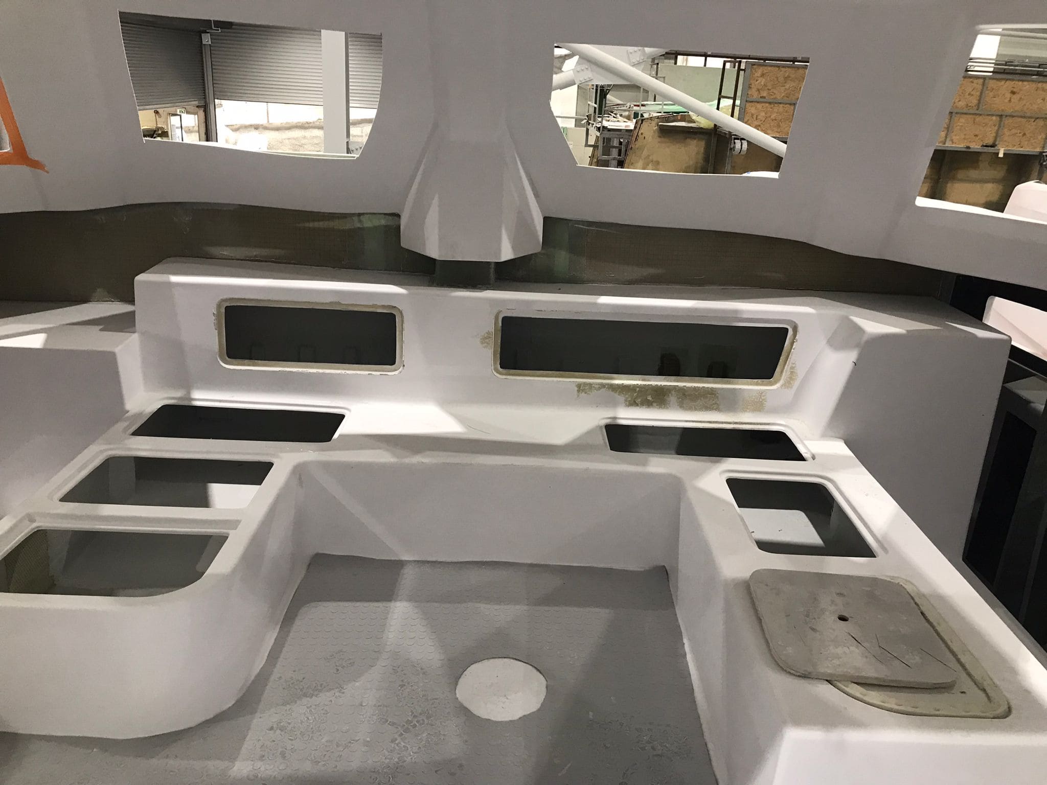 At this stage, the interior laminations between the hull and deck are now 90% finished, reflecting steady advancement toward the next milestones. Exterior gelcoat repair work is scheduled to begin next week.