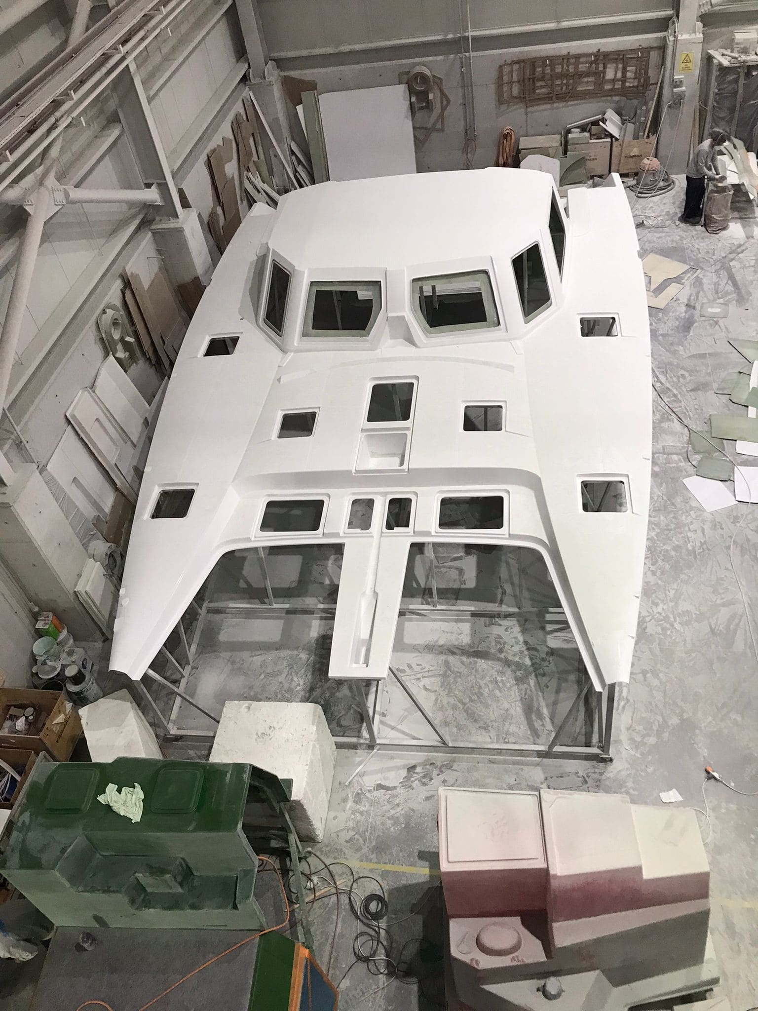 As you can see in the below photos, some elements have already been completed, including the full manufacturing of all furniture, marking a strong foundation for the upcoming phases. Hull lamination is currently ongoing, with deck lamination scheduled to begin later this week. In parallel, the installation of the bulkhead, spider, and omega parts is also underway.