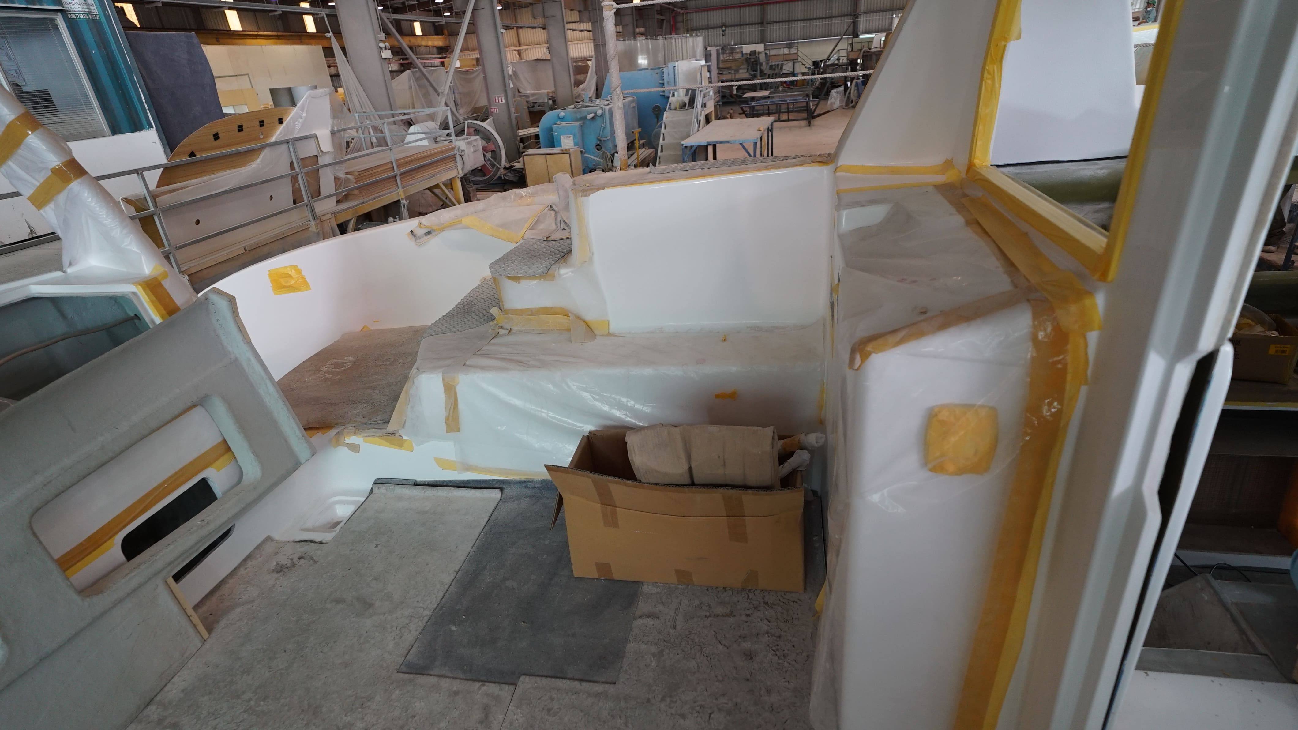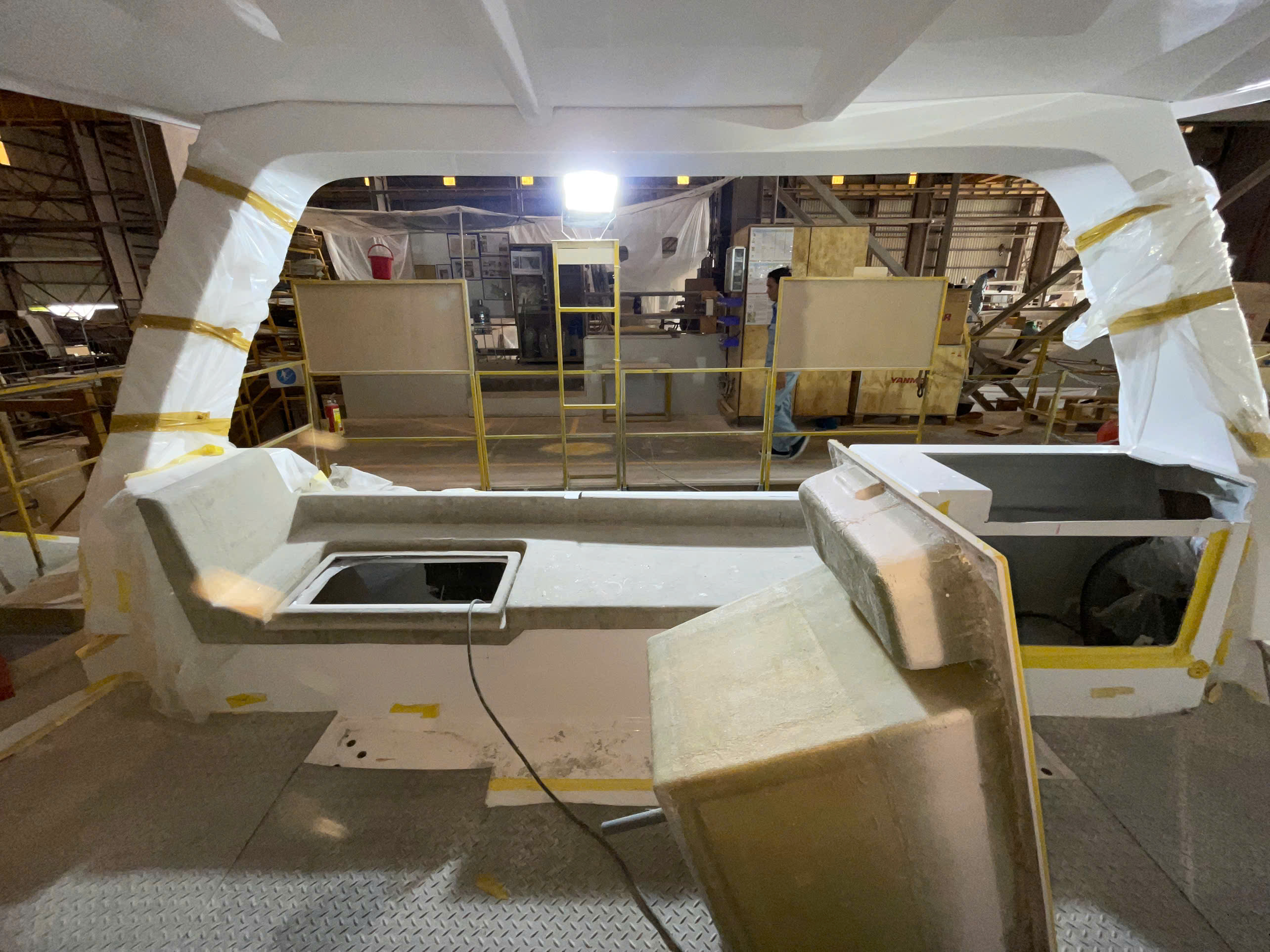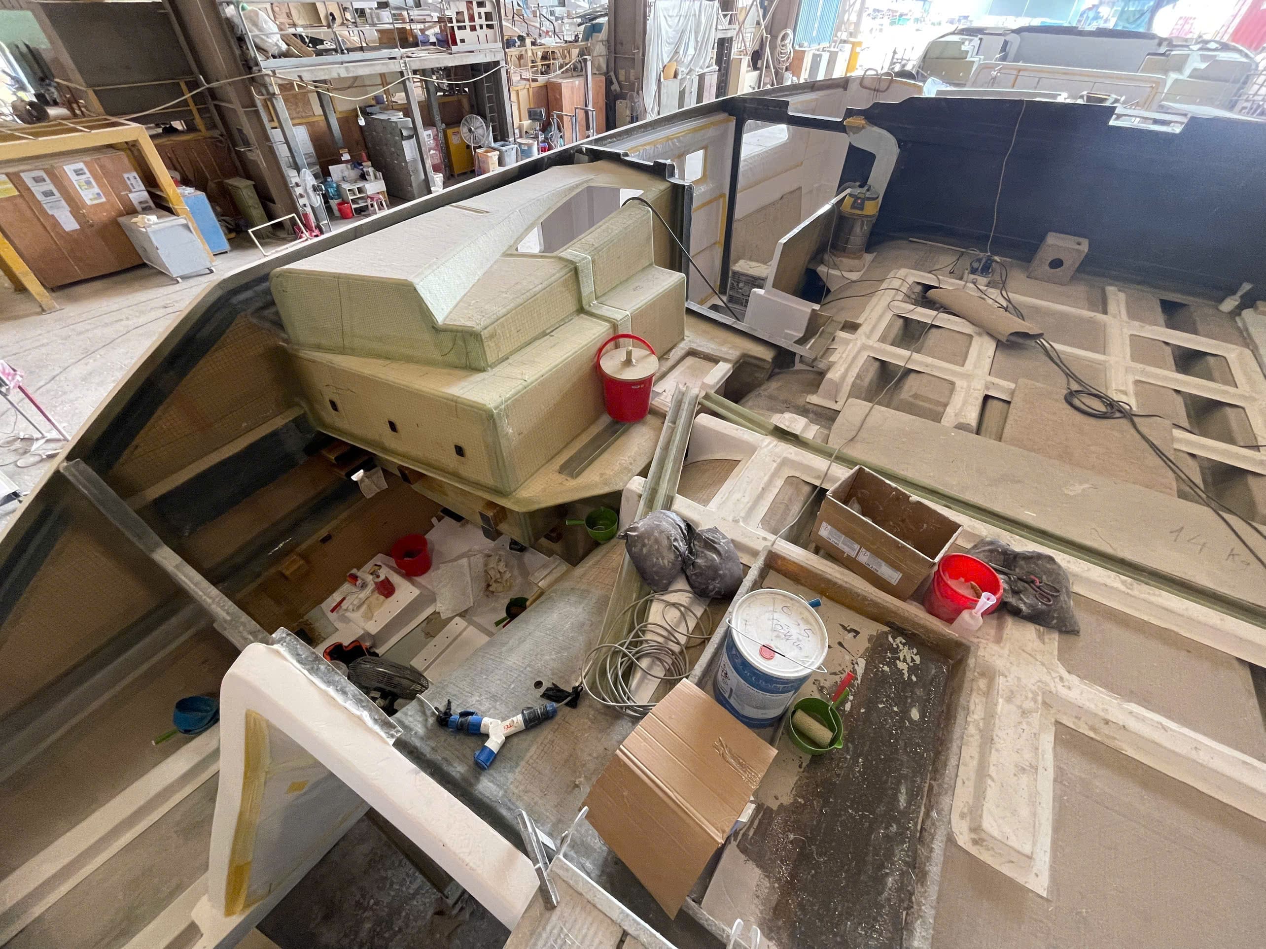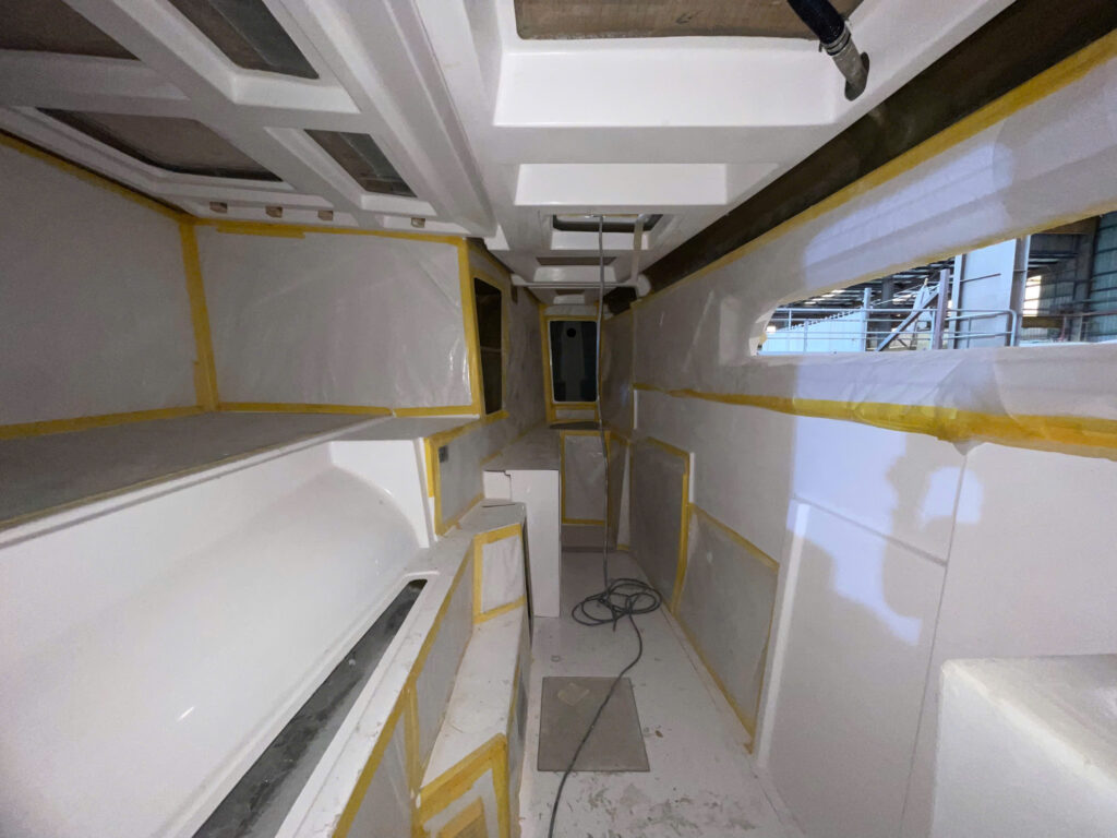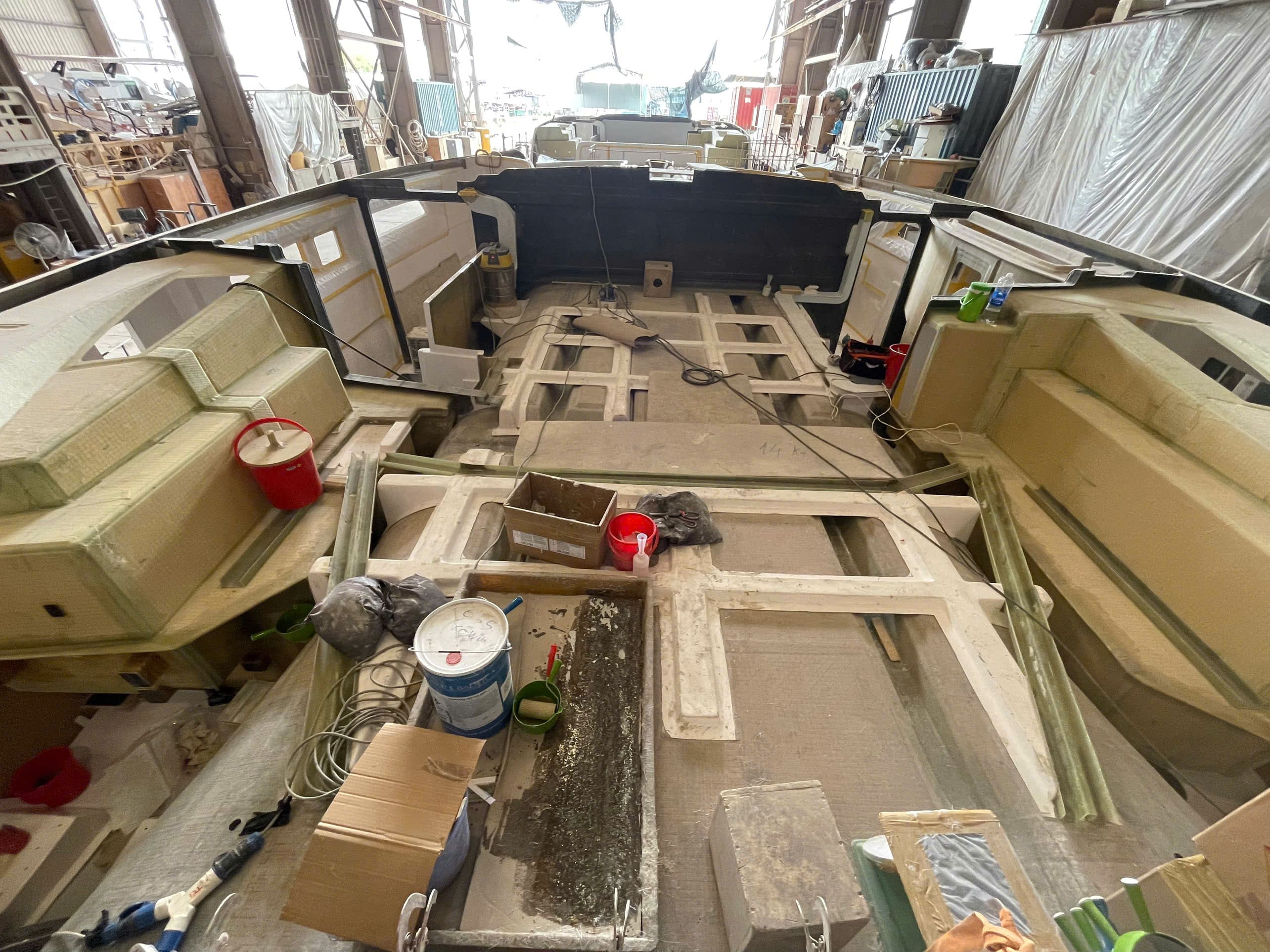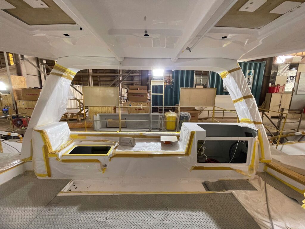Your boat is now in the Fit-out stage where we have started to work on the key parts and the preparations for windows in.