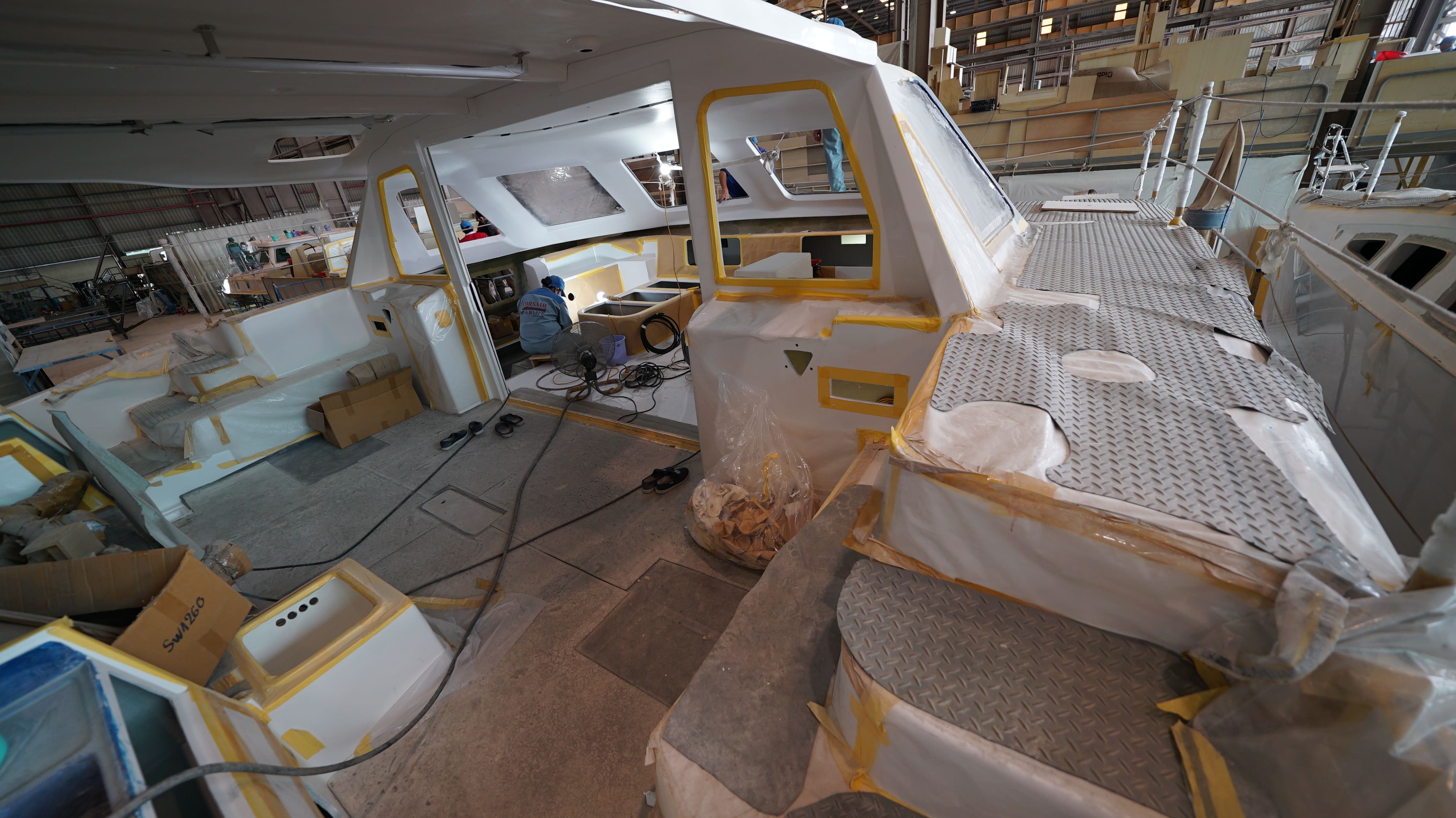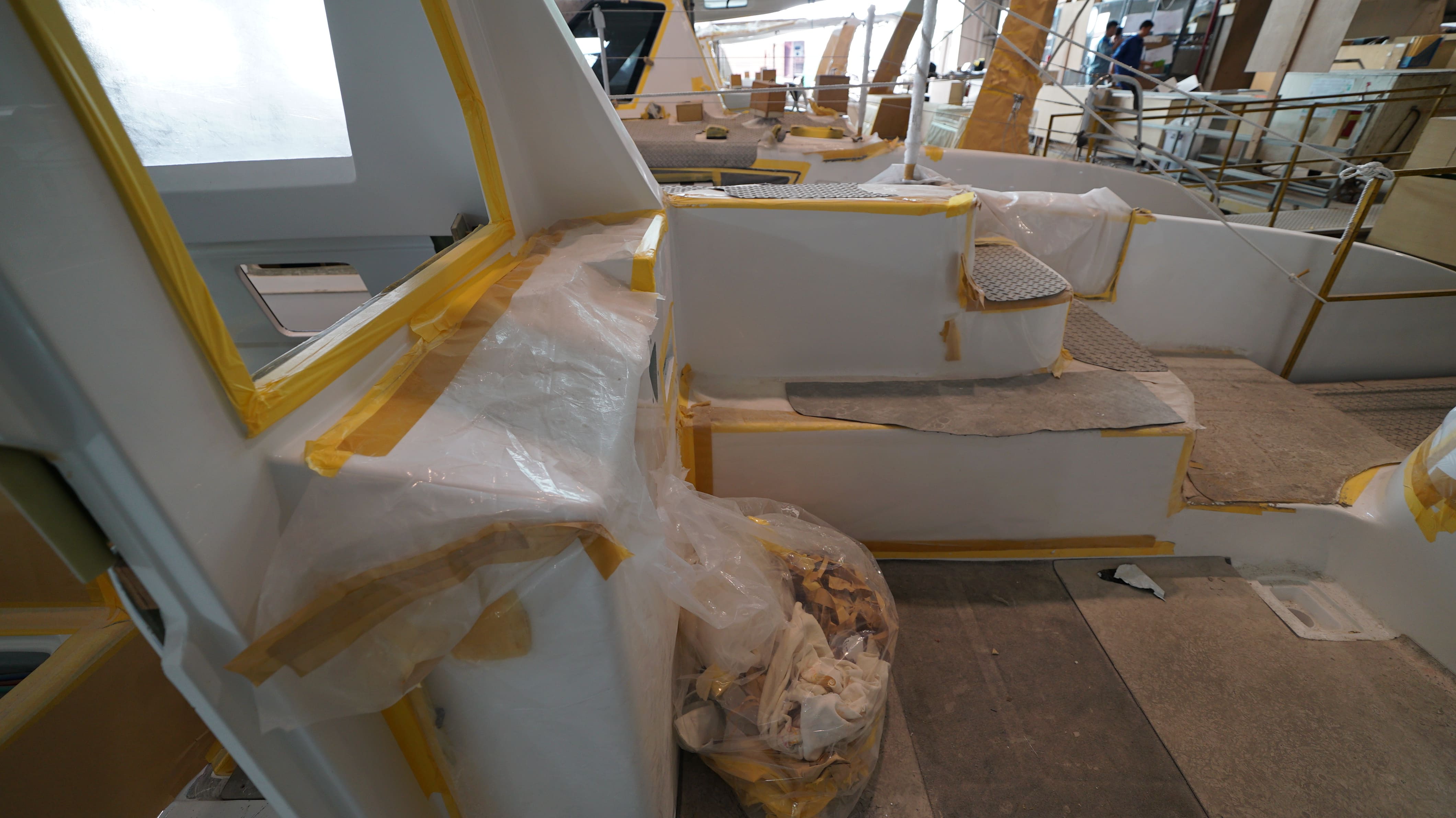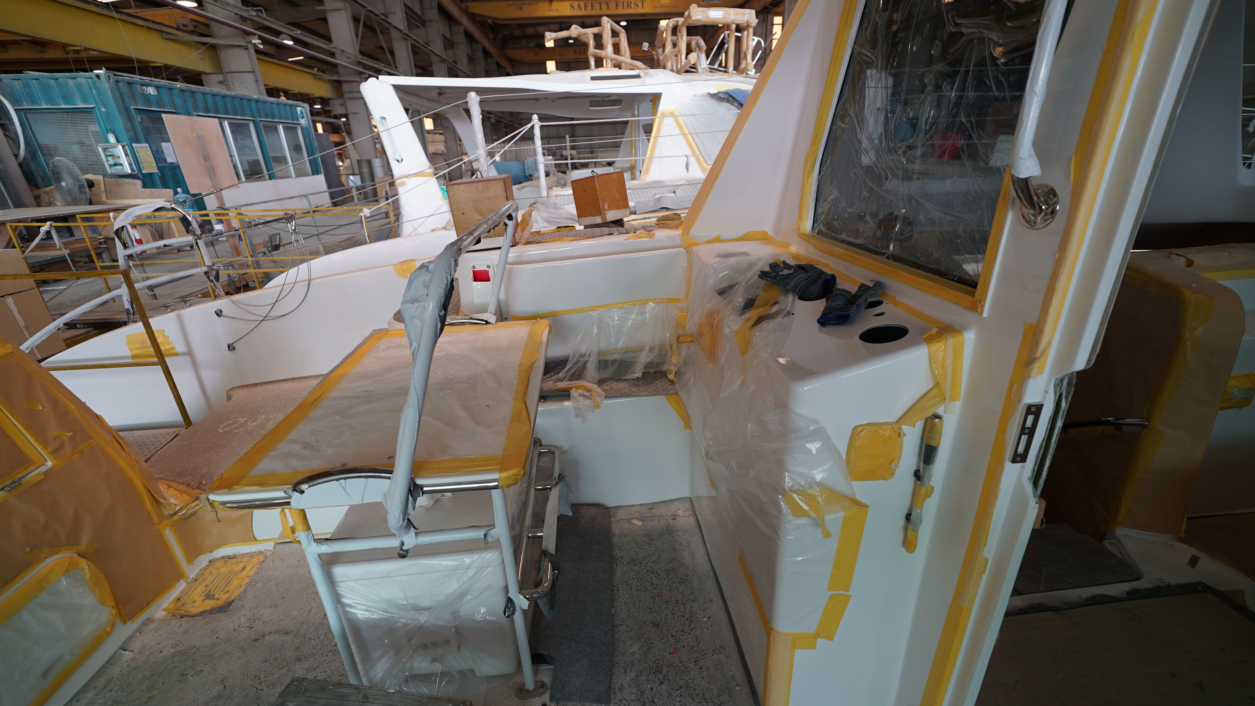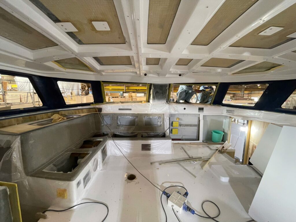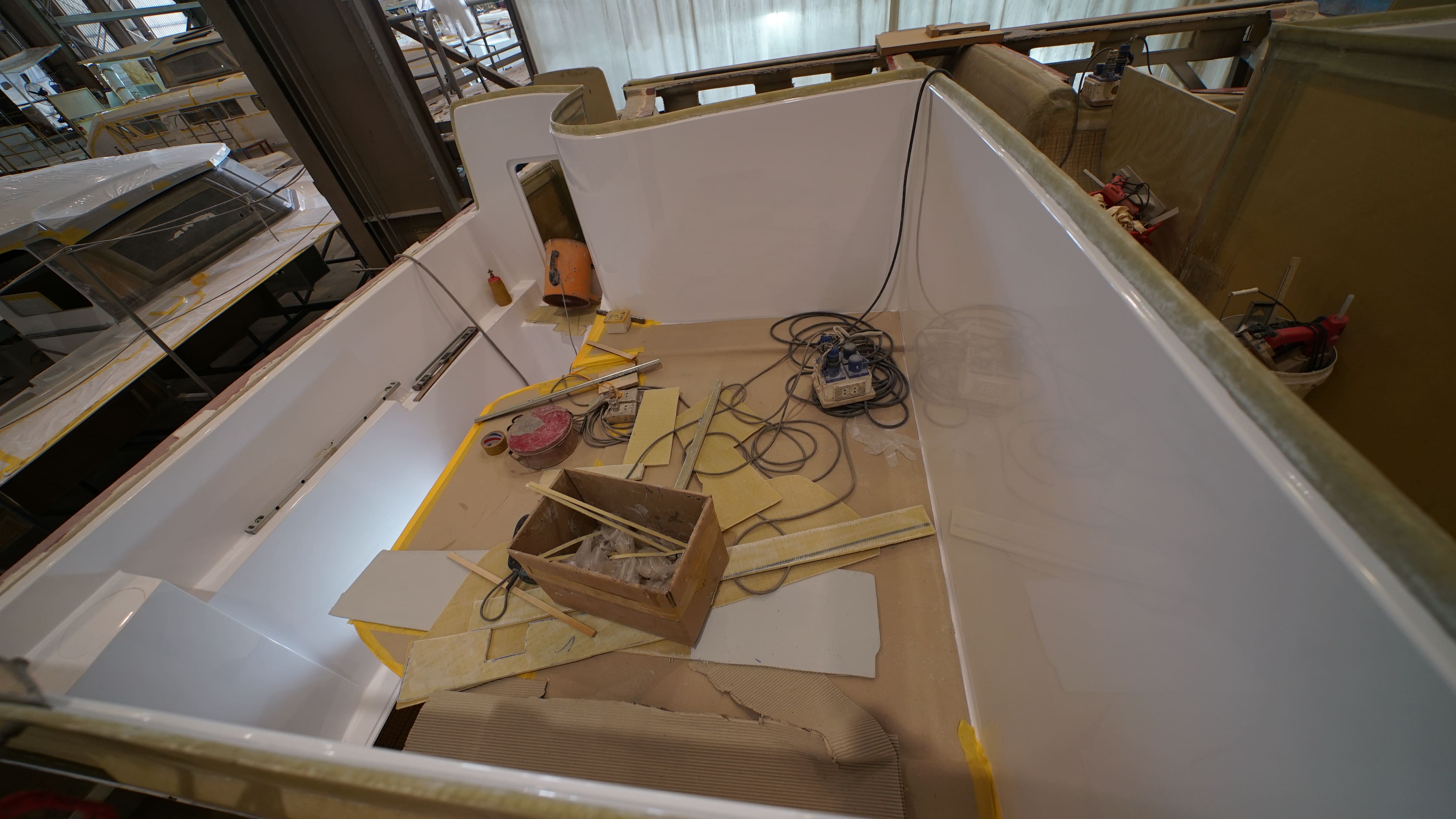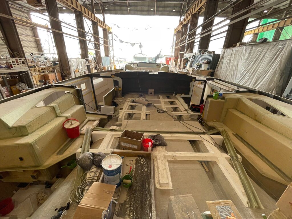 Your boat is now in the Fit-out stage where we have started to work on the key parts and the preparations for windows in.