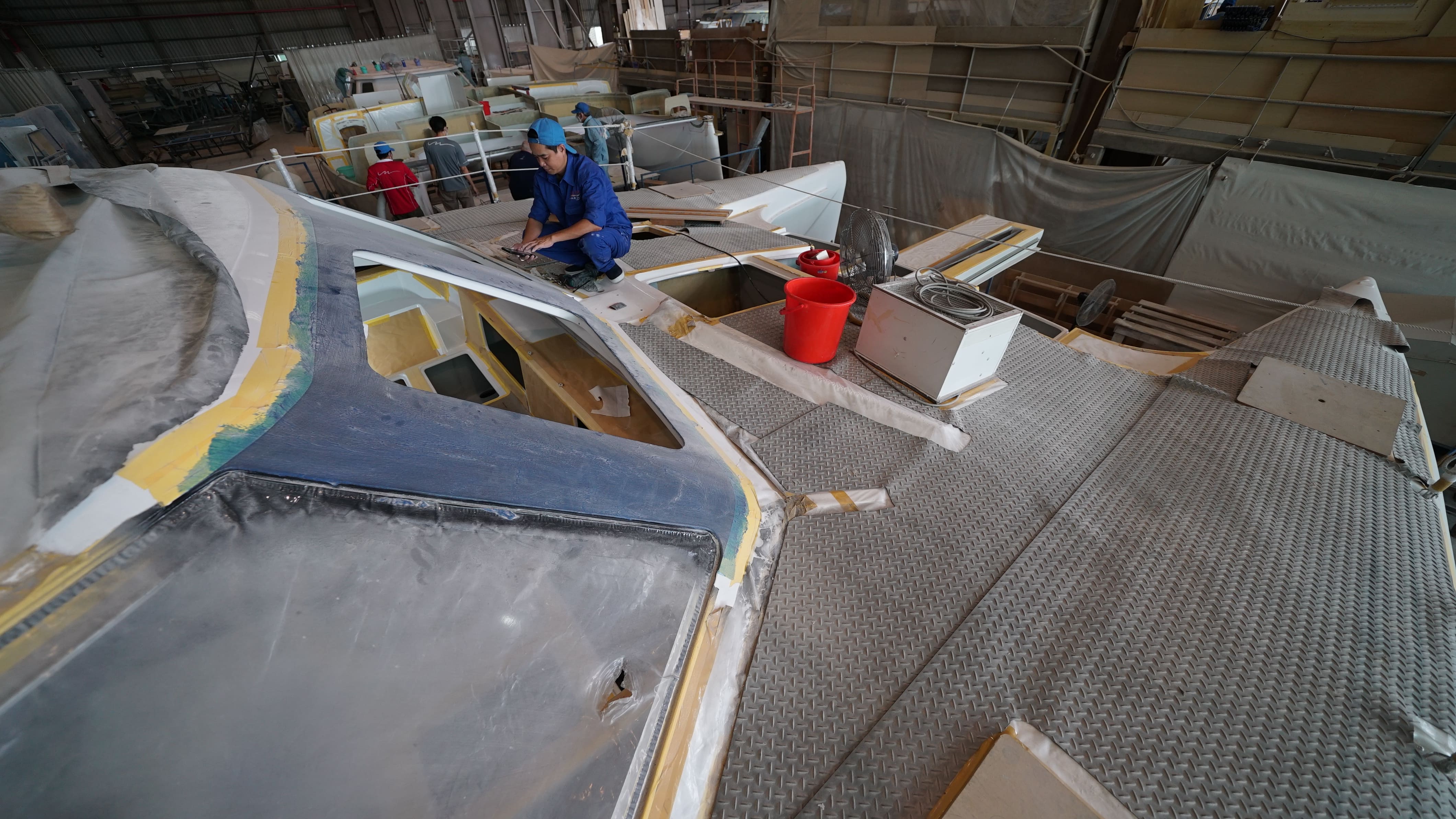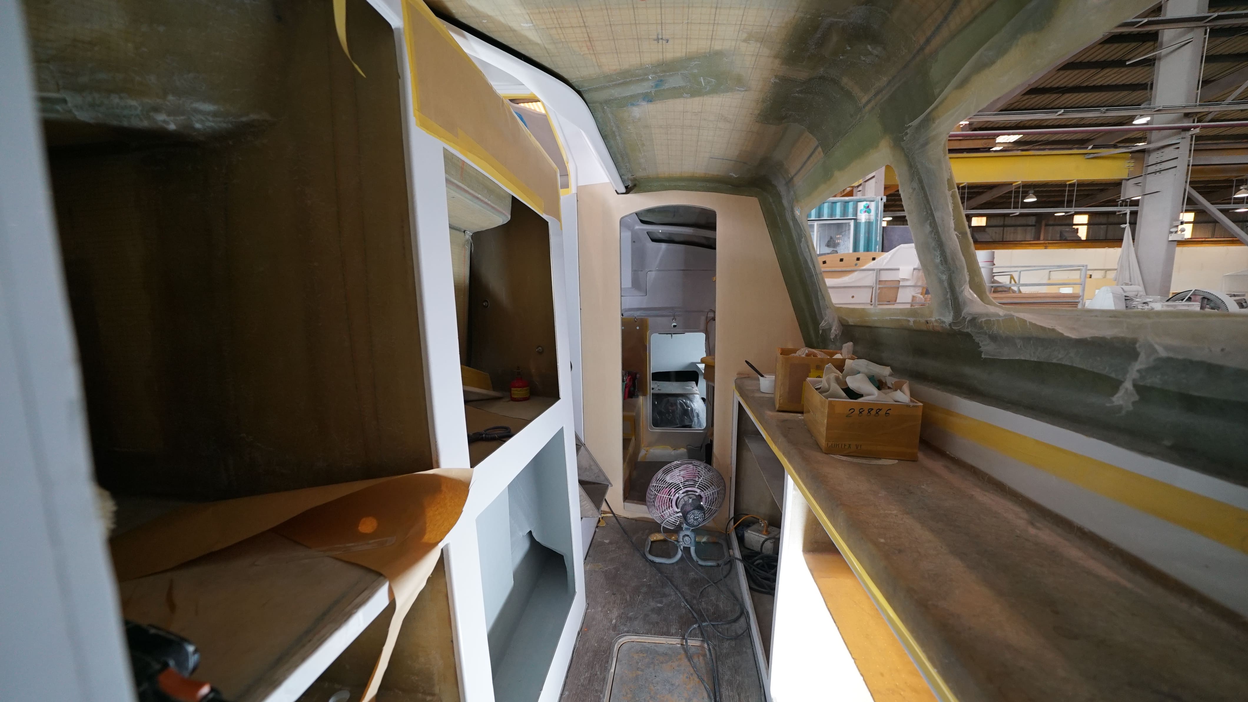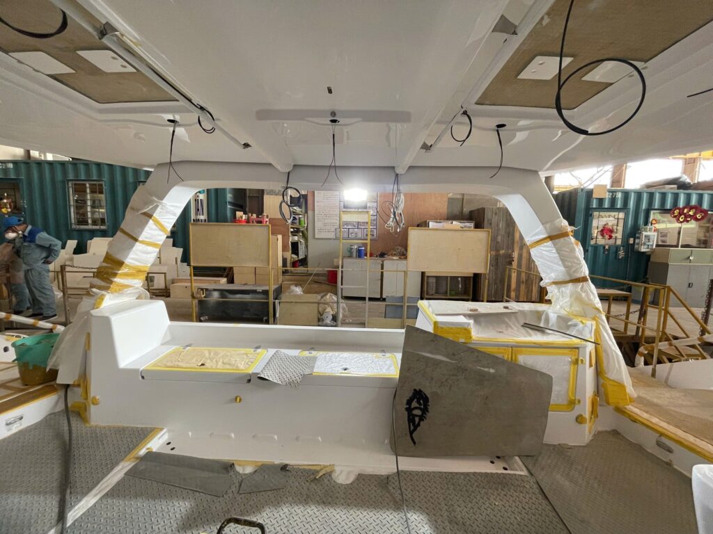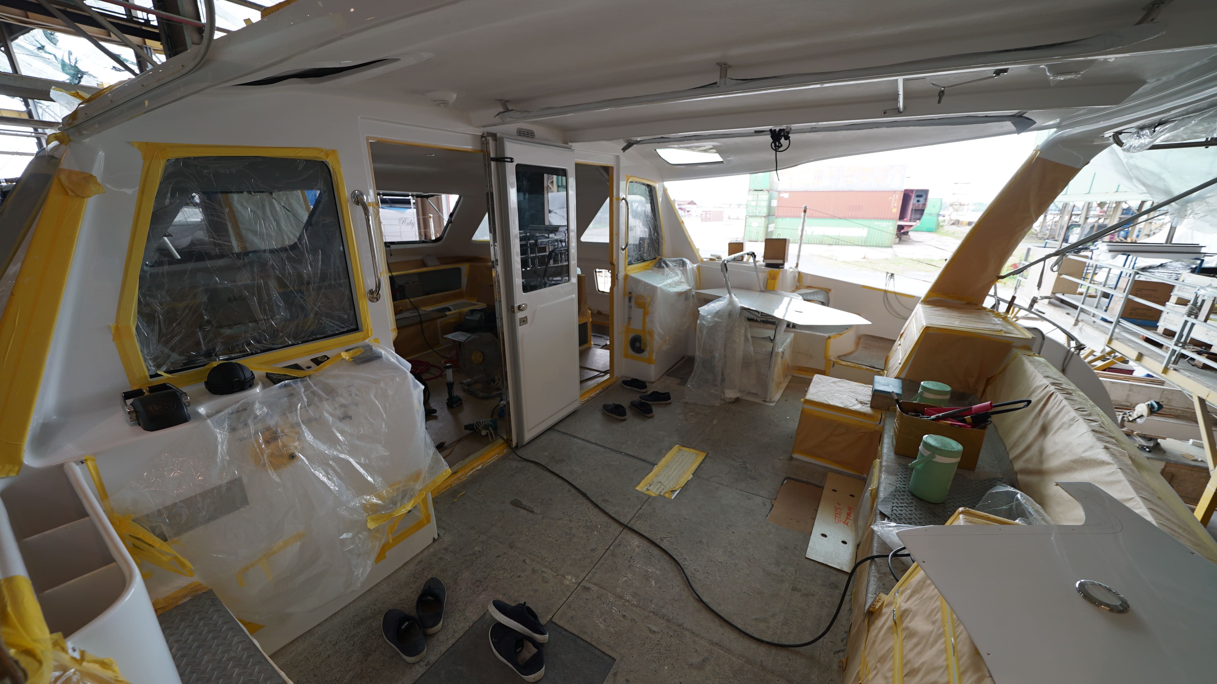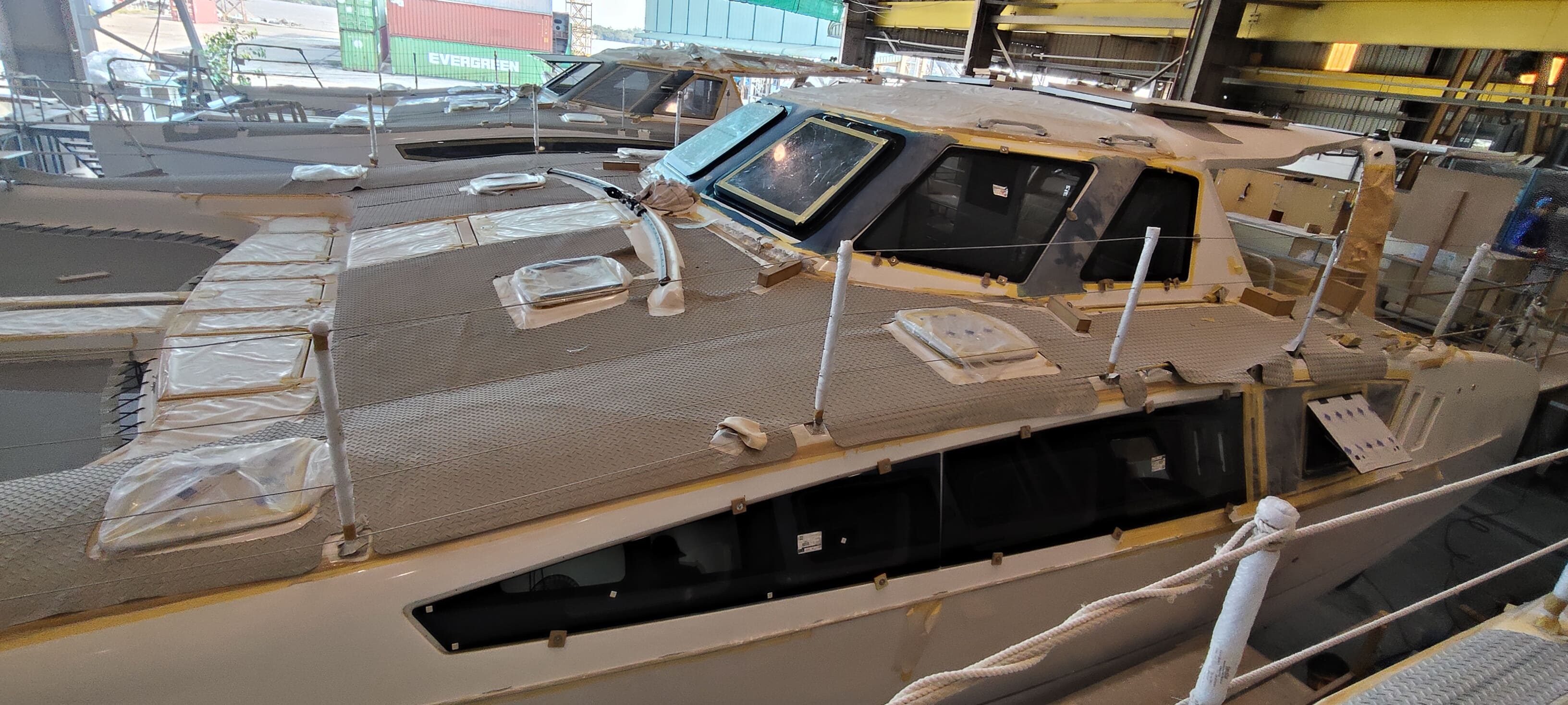 Your boat is now in the Fit-out stage where we have started to work on the key parts and the preparations for windows in.
