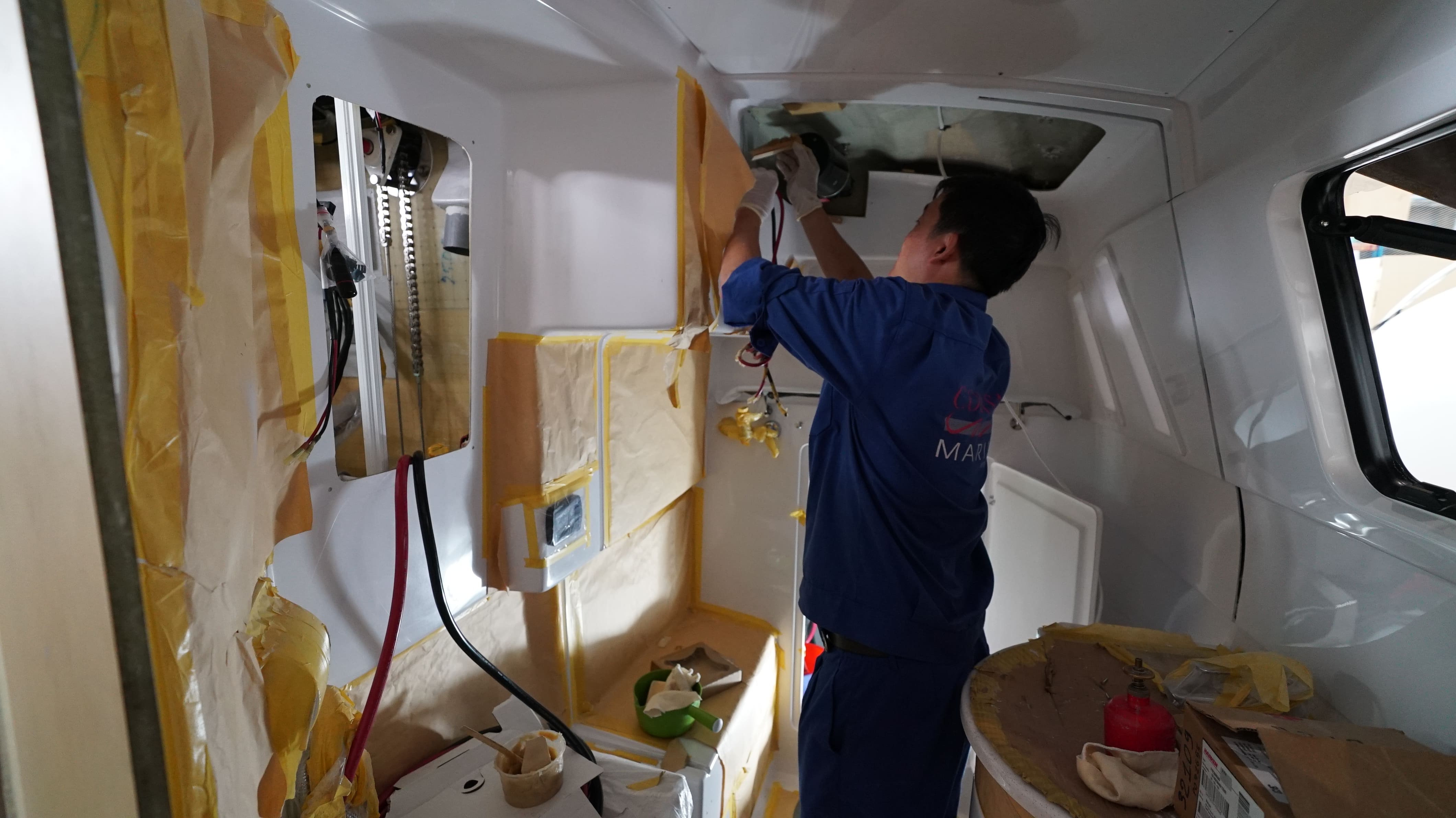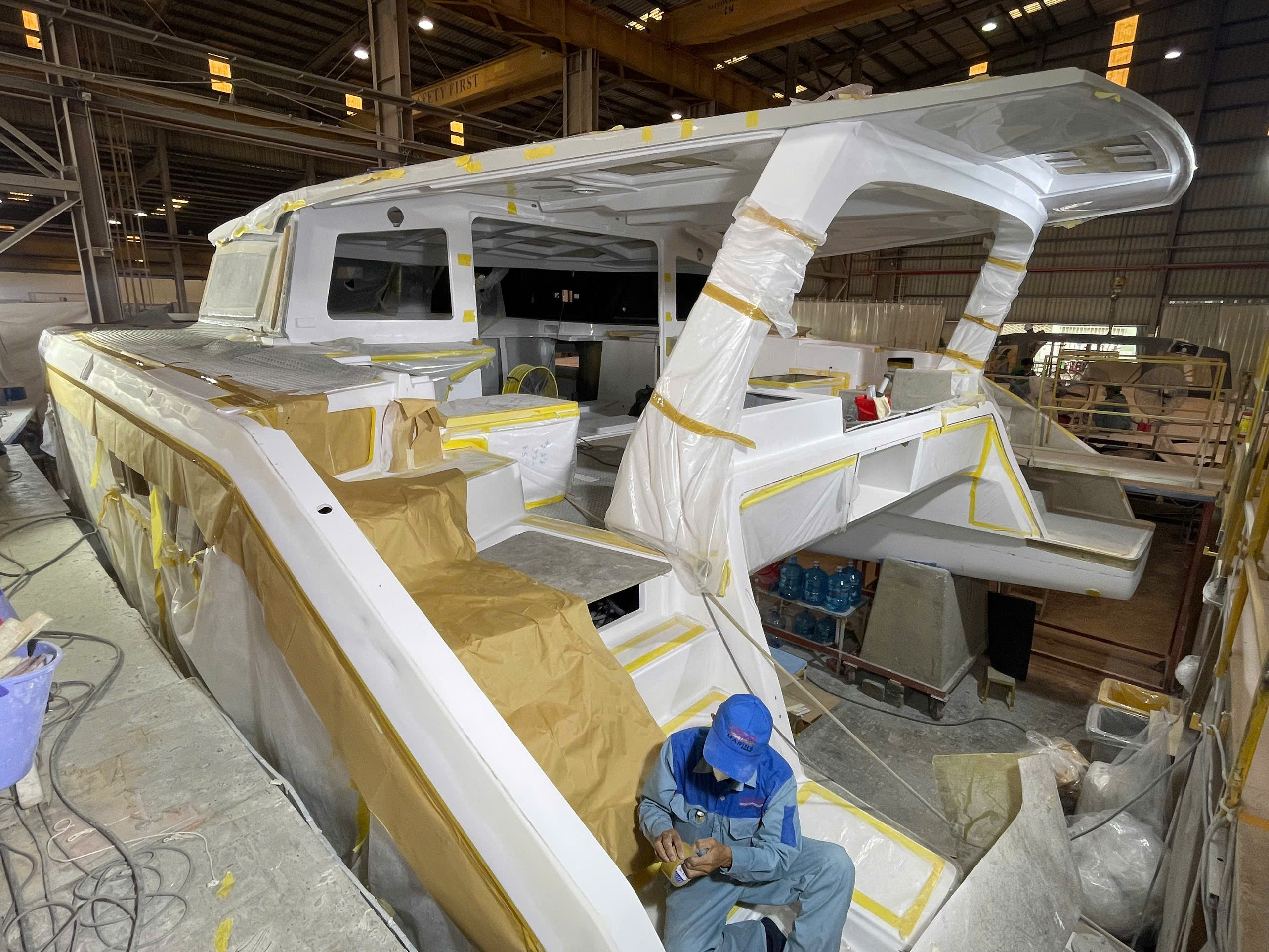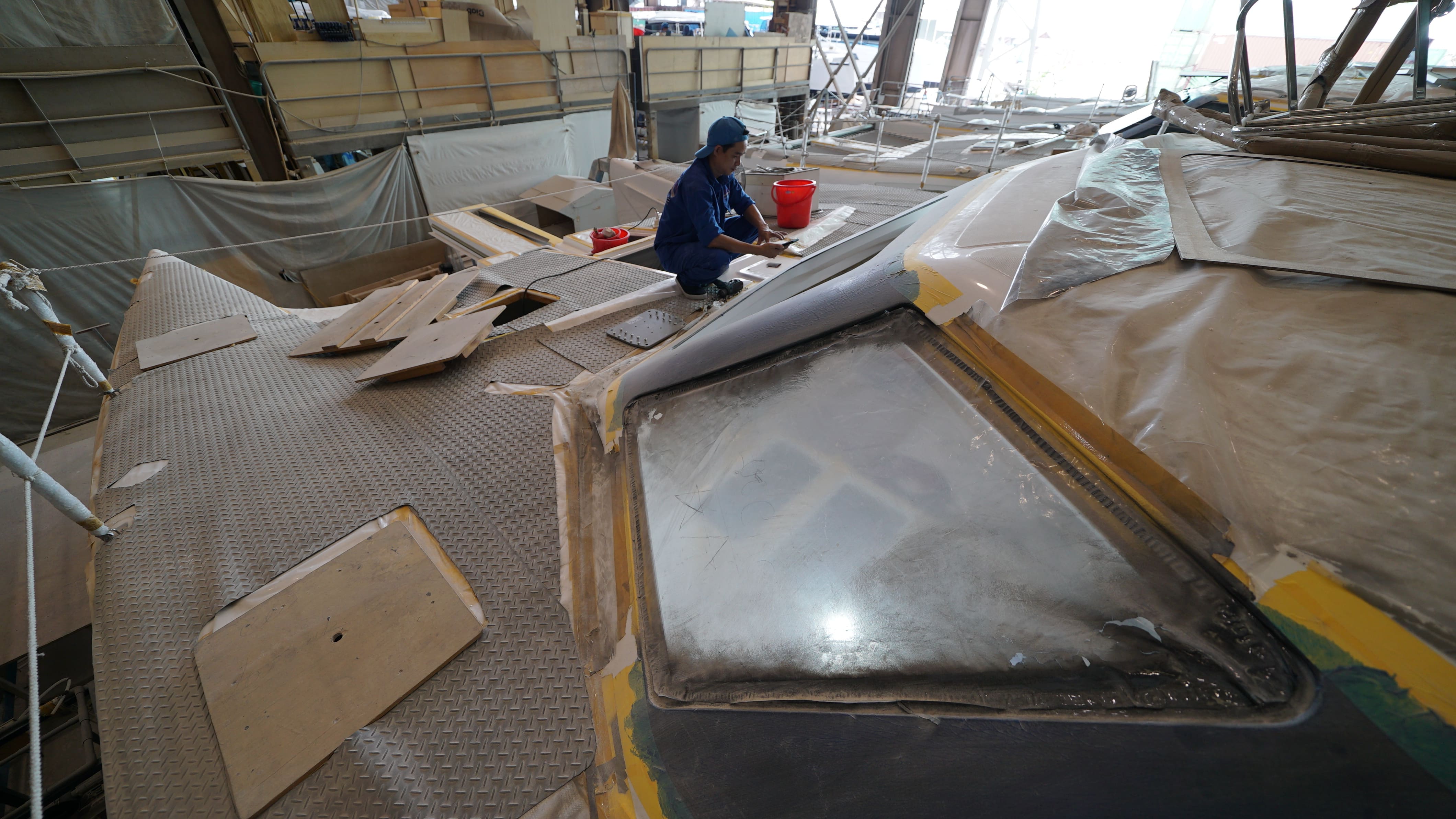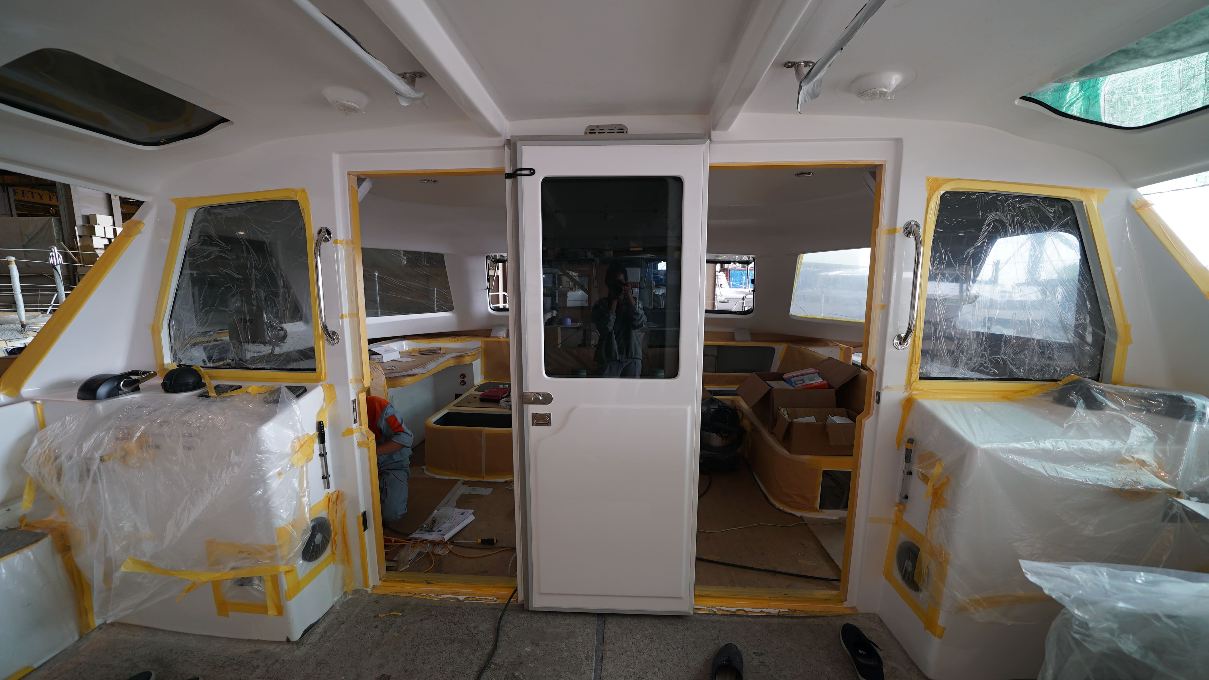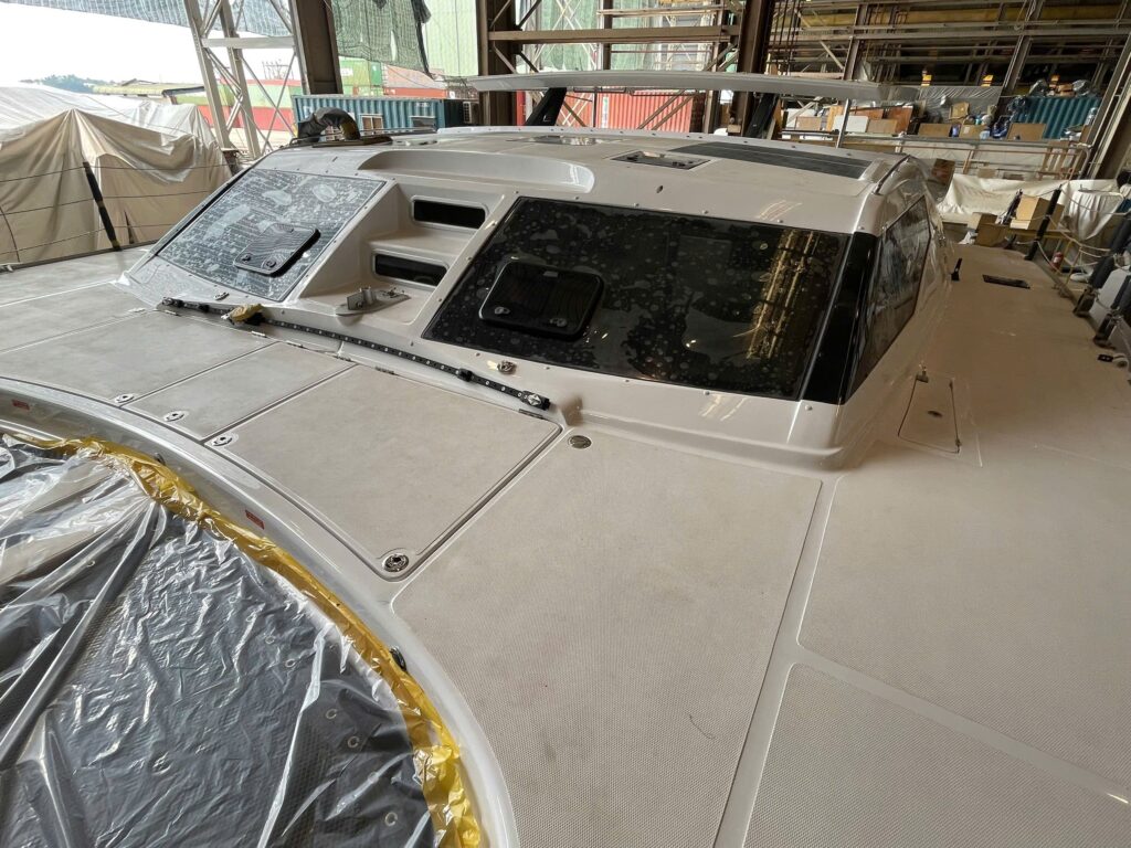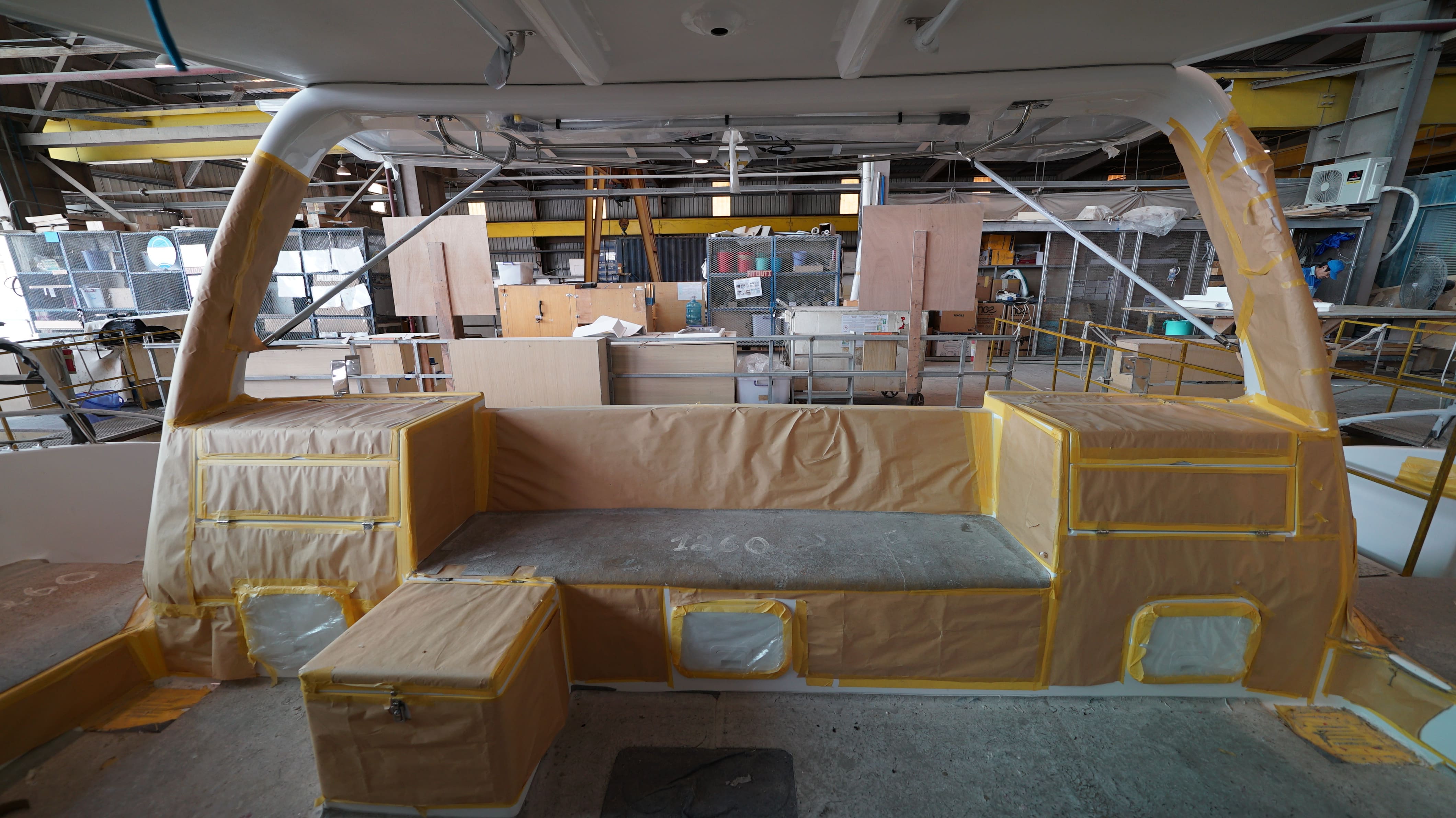 Your boat is now in the Fit-out stage where we have started to work on the key parts and the preparations for windows in.