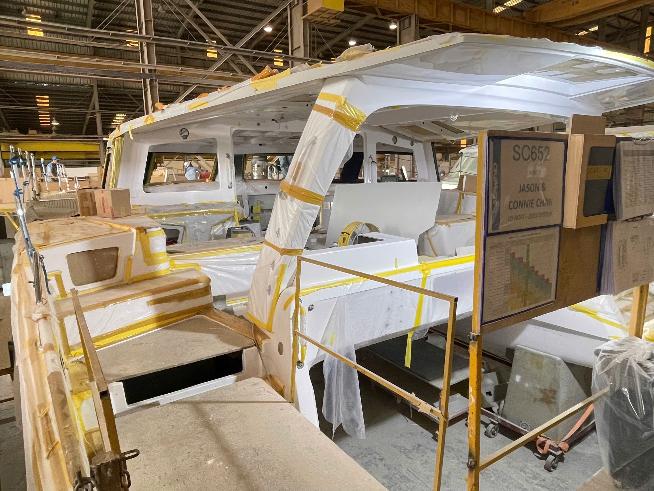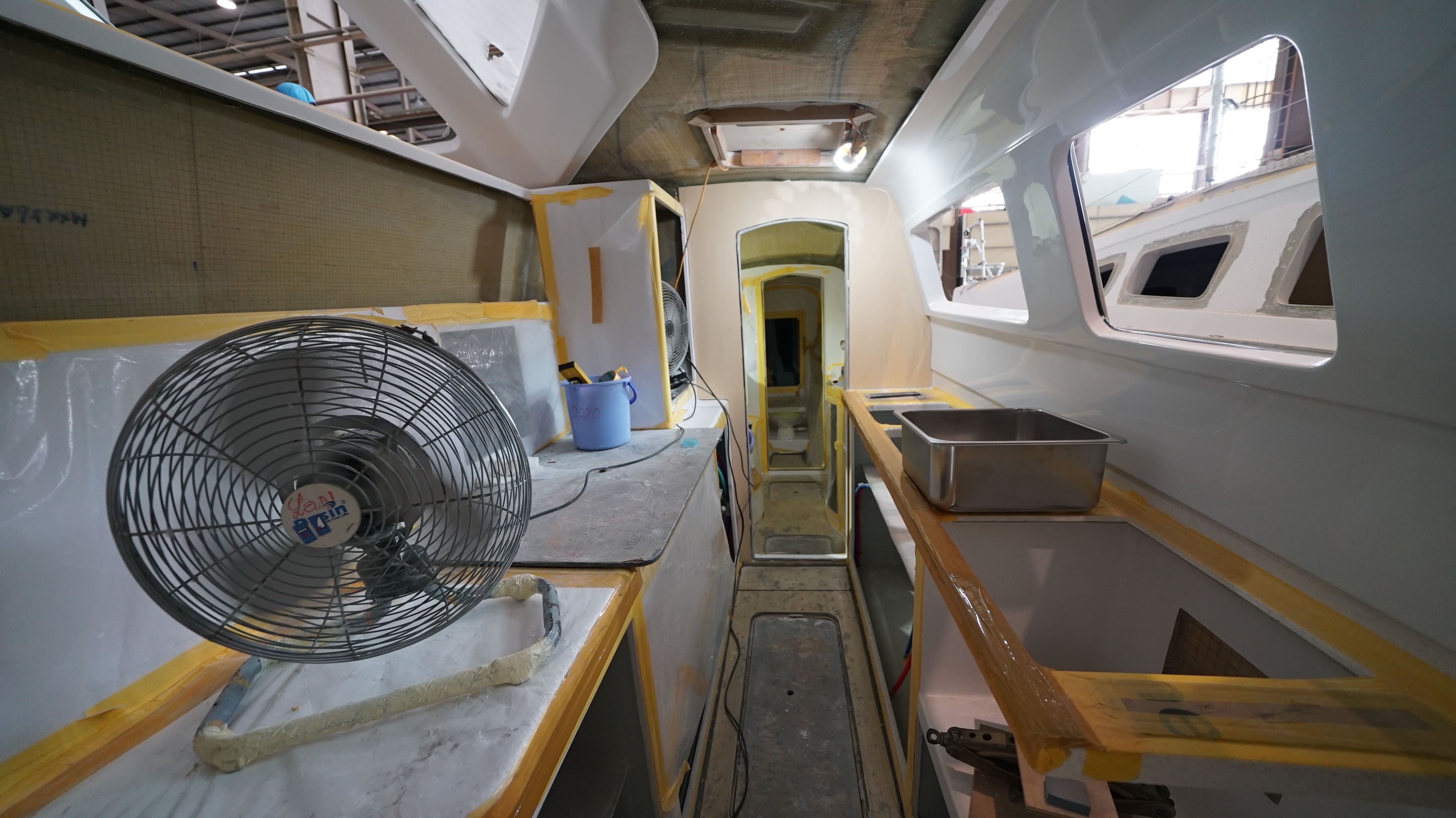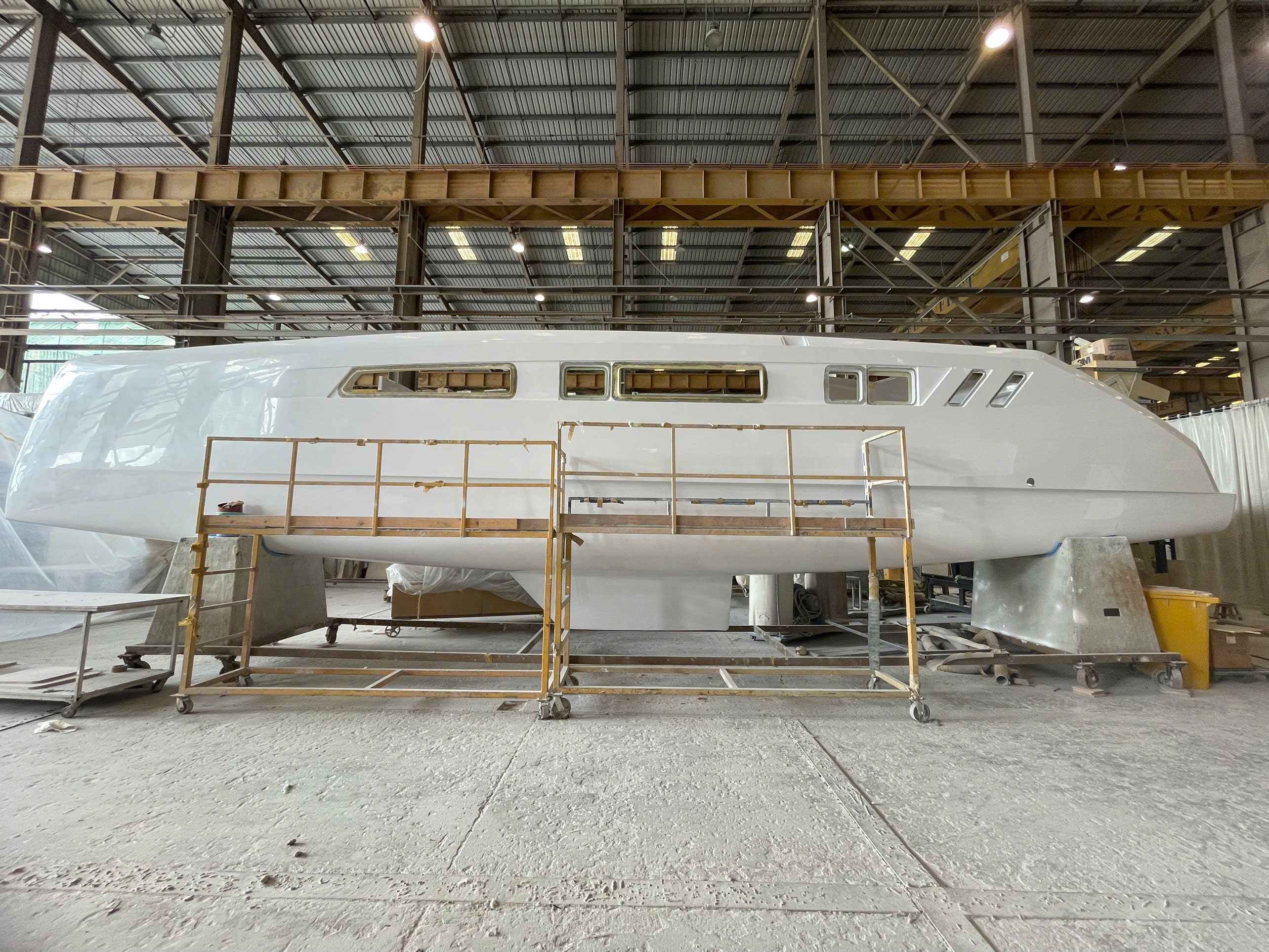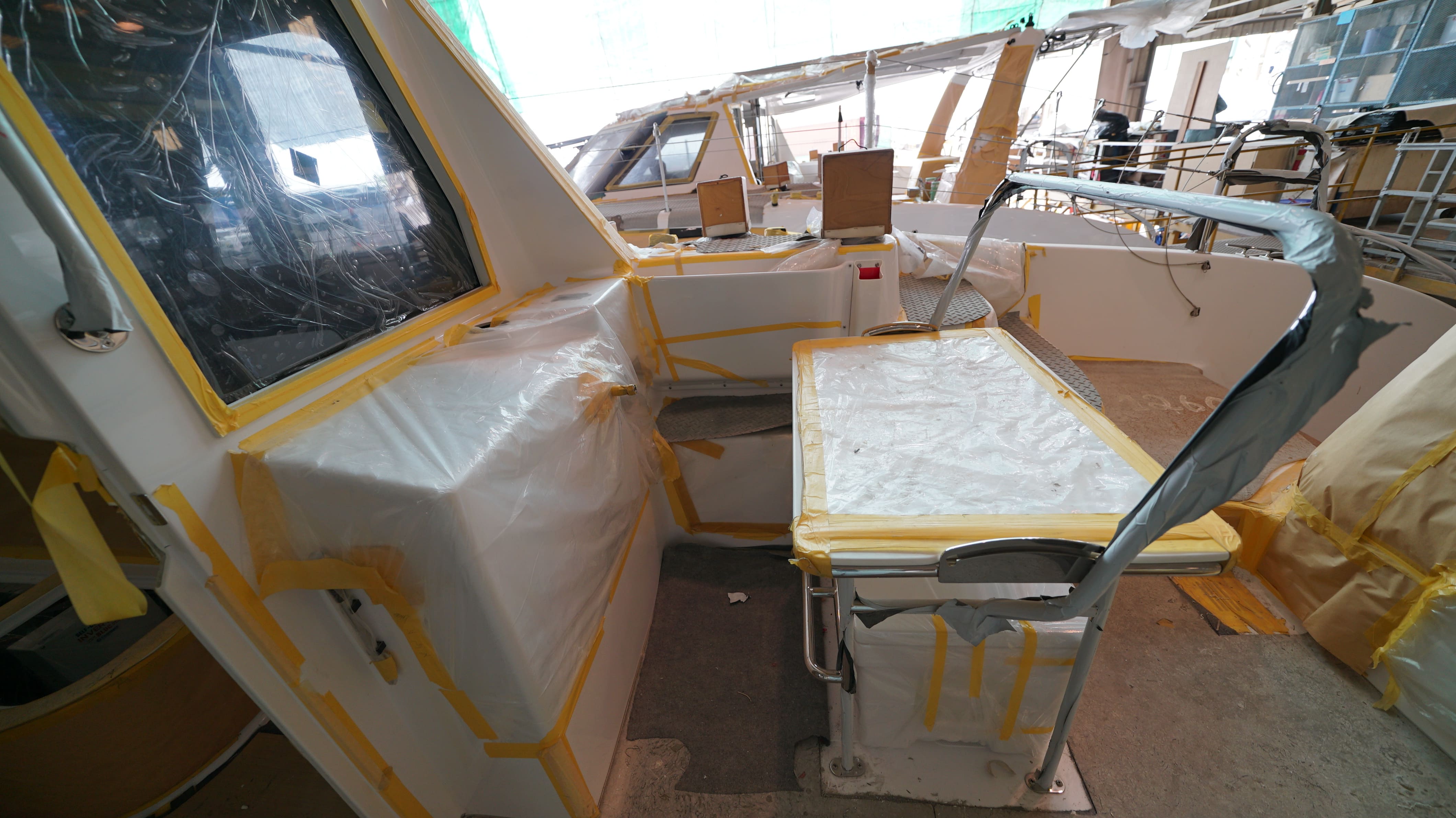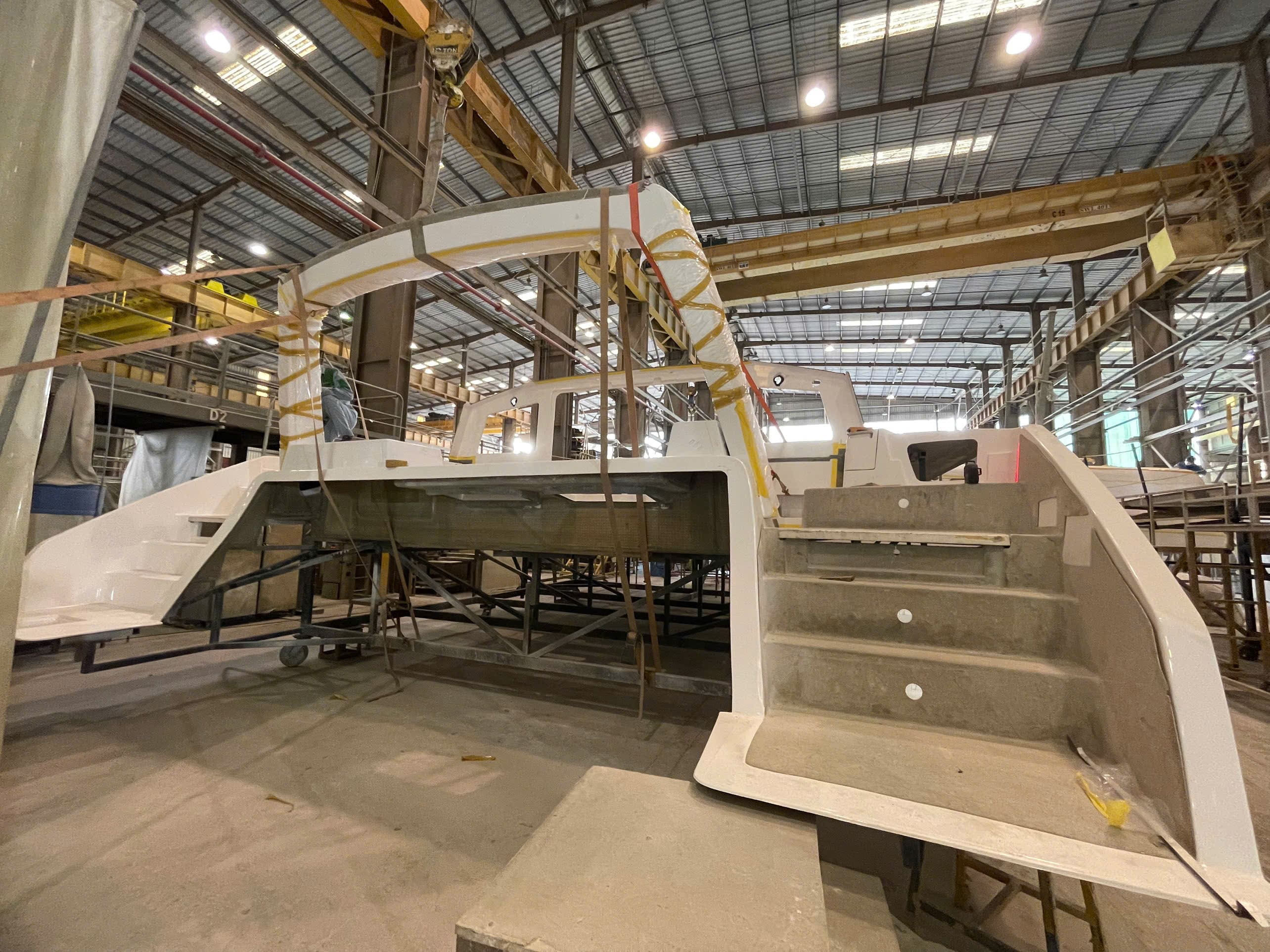 Your boat is now in the Fit-out stage where we have started to work on the key parts and the preparations for windows in.