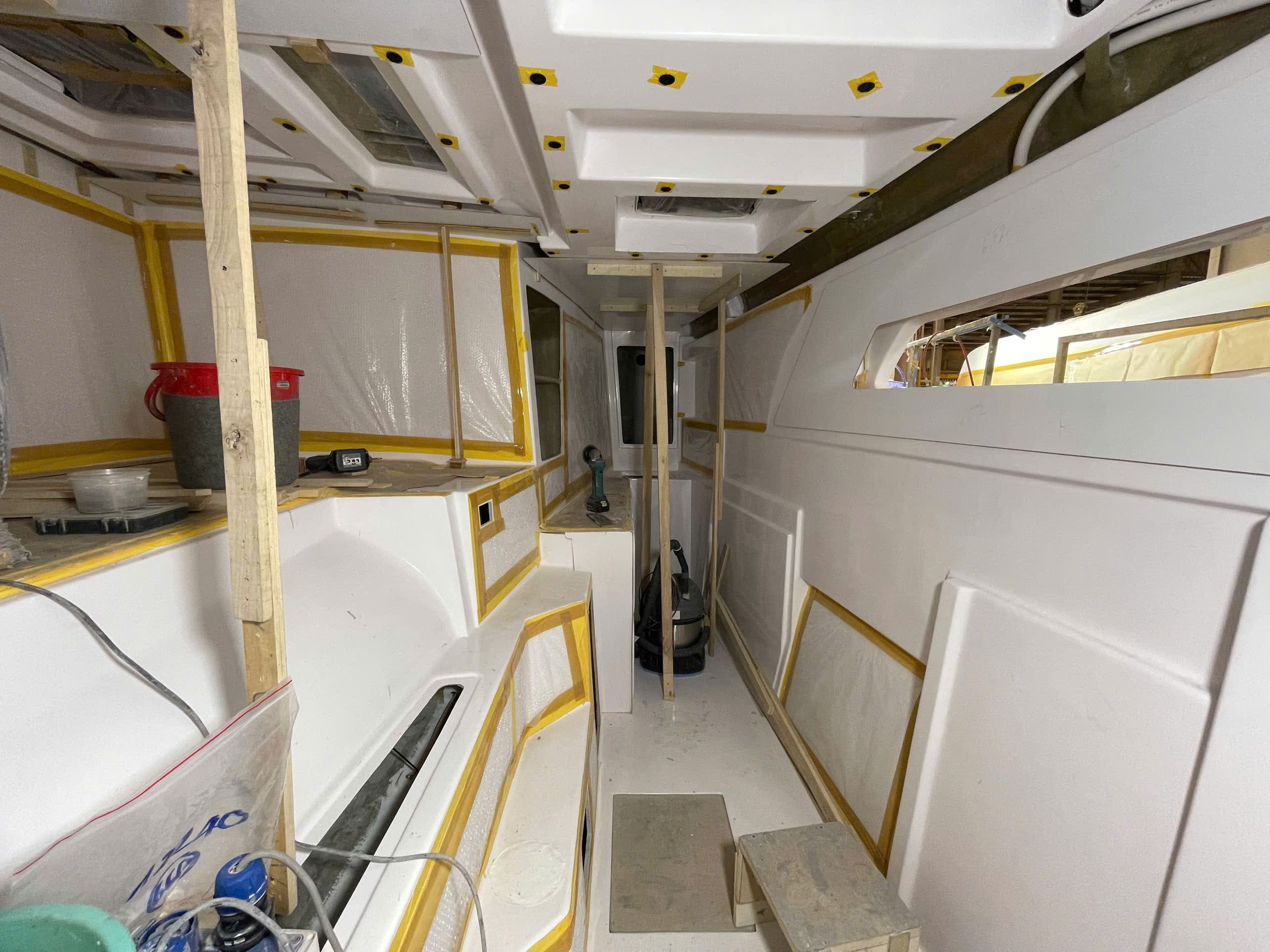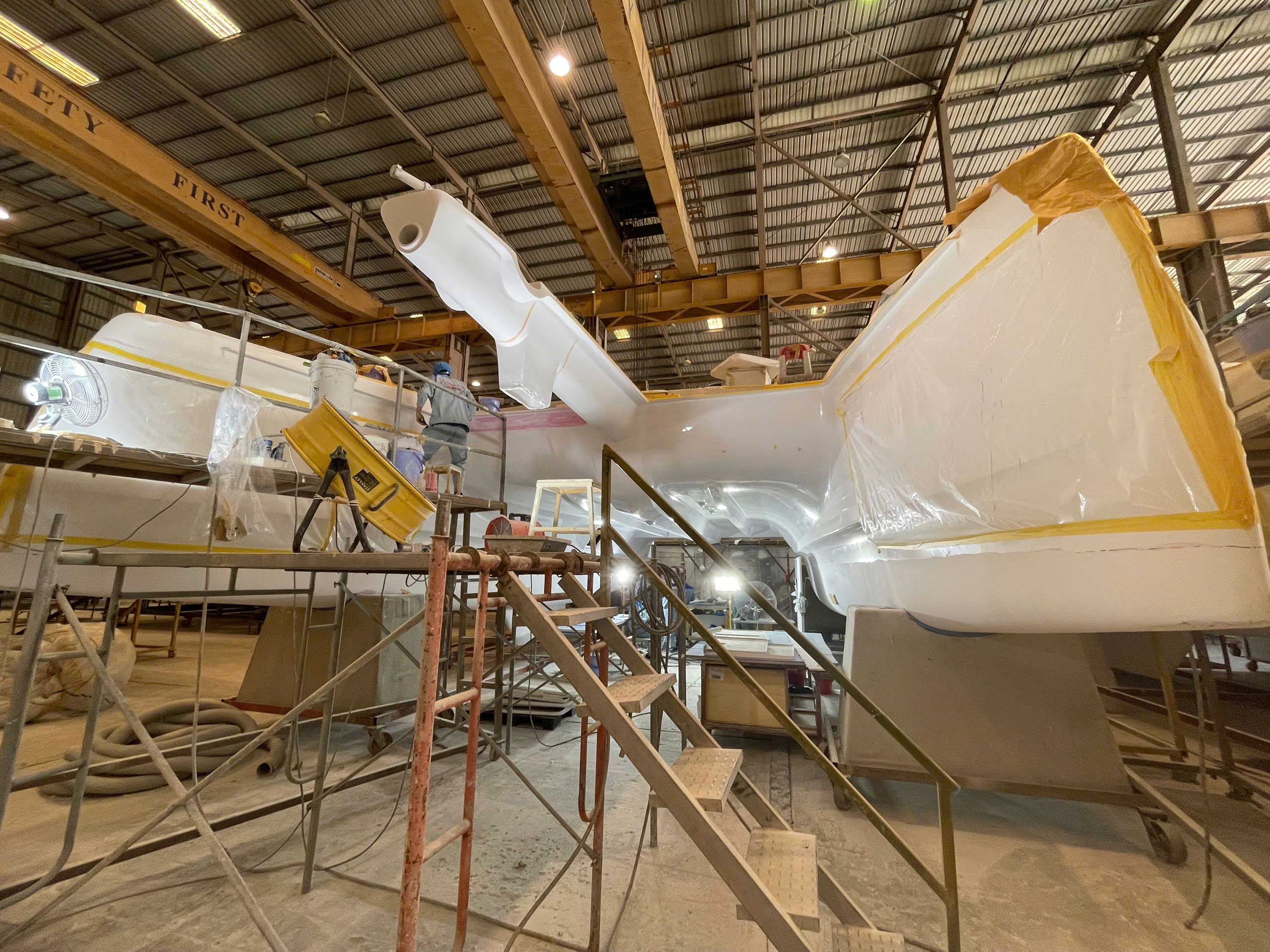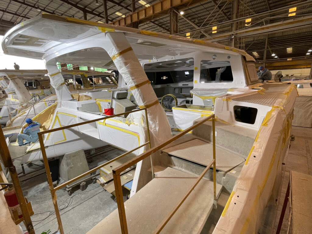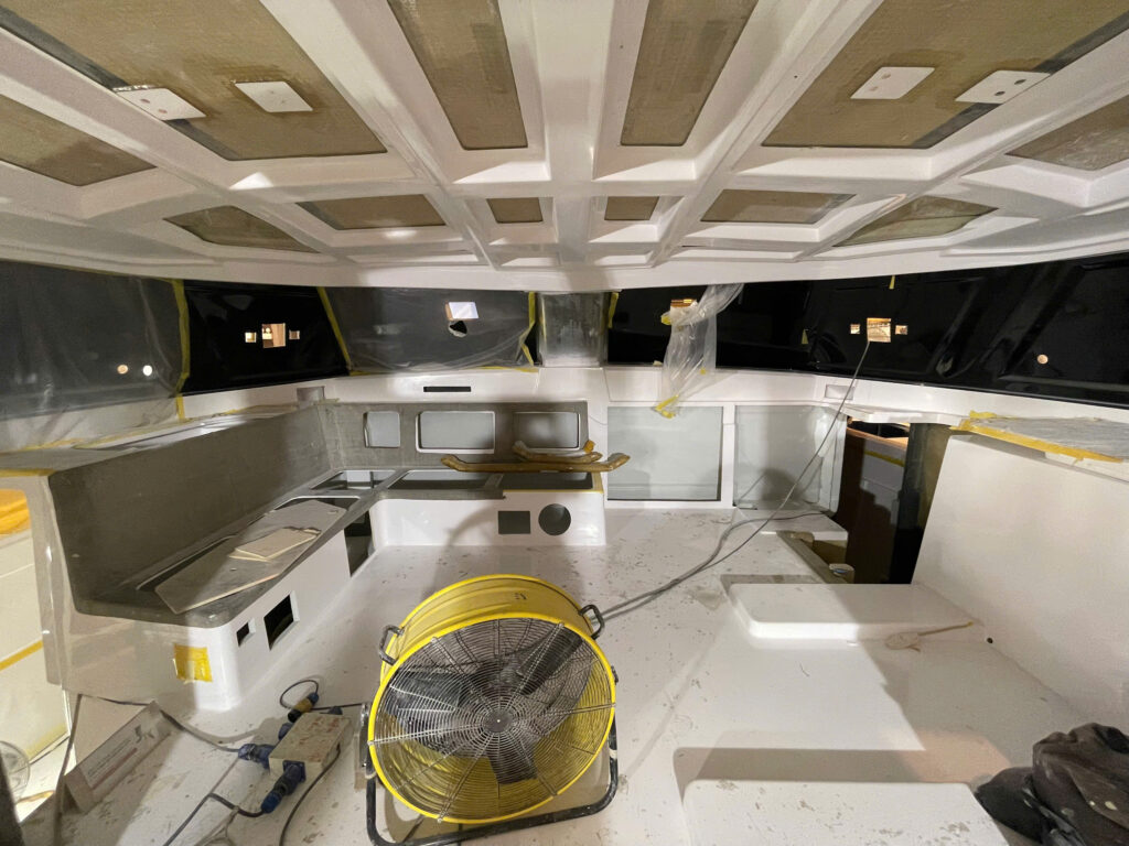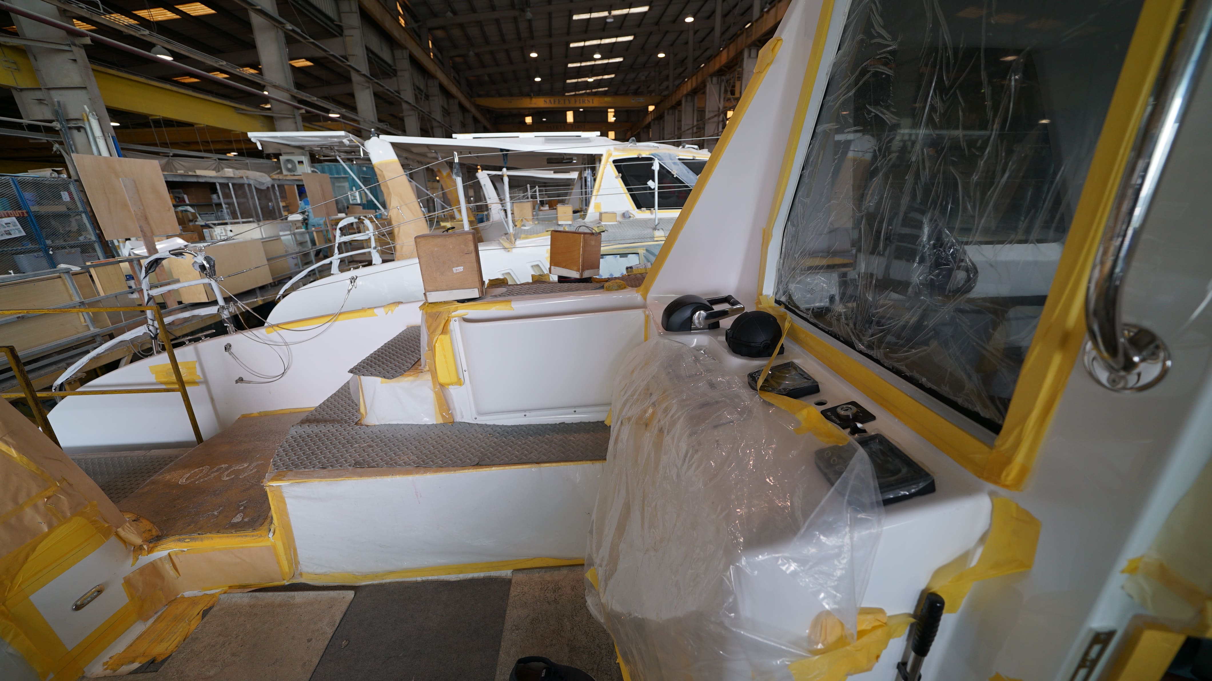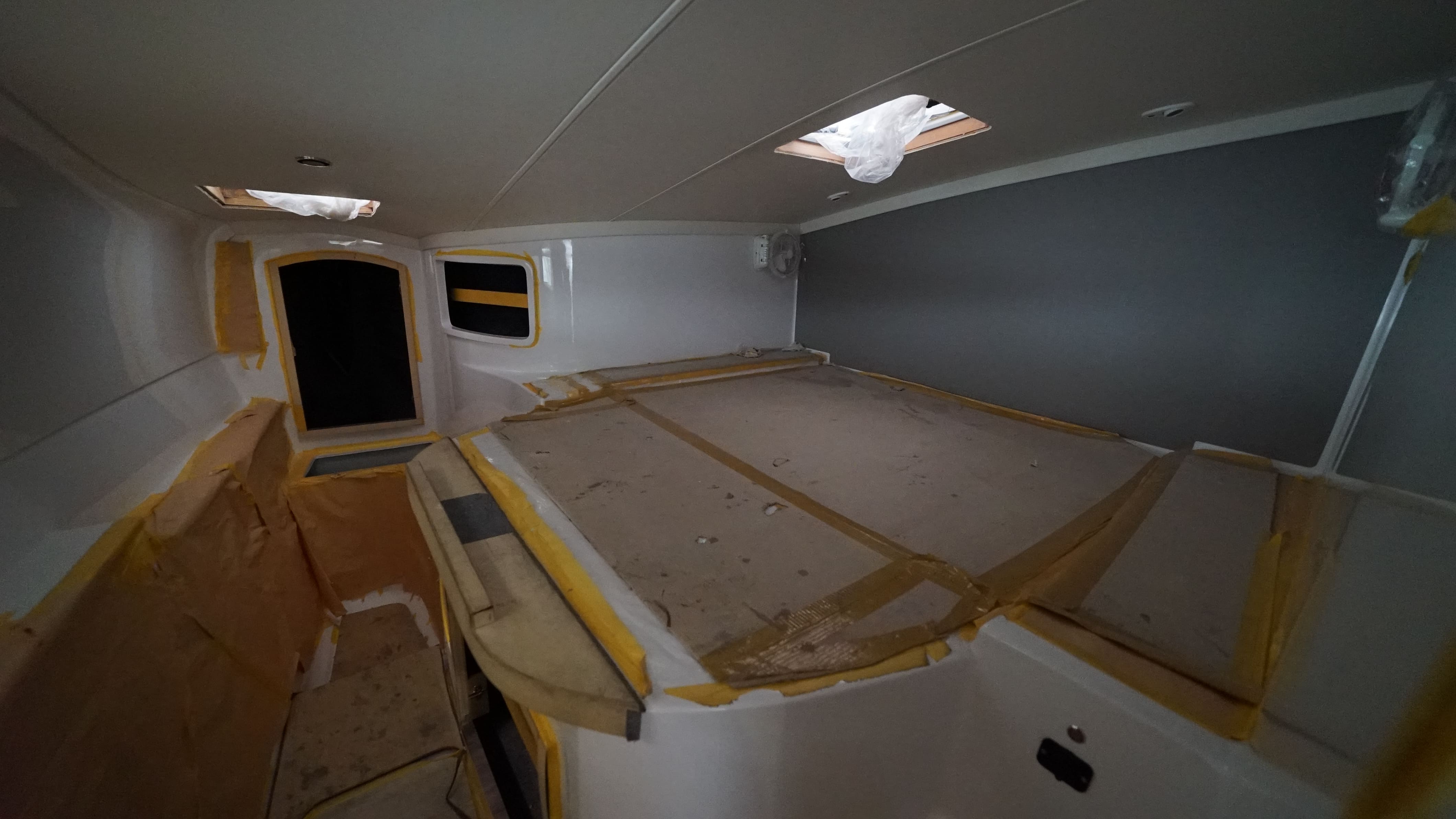 Your boat is now in the Fit-out stage where we have started to work on the key parts and the preparations for windows in.