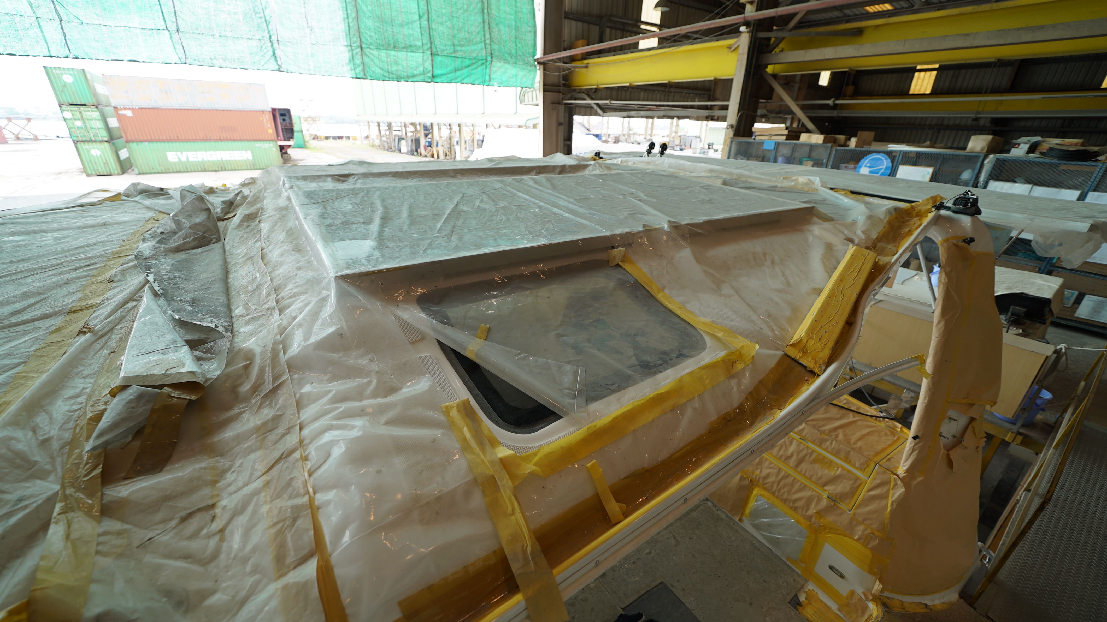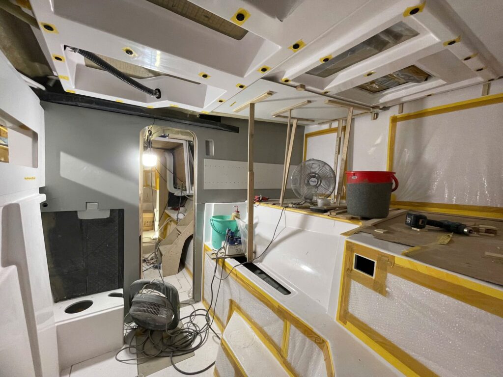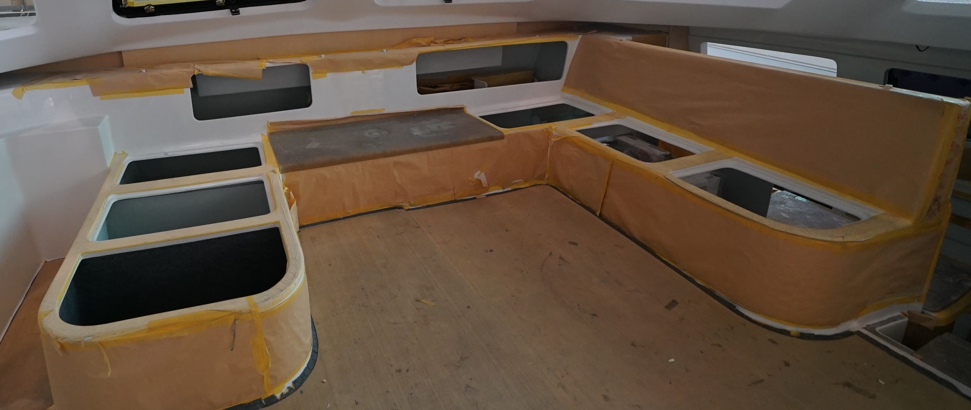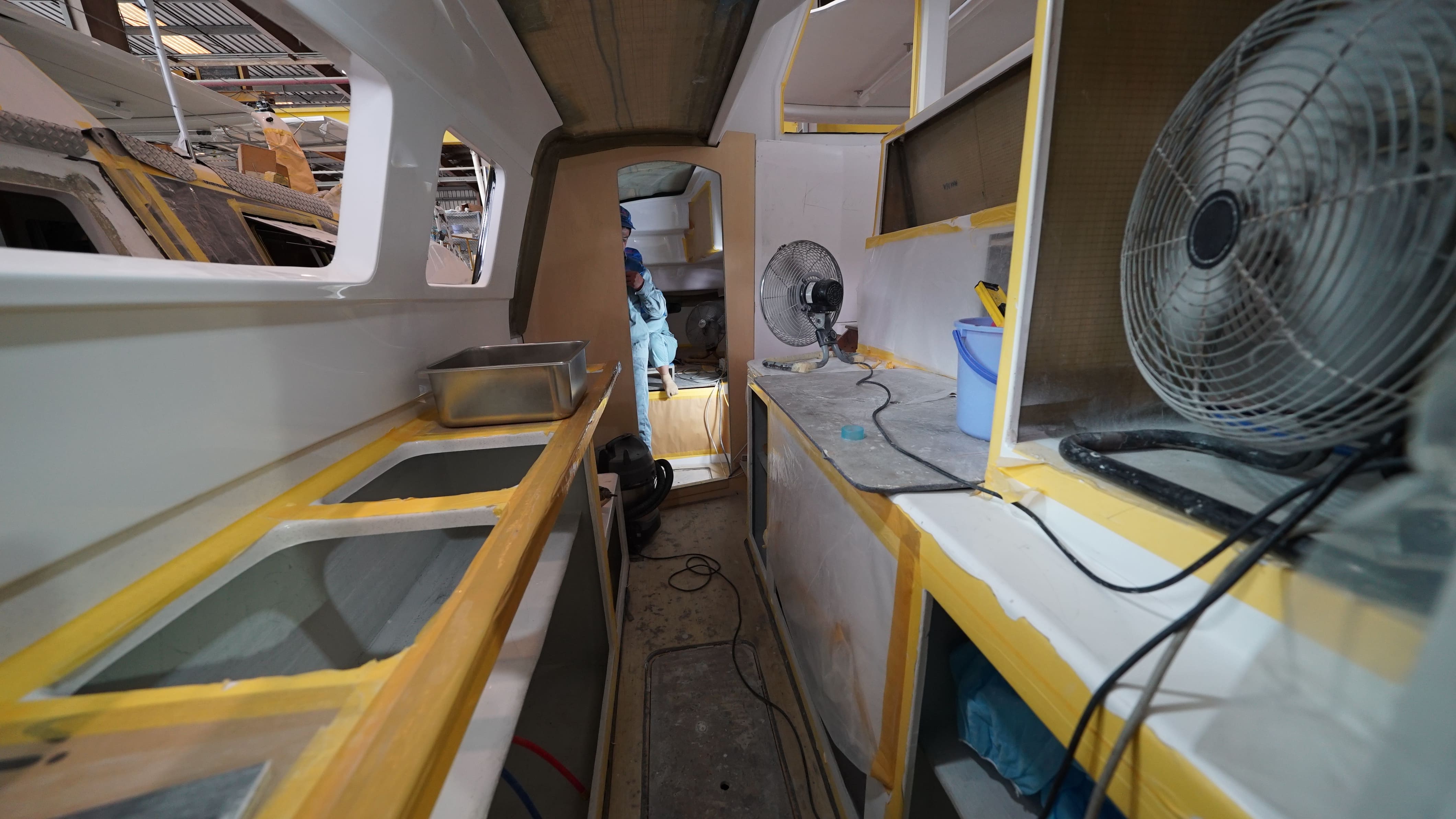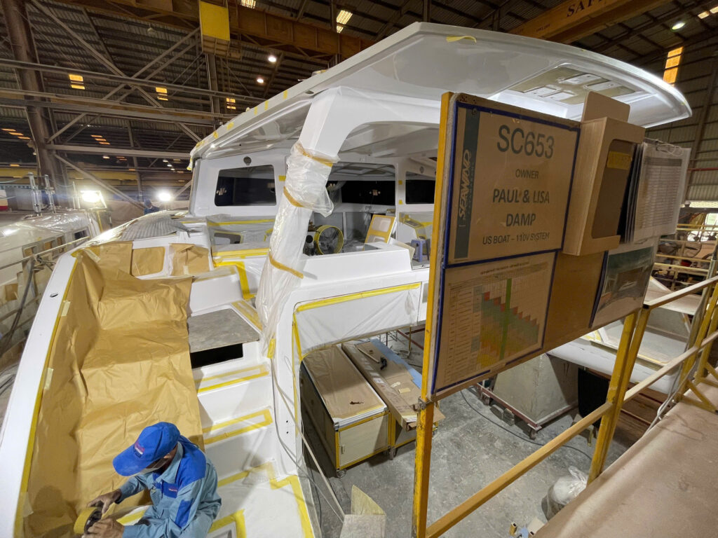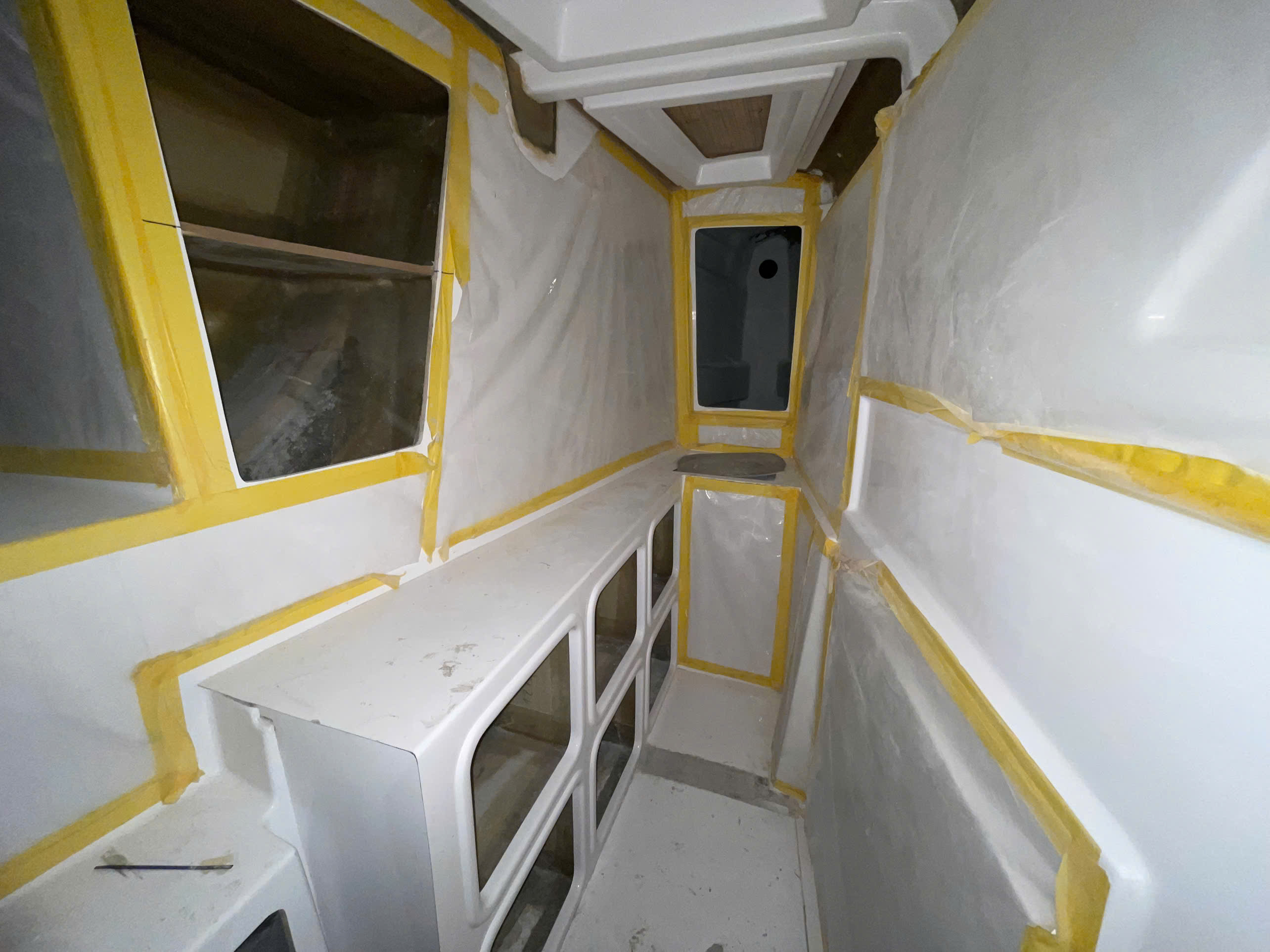 Your boat is now in the Fit-out stage where we have started to work on the key parts and the preparations for windows in.