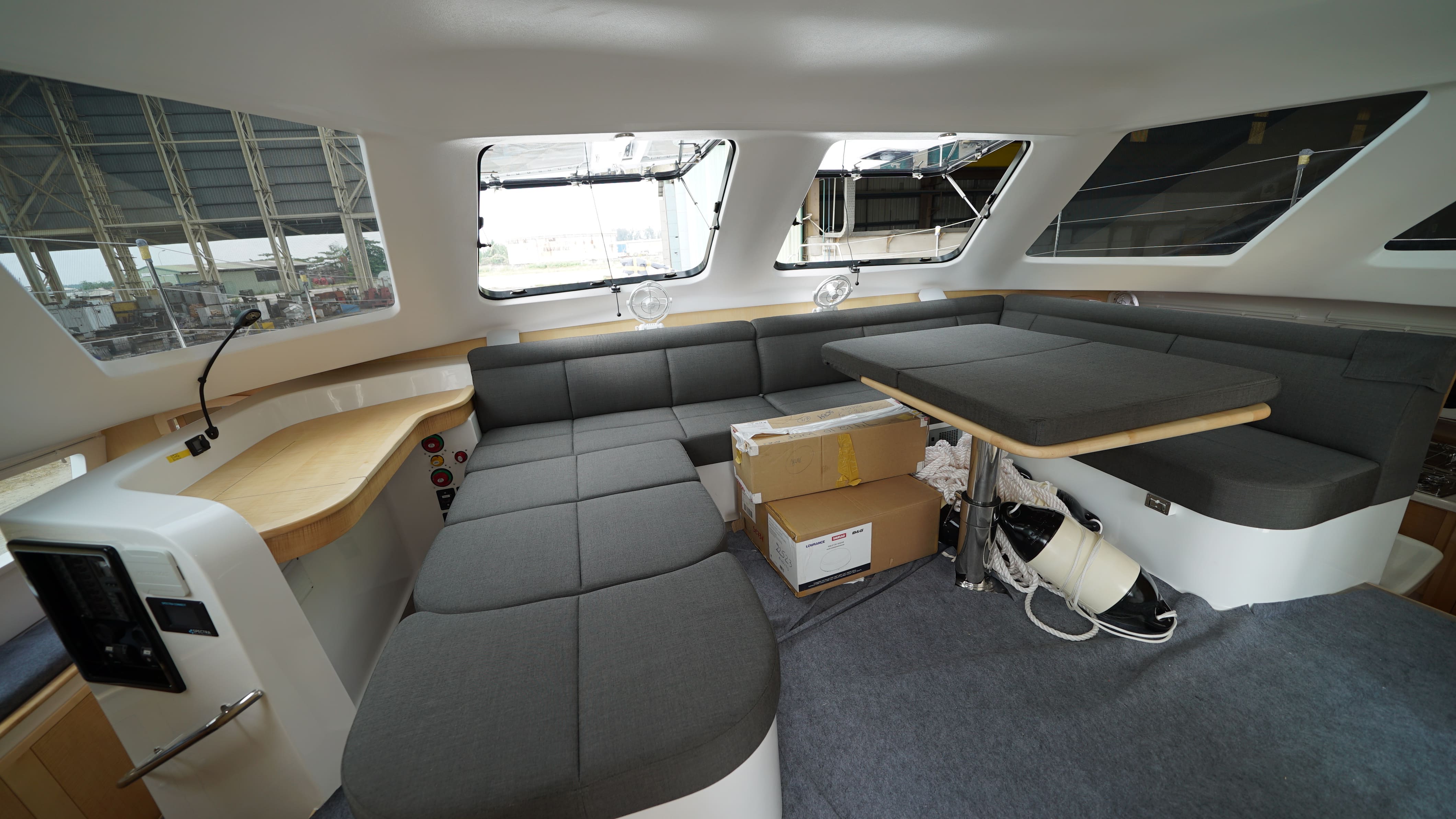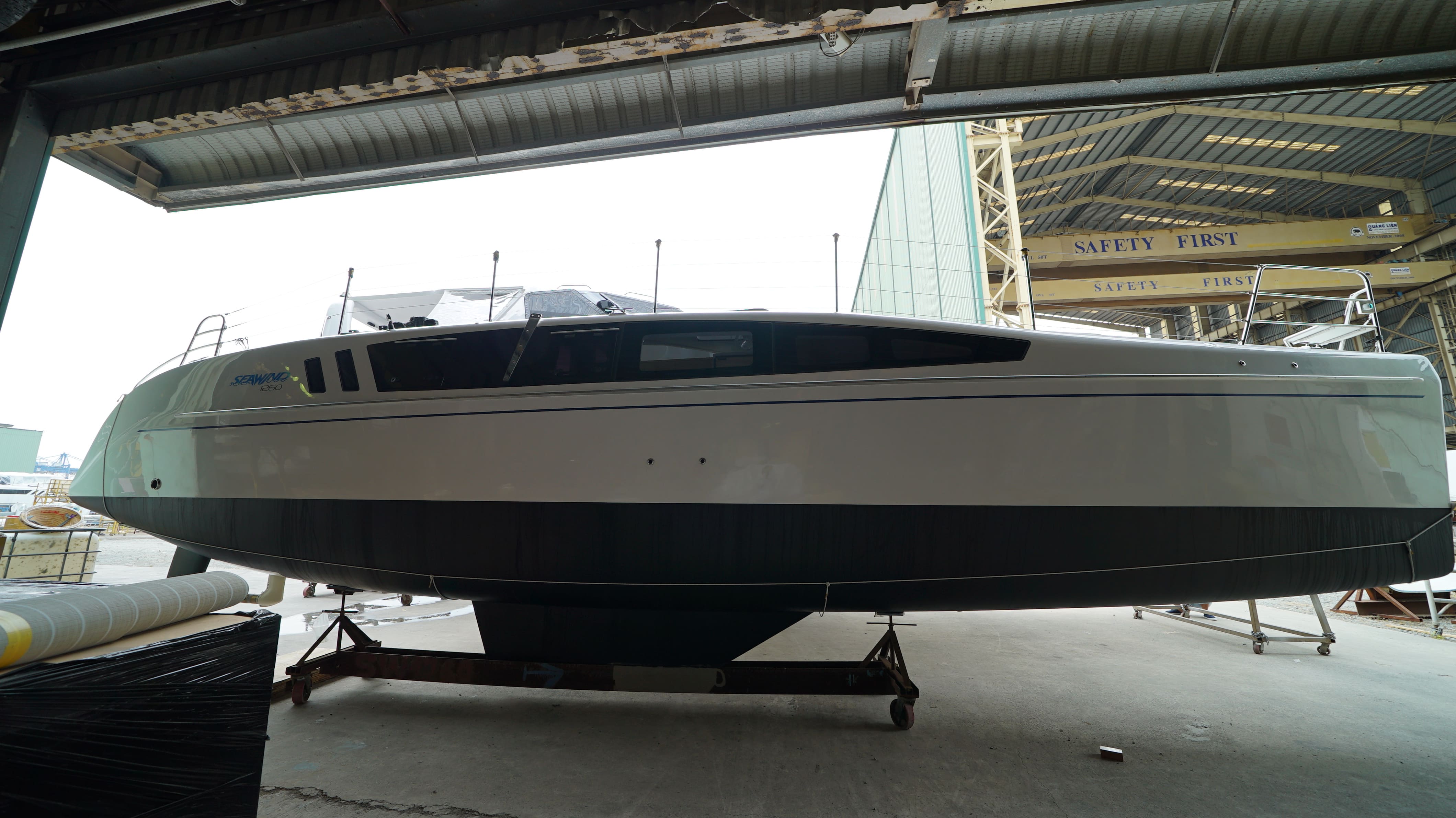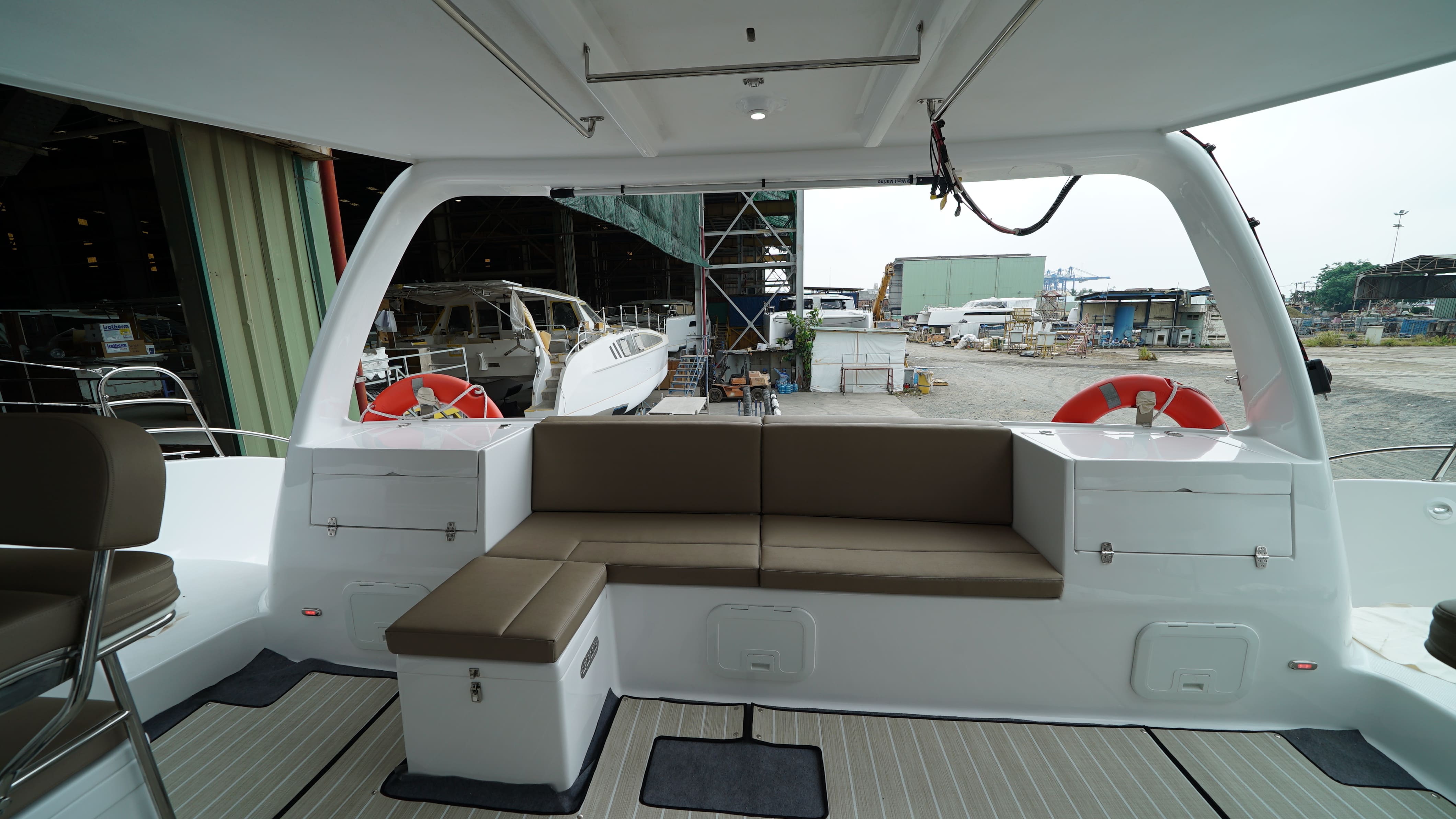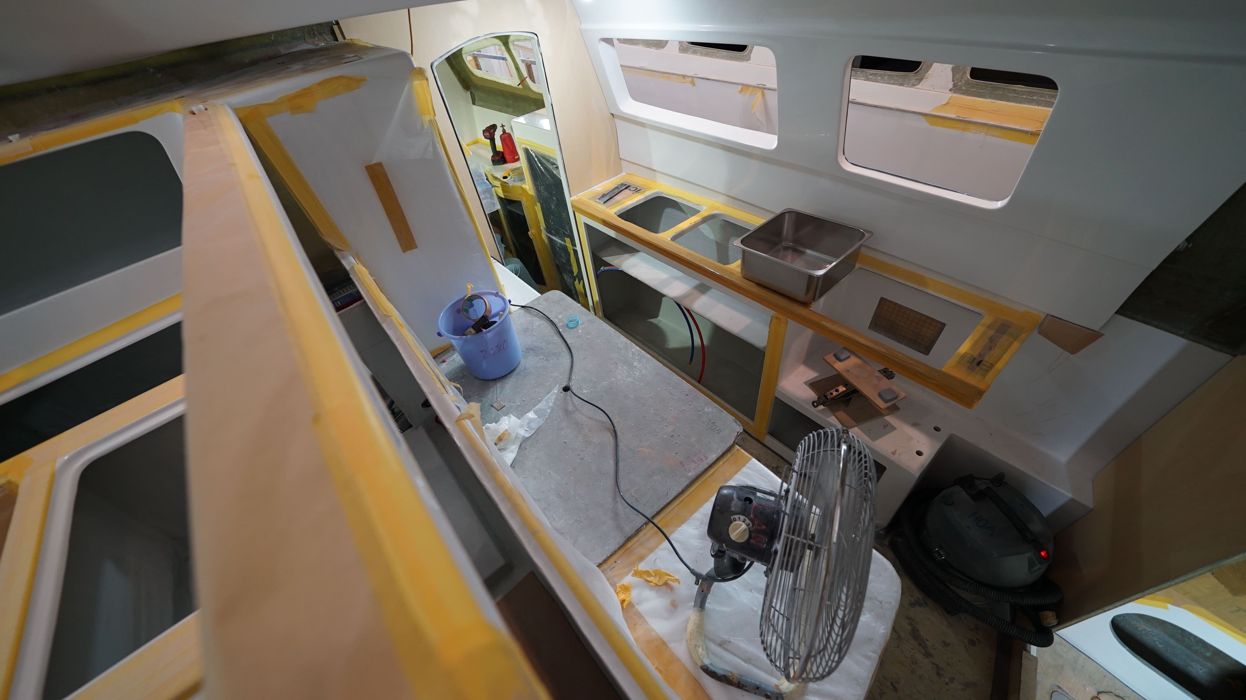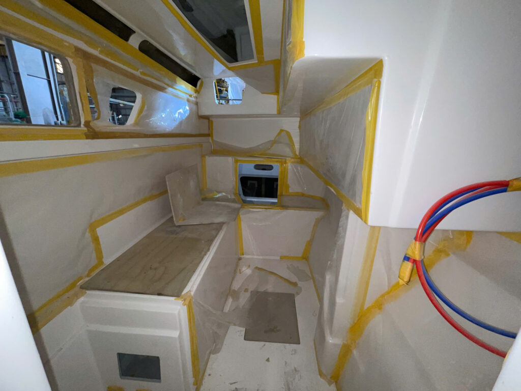 Your boat is now in the Fit-out stage where we have started to work on the key parts and the preparations for windows in.