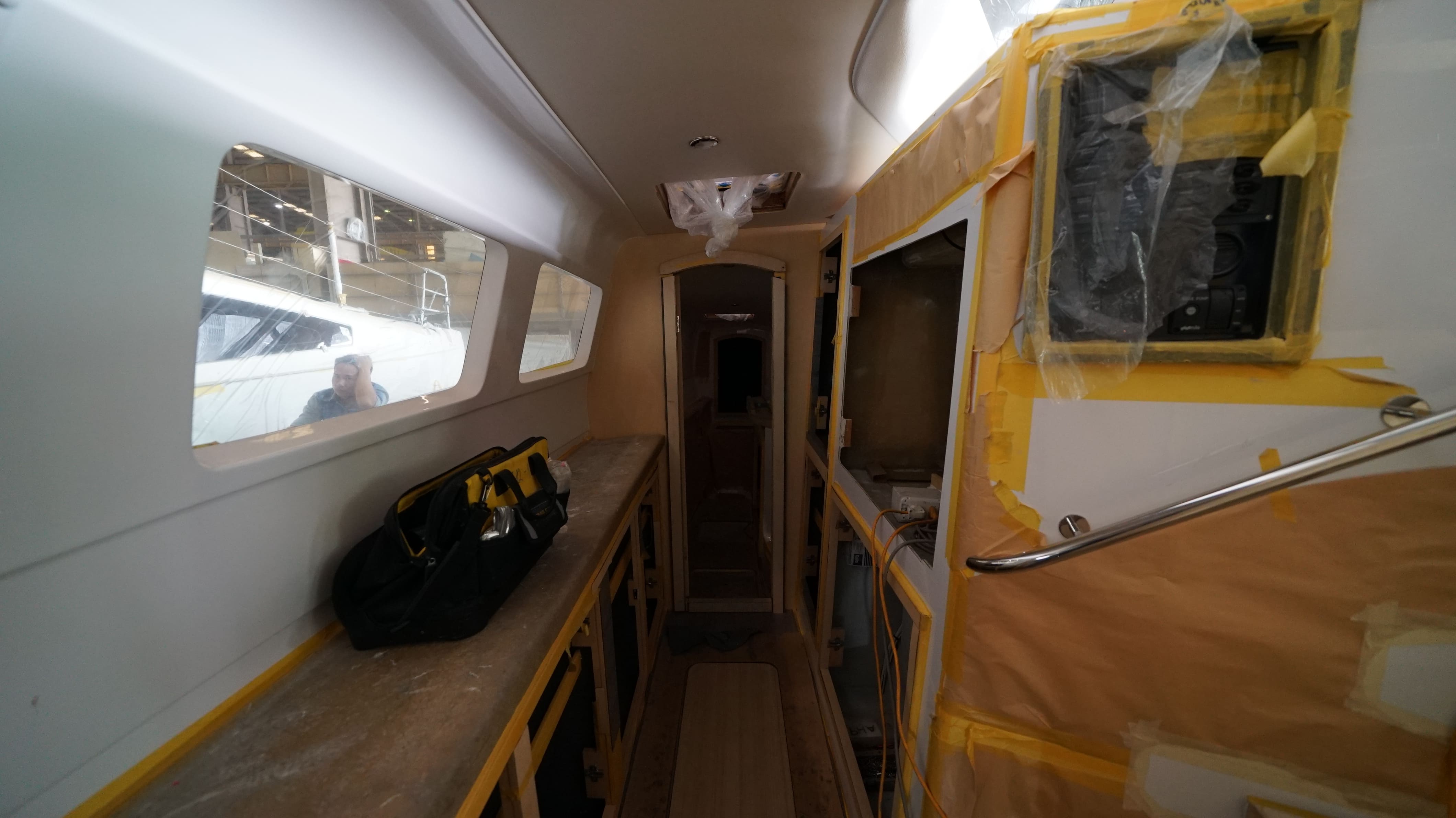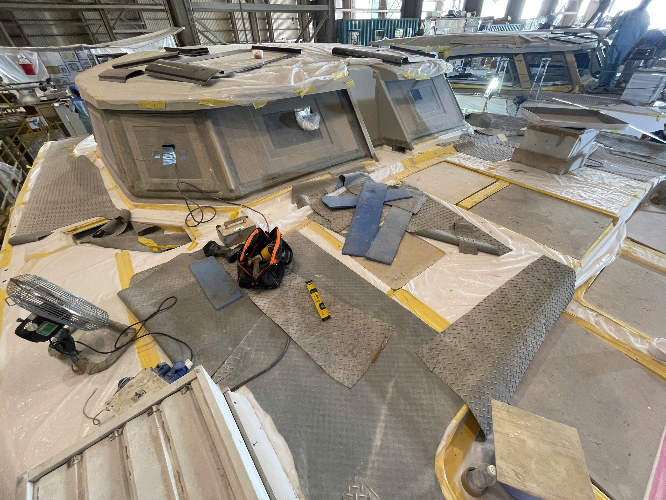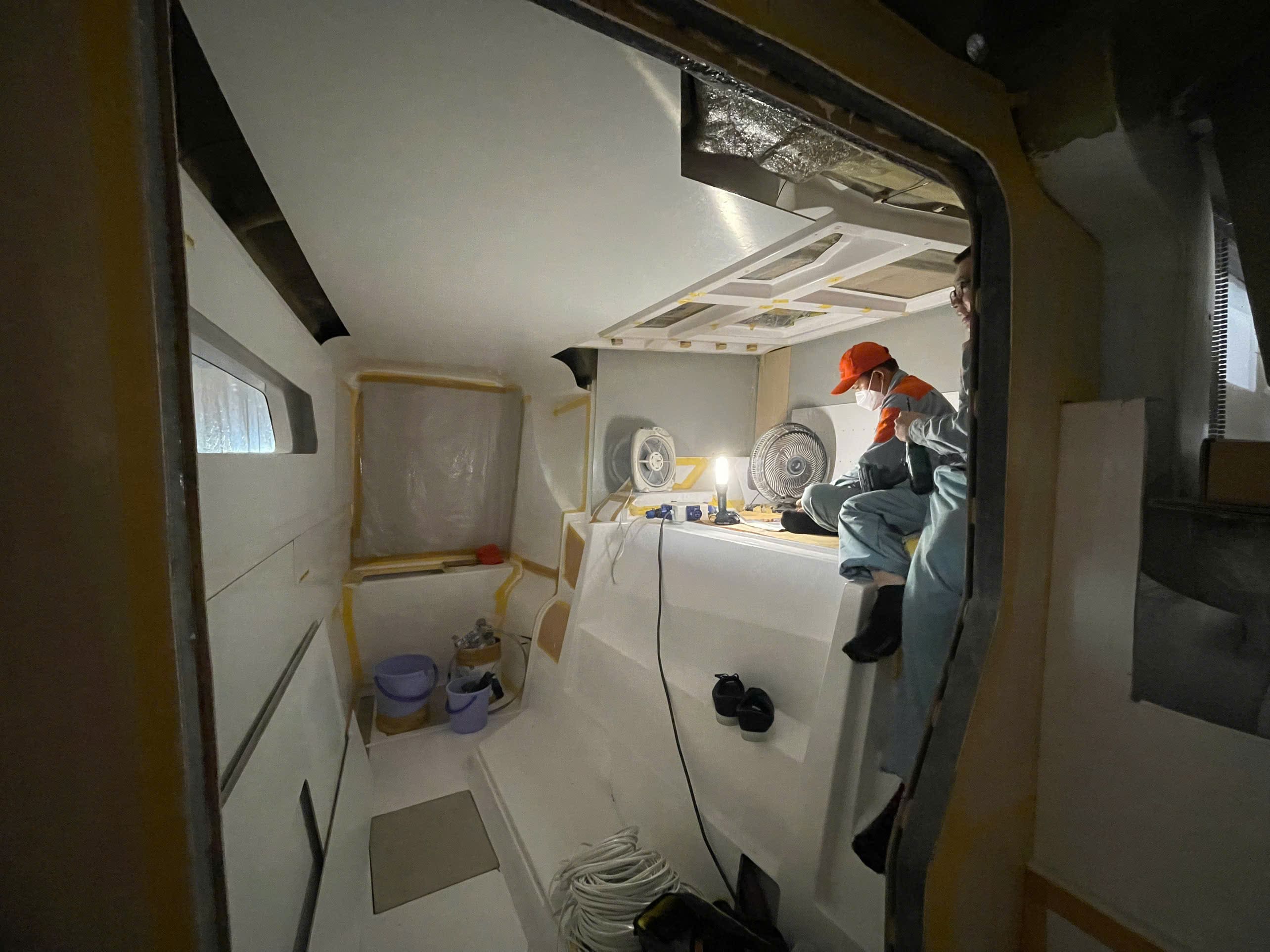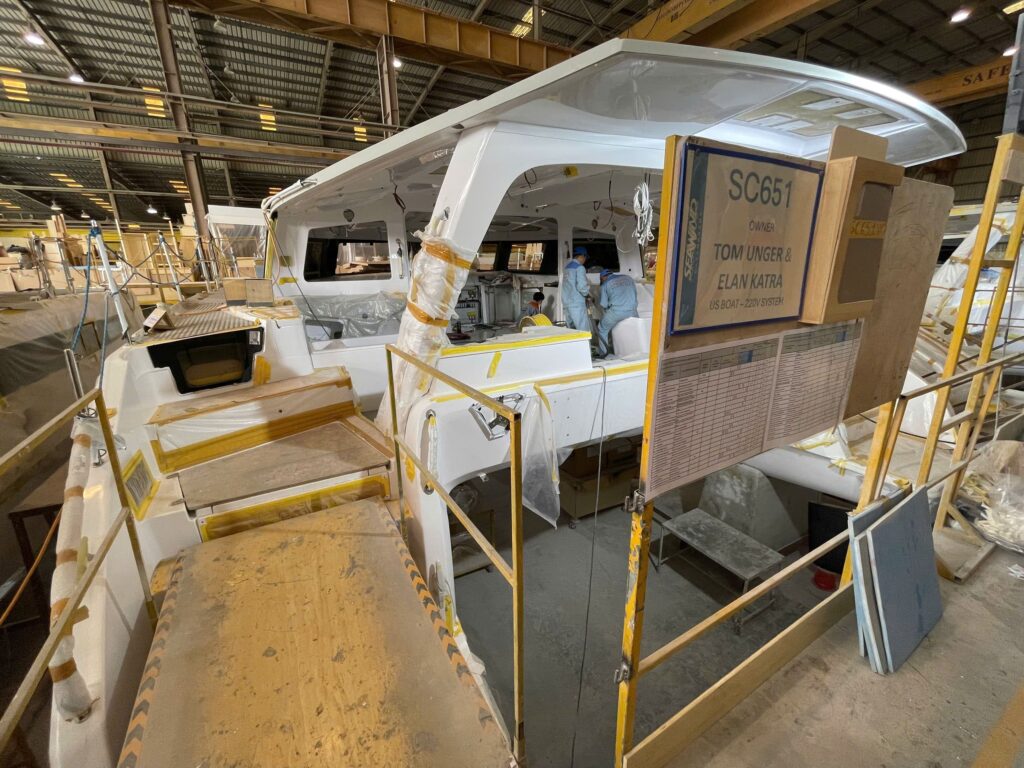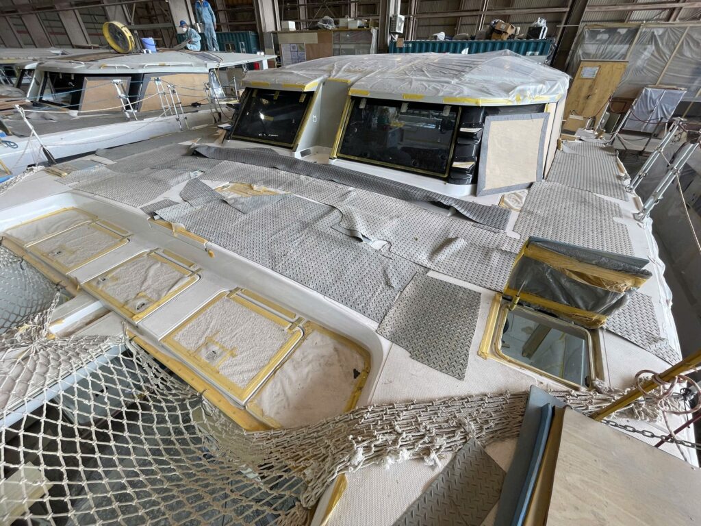 At this point, the deck joining has taken place, and our team has also completed work on the longeron and gelcoat repairs. We are currently working on deck hardware, stanchion, lifelines, electrical system, and plumbing.