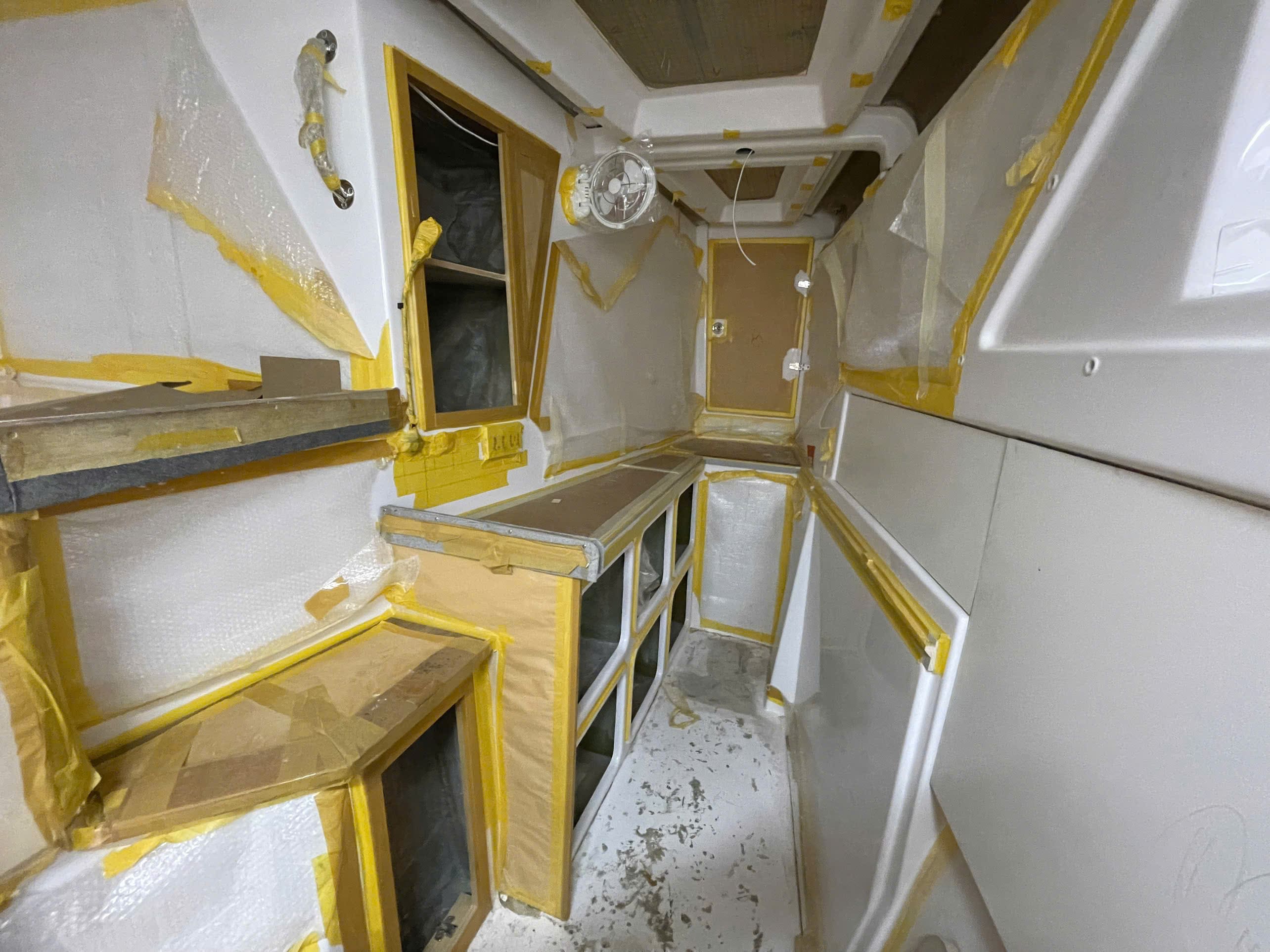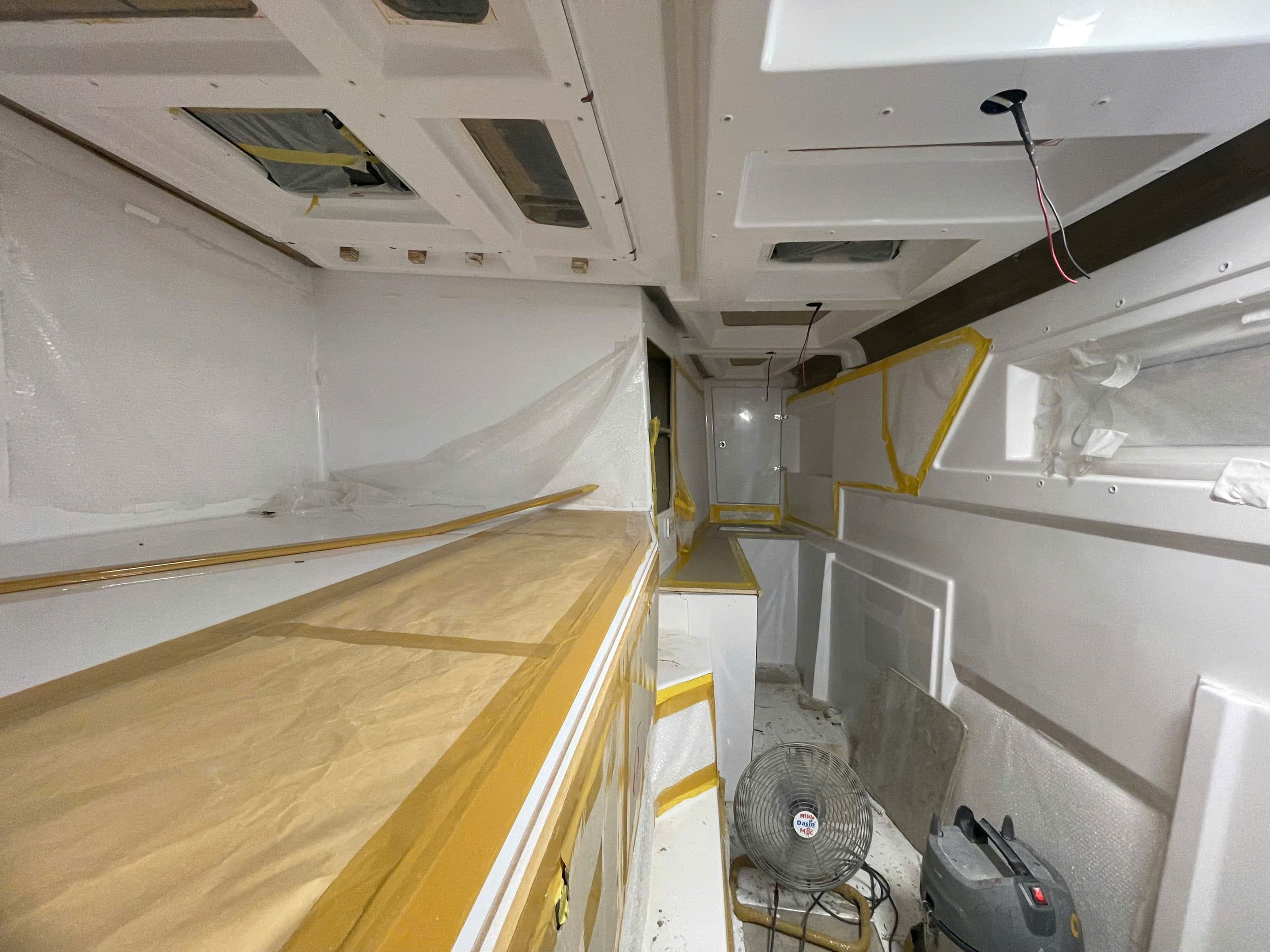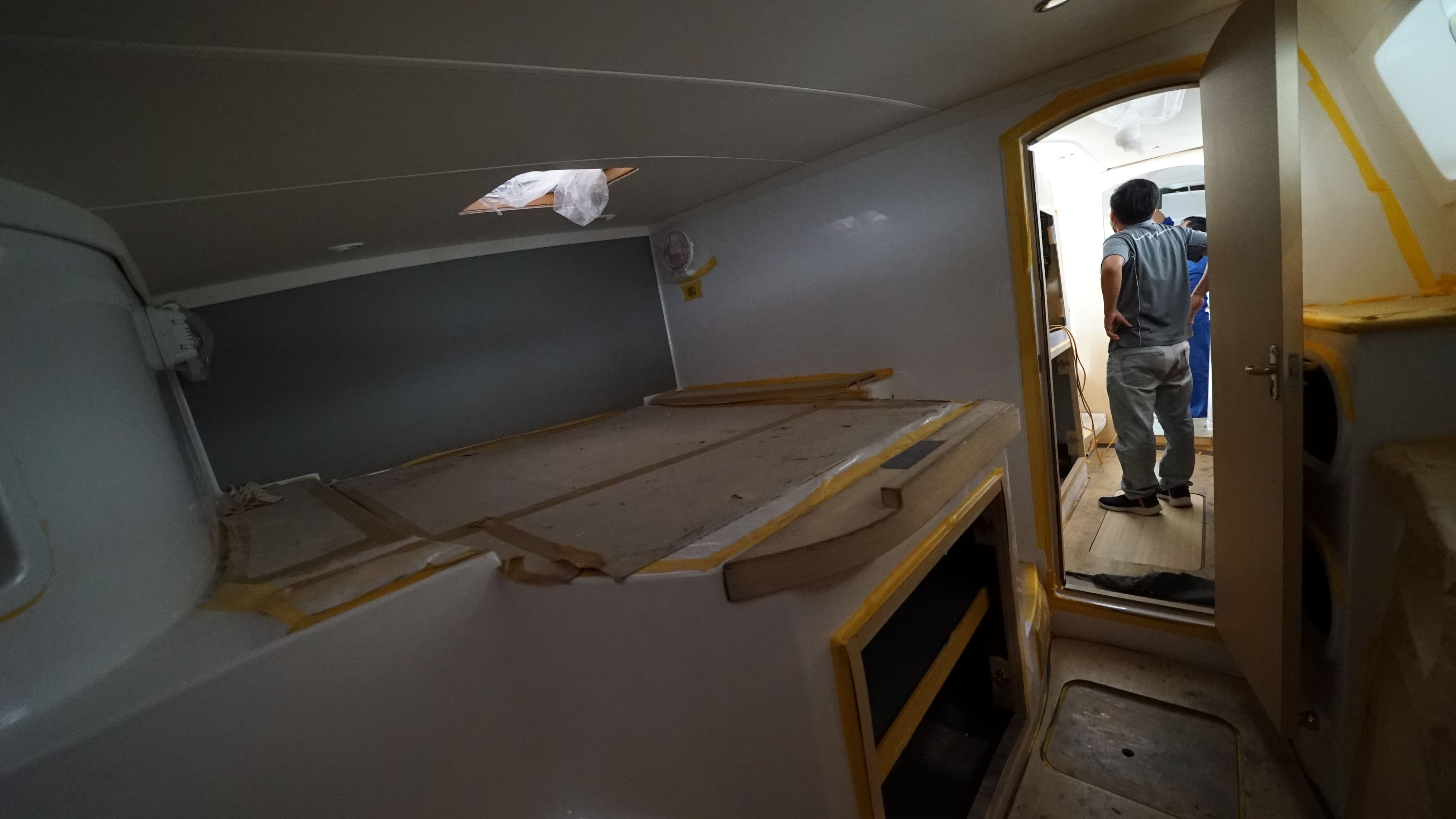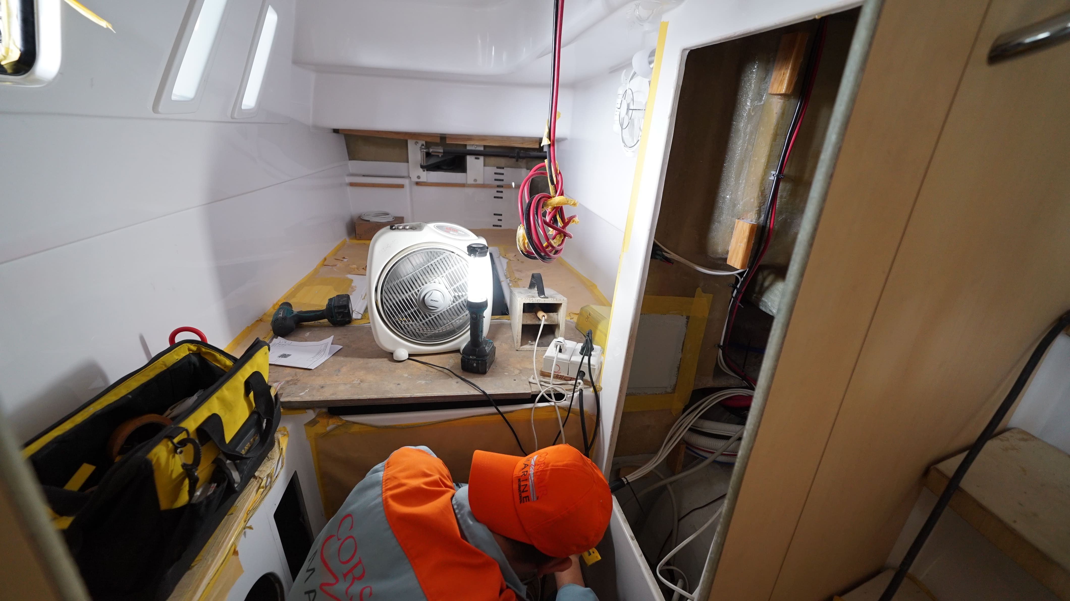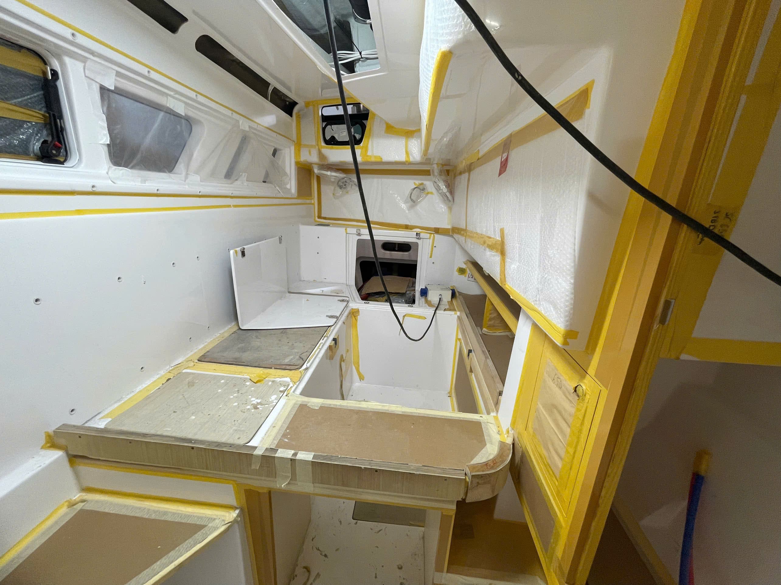 At this point, the deck joining has taken place, and our team has also completed work on the longeron and gelcoat repairs. We are currently working on deck hardware, stanchion, lifelines, electrical system, and plumbing.