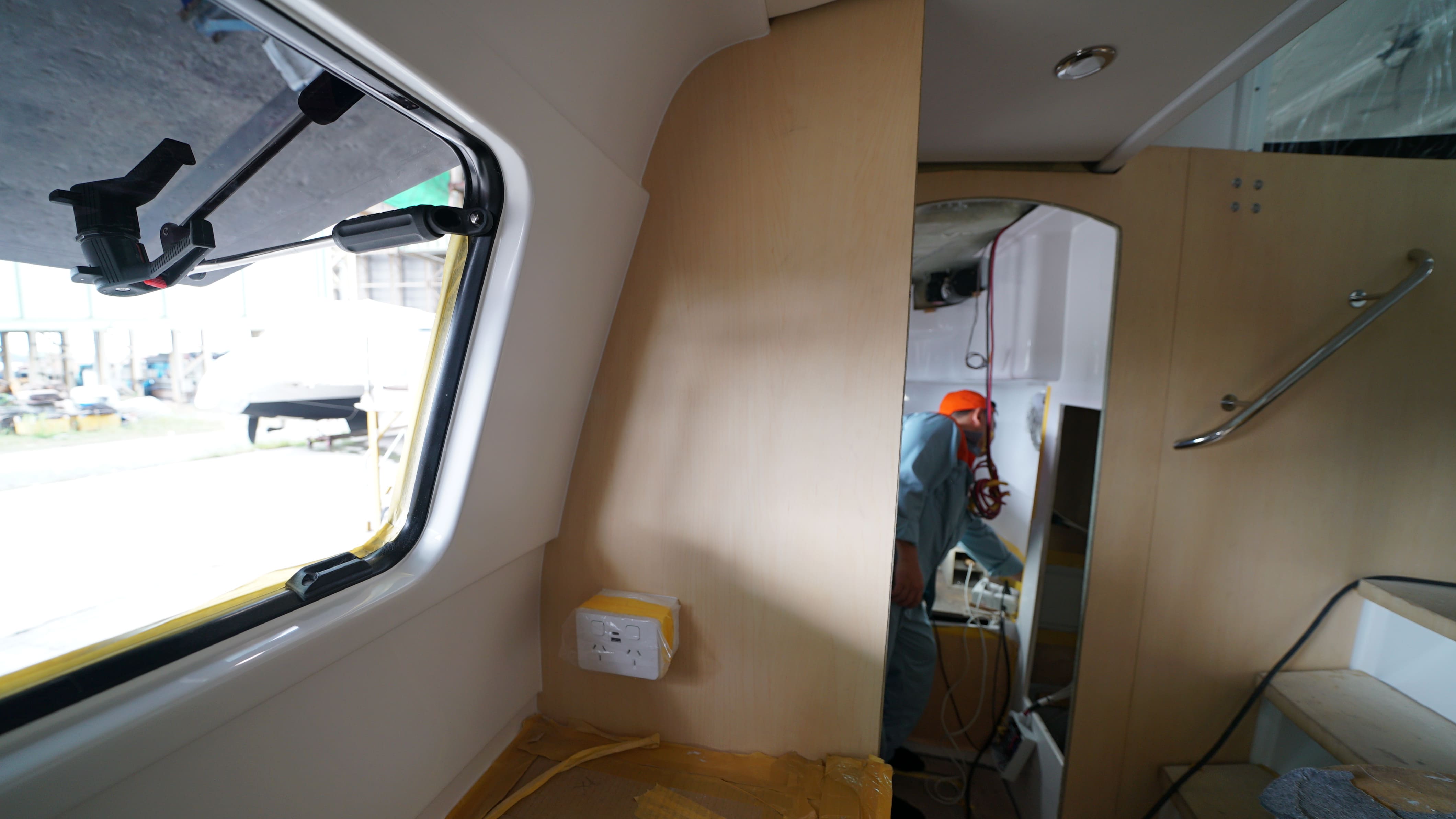 Recently, some key components on the boat have been completed, including deck hardware, windows & hatches, and electric propulsion.