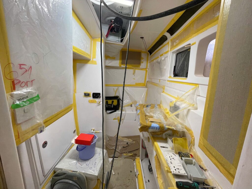 Our production team is currently working on the following works: deck hardware (75%), electrical system (60%), plumbing and LPG (60%), steering system (50%), and timber fit-out (25%).