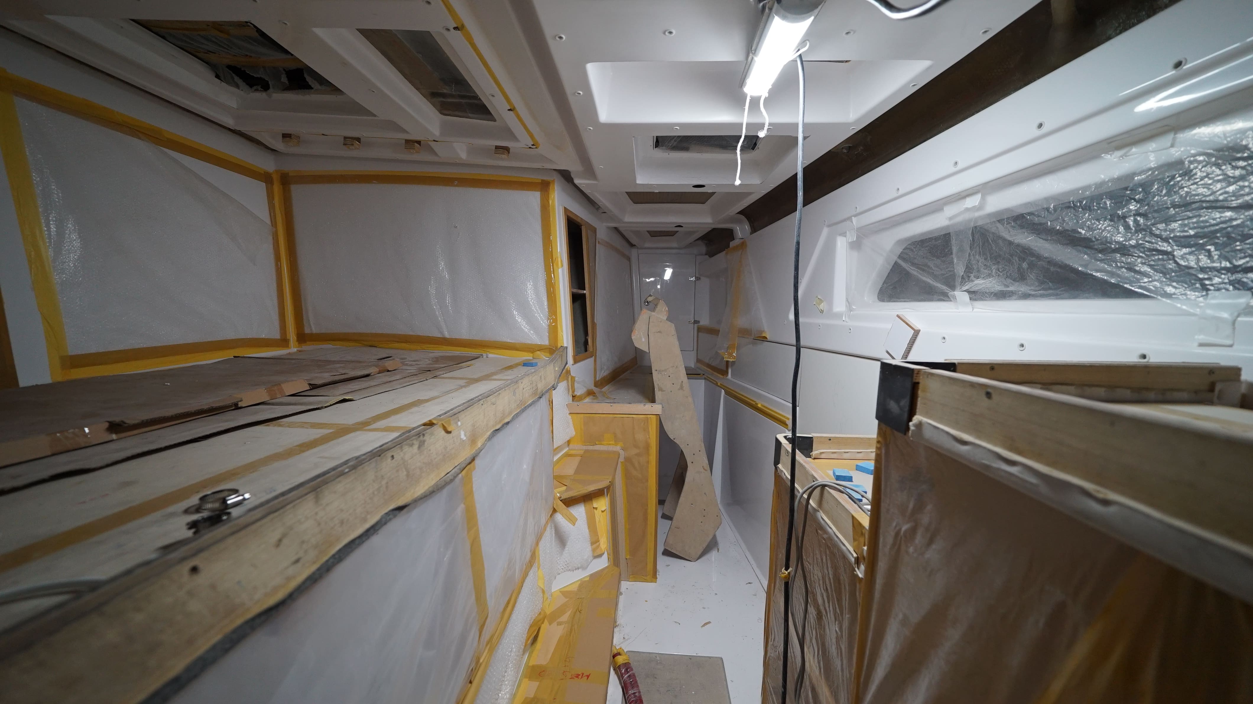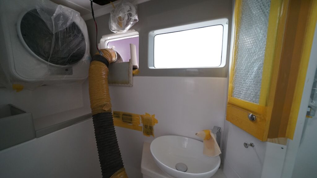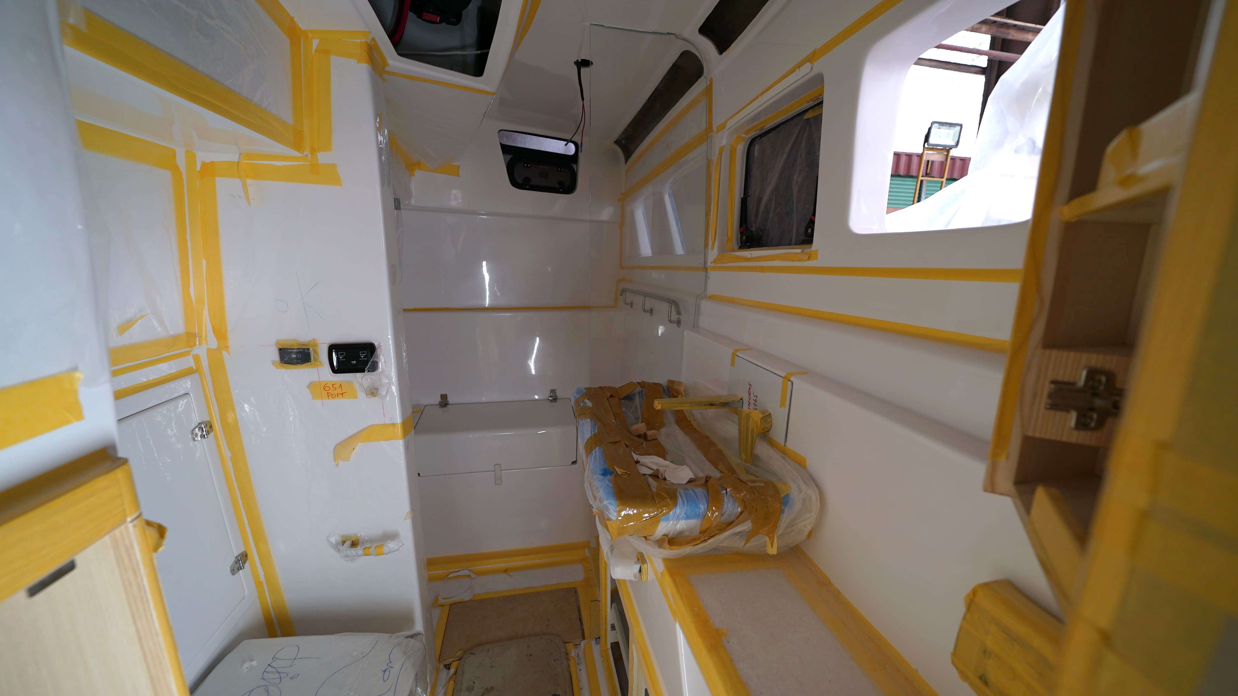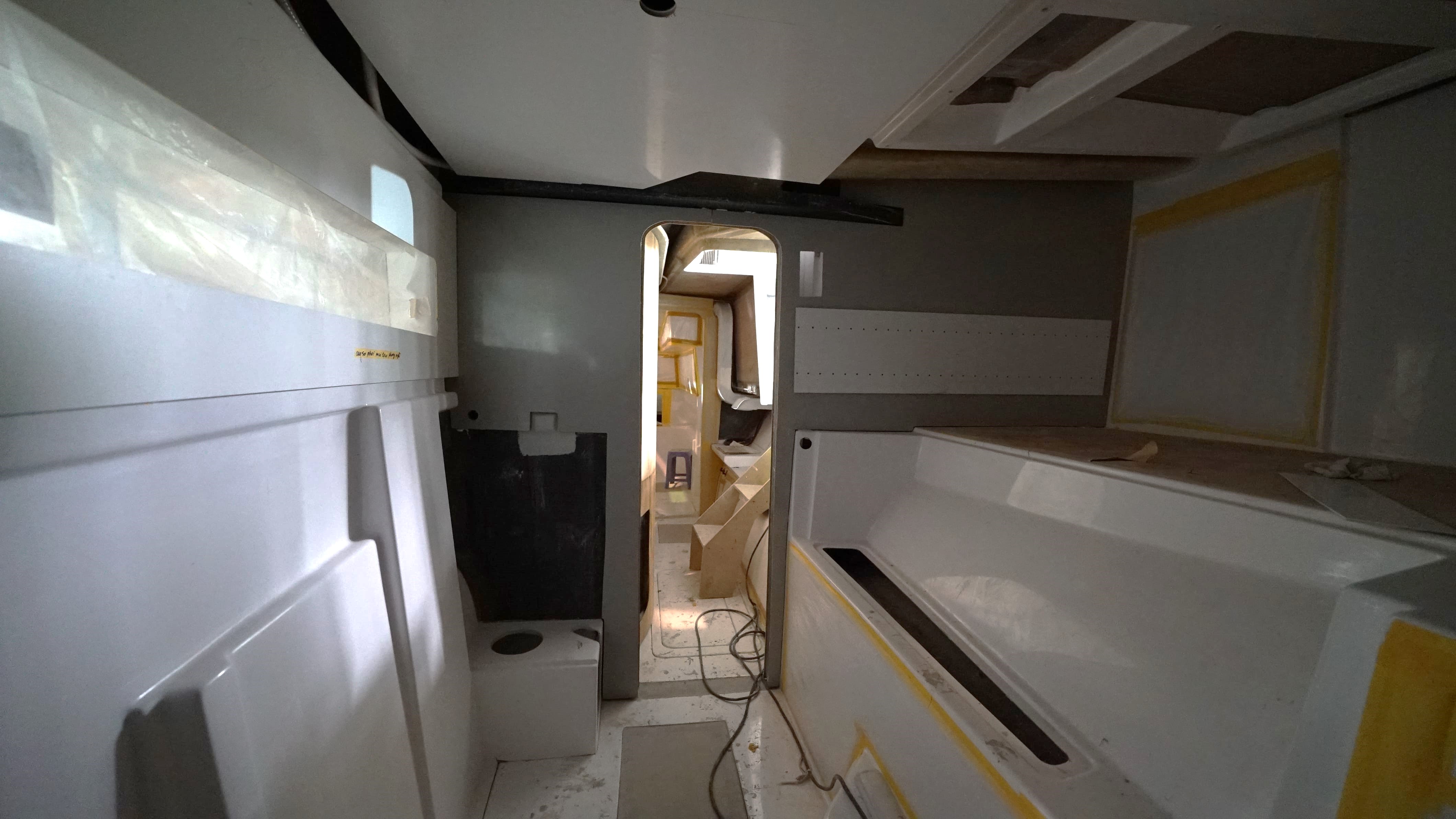 Our Production team is currently working on trampoline, deck hardware (80%), electric work (70%), plumbing & LPG (70%), steering (50%), and timber fitout (50%).