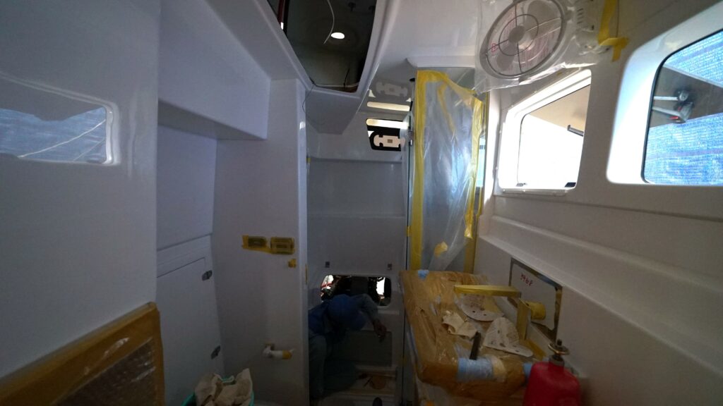 The boat is now largely outfitted, with most fittings installed, the electrical system nearing completion, and interior work almost finished. Our production team is focused on final touch-ups to ensure everything is completed as planned. With this progress, the boat will soon transition into the detailing and QC stage.