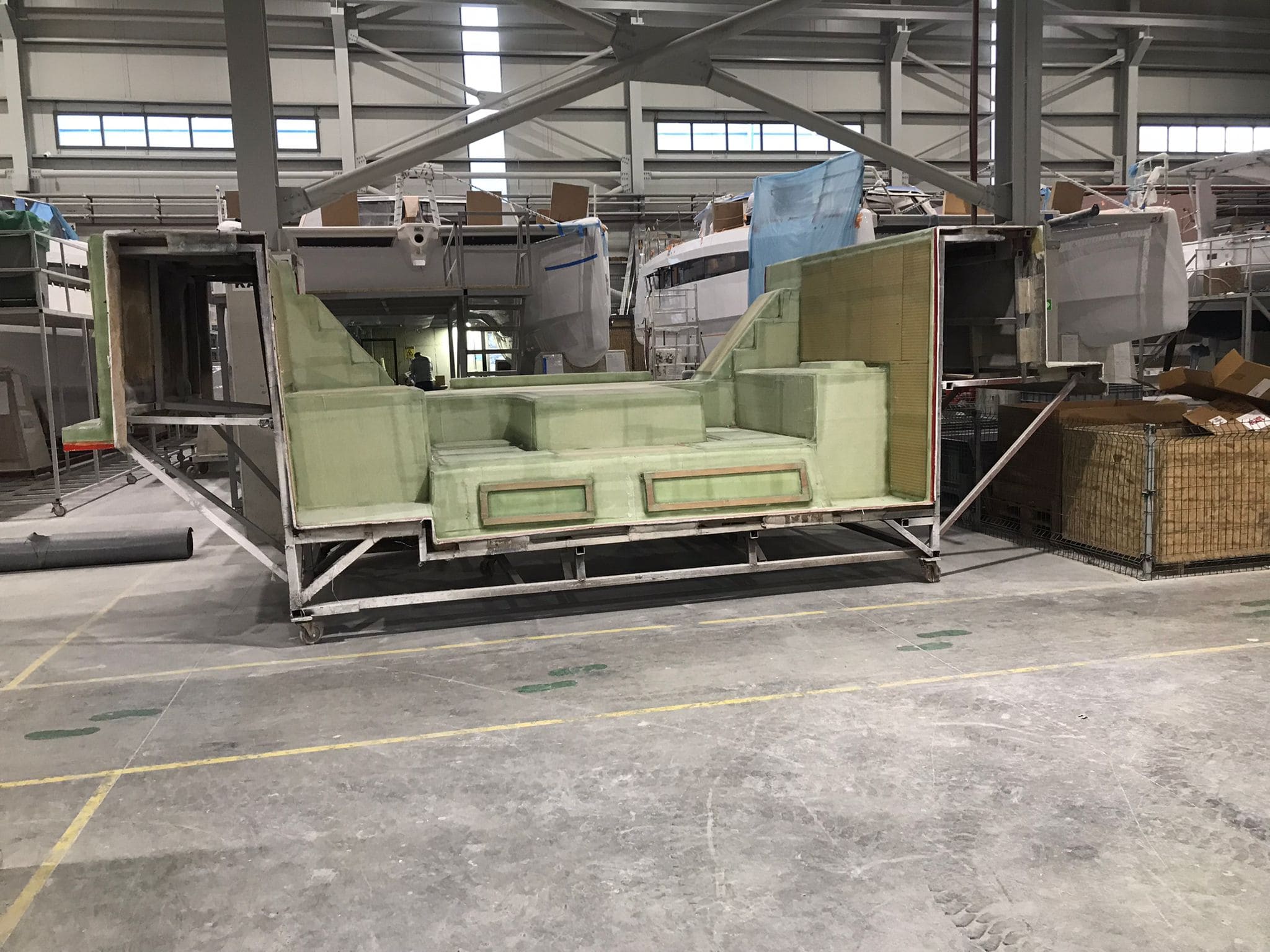 Hull lamination is currently underway, marking a key step in building the boat’s structure, while furniture manufacturing is also in progress, laying the groundwork for the interior fit-out.