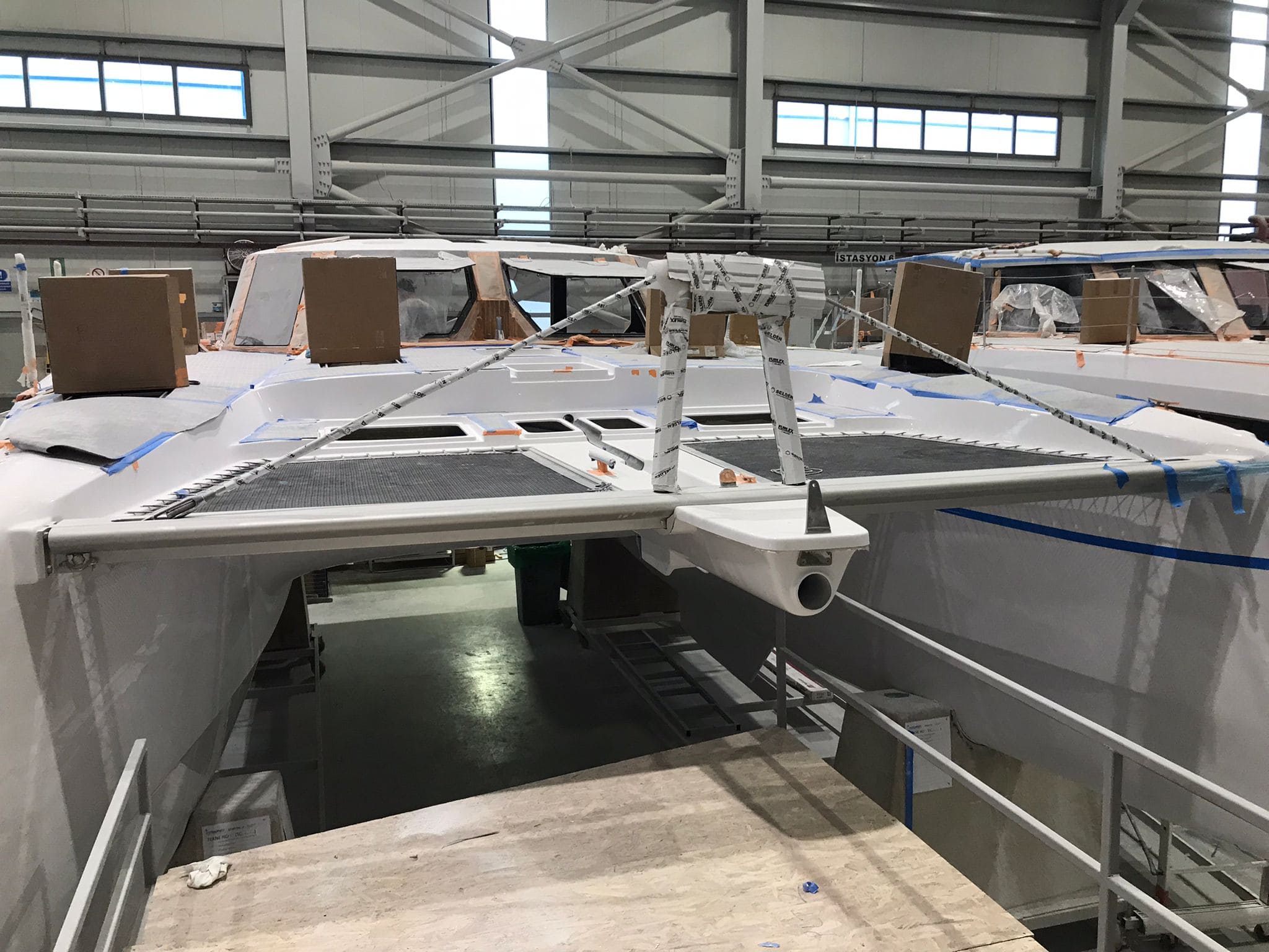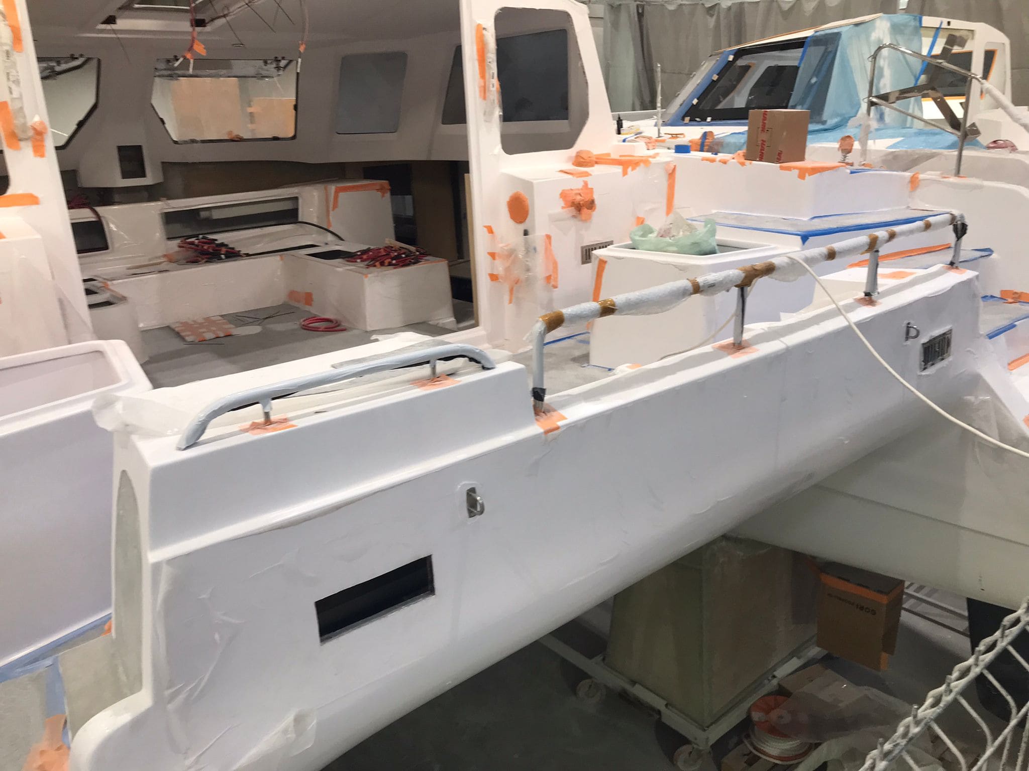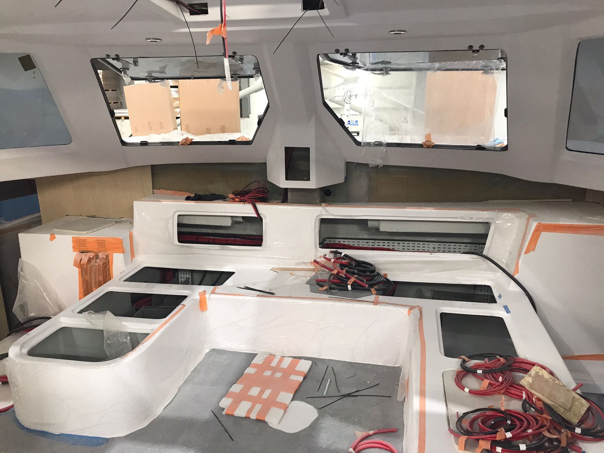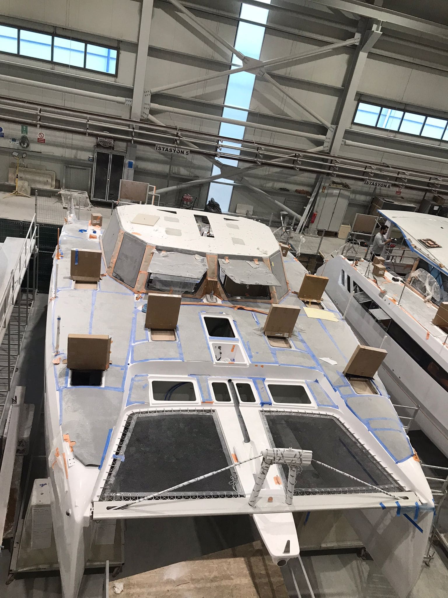 Hull lamination is currently underway, marking a key step in building the boat’s structure, while furniture manufacturing is also in progress, laying the groundwork for the interior fit-out.