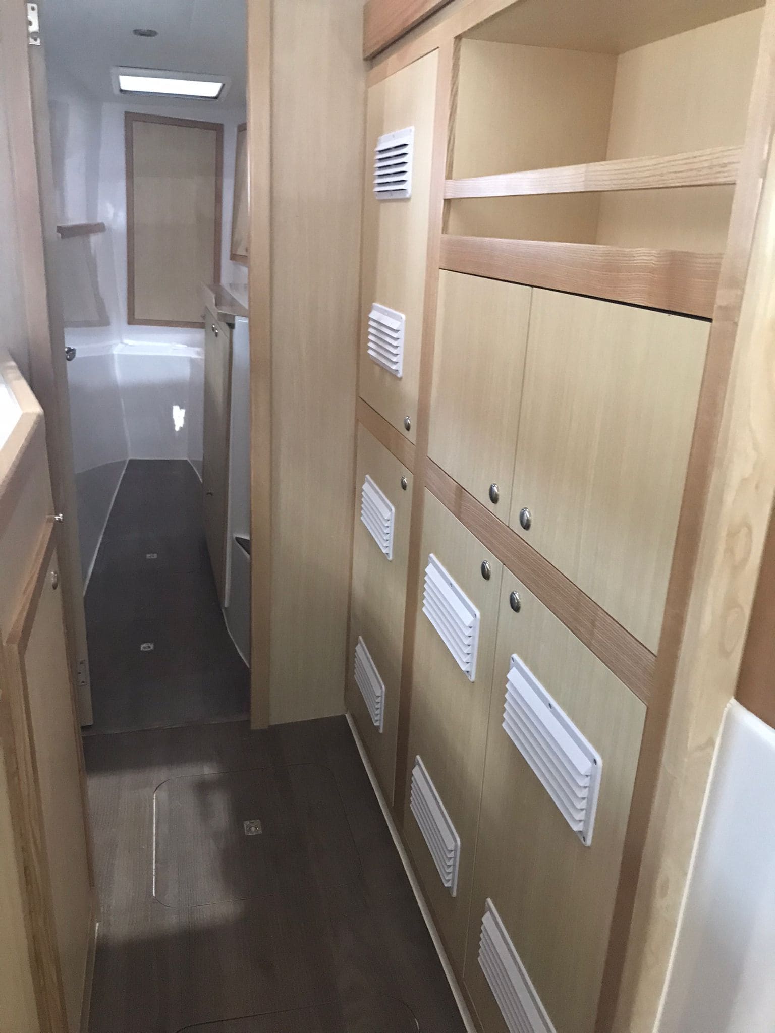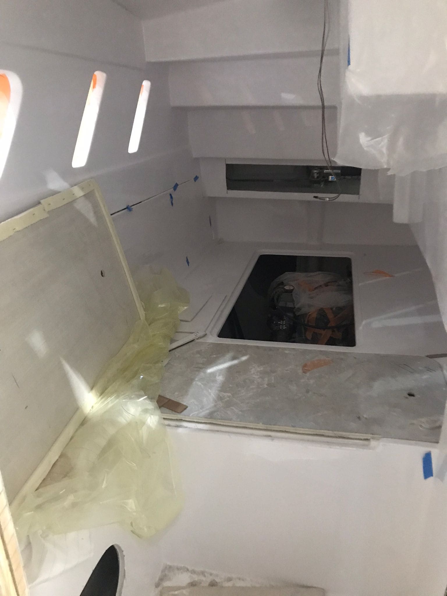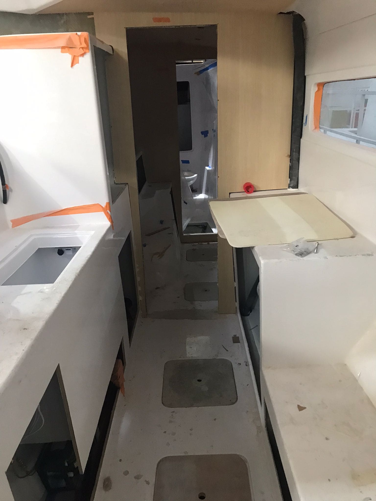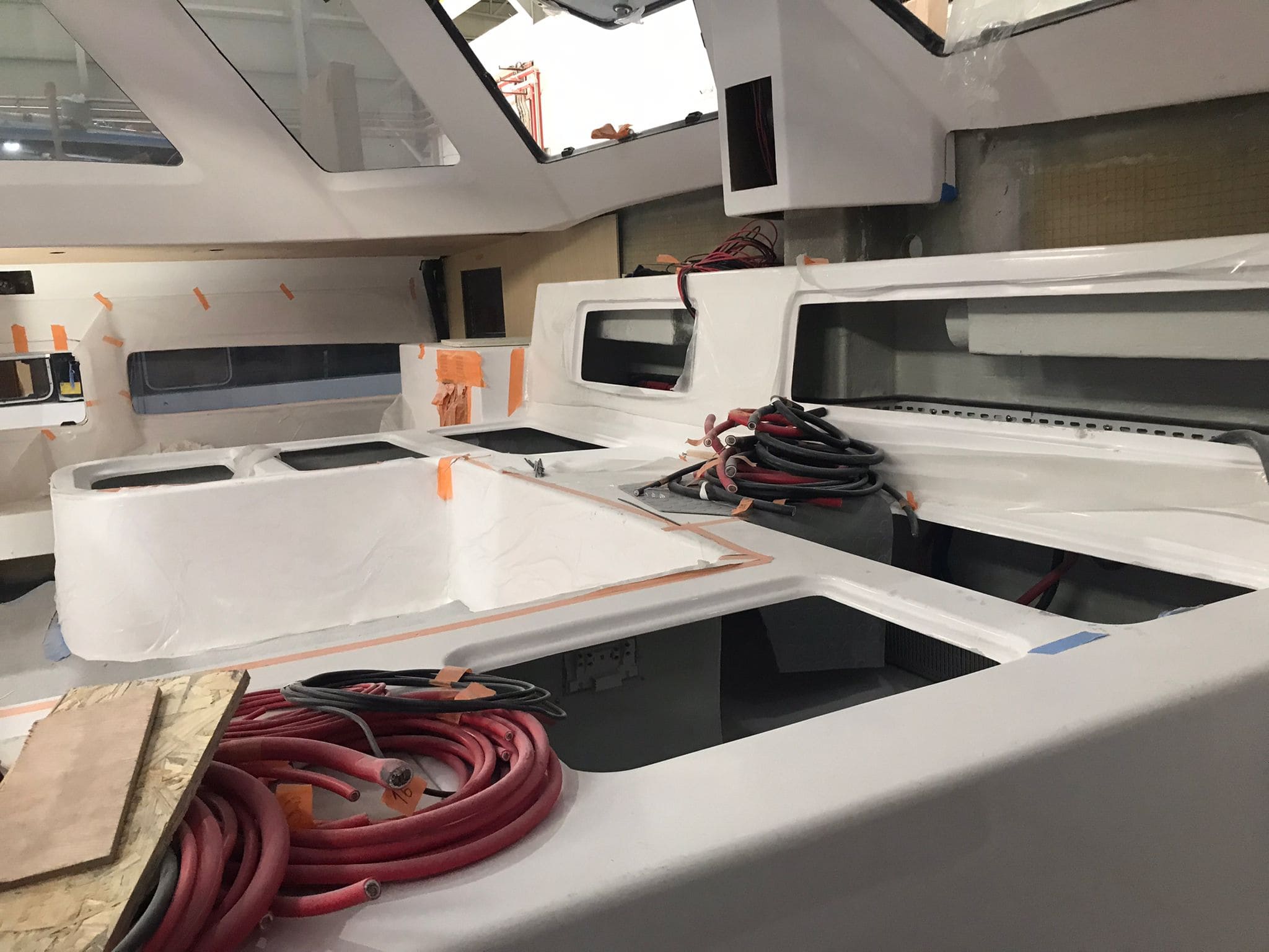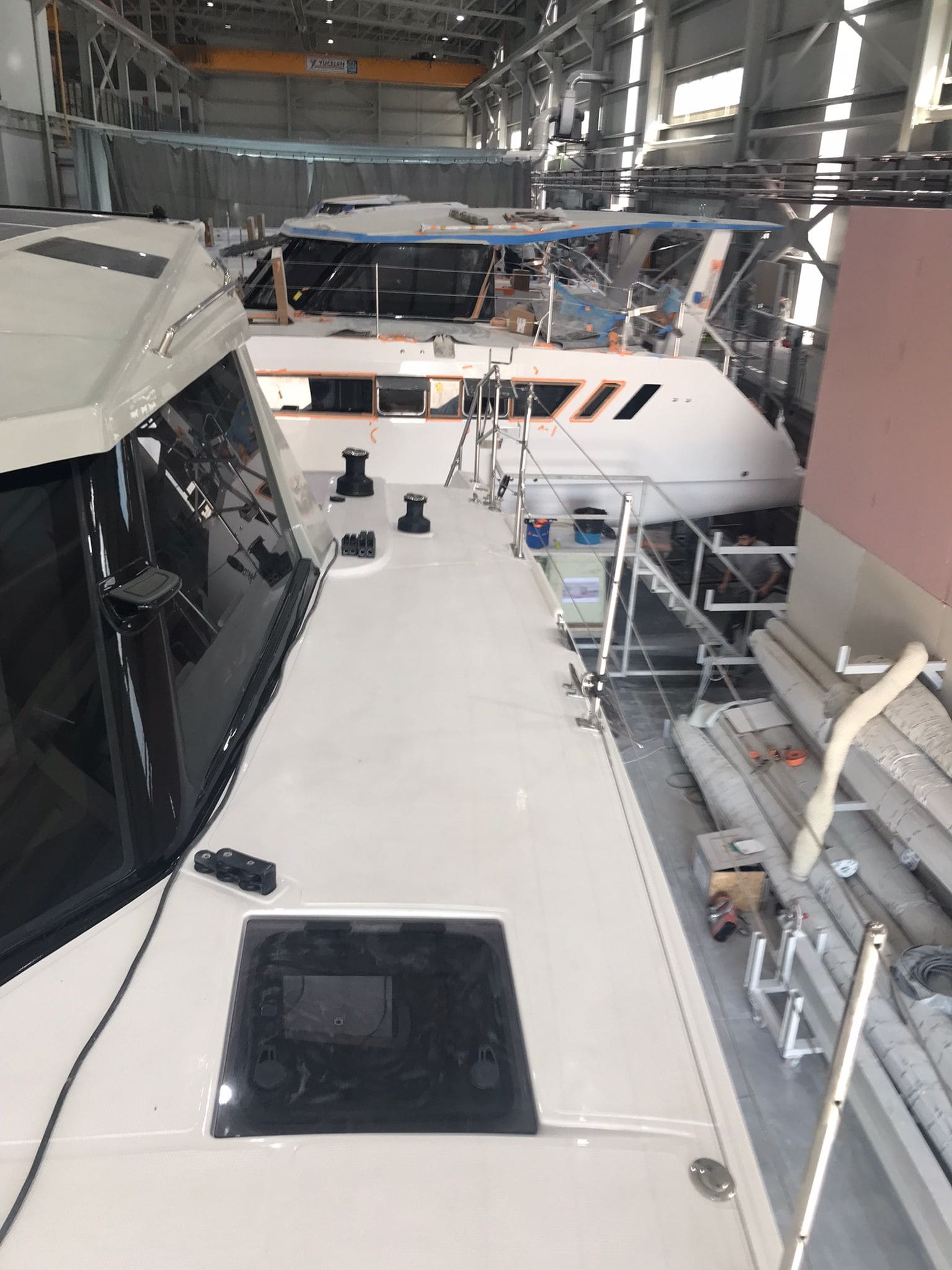 Hull lamination is currently underway, marking a key step in building the boat’s structure, while furniture manufacturing is also in progress, laying the groundwork for the interior fit-out.