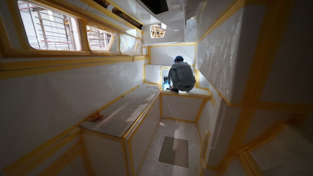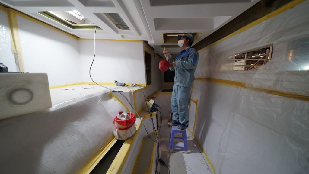 Please see below for some photos of the boat in her final days before being launched. Let us also take you on a tour around your boat via this Youtube video.