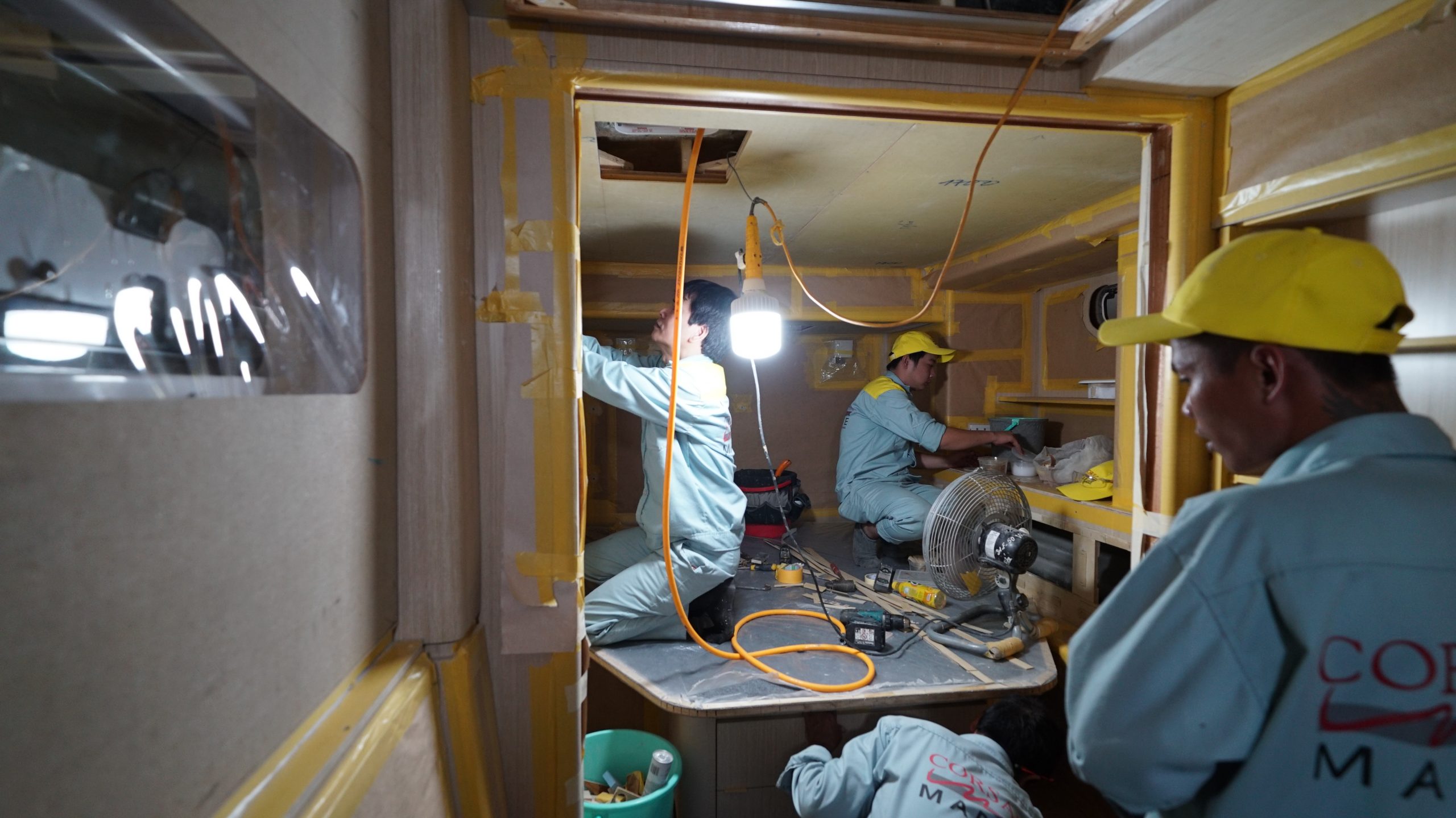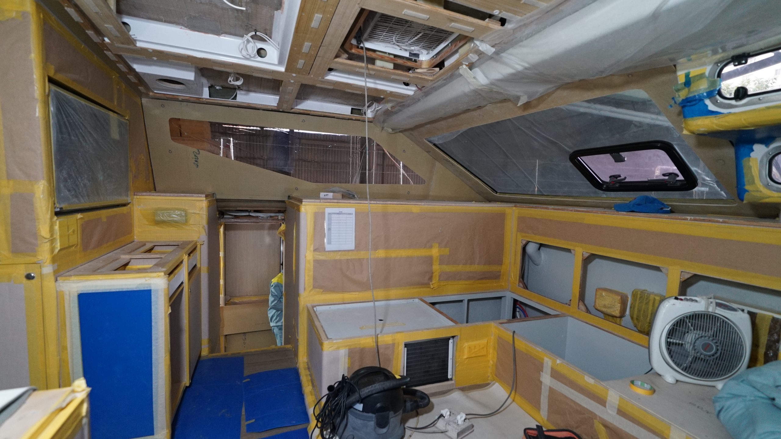 Interior: Currently we are putting the sprayed furniture back in. Antifoul preparation is done, as well as plumbing, electric is done by 90%. We are also starting to work on flooring within next week.