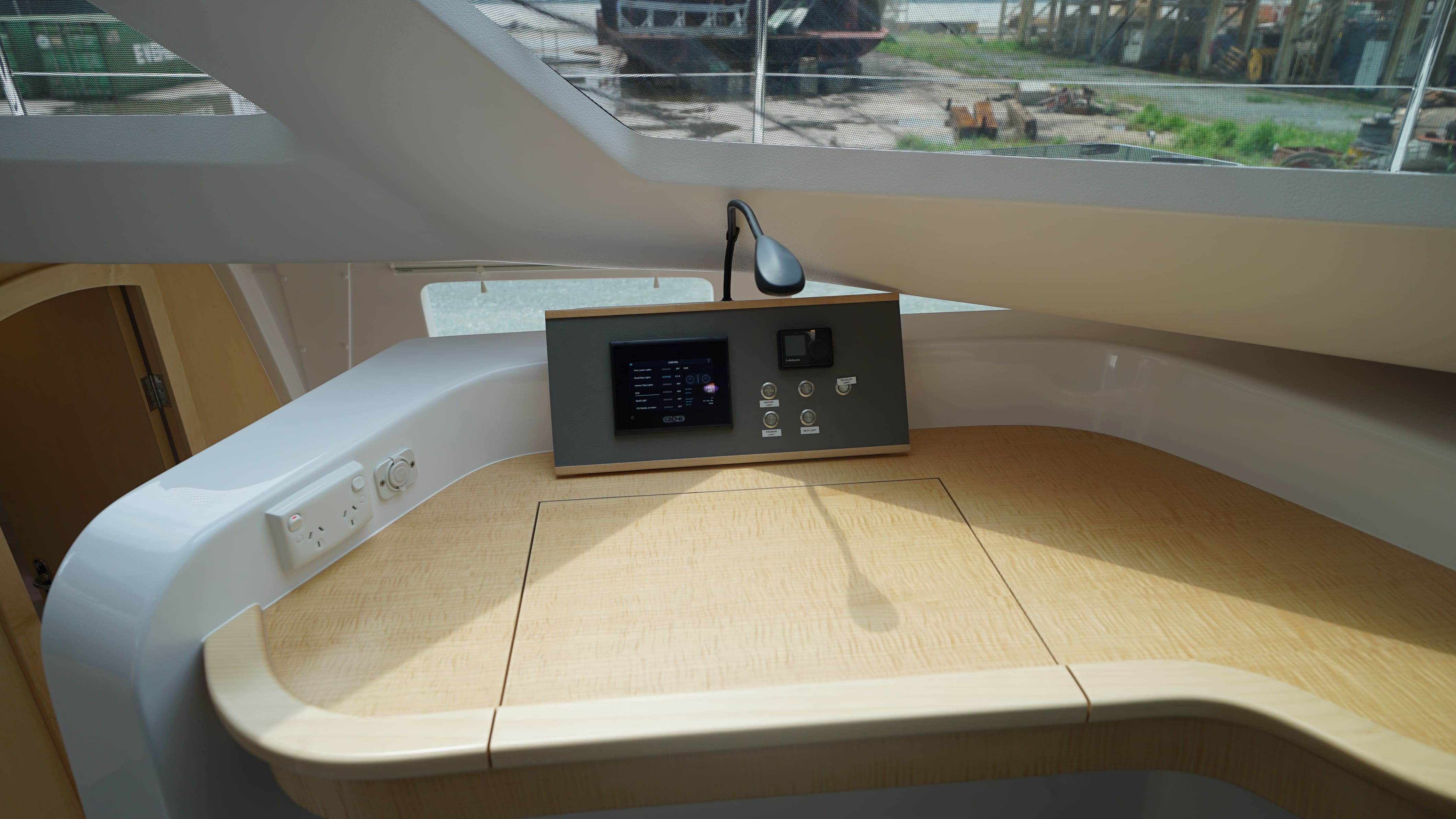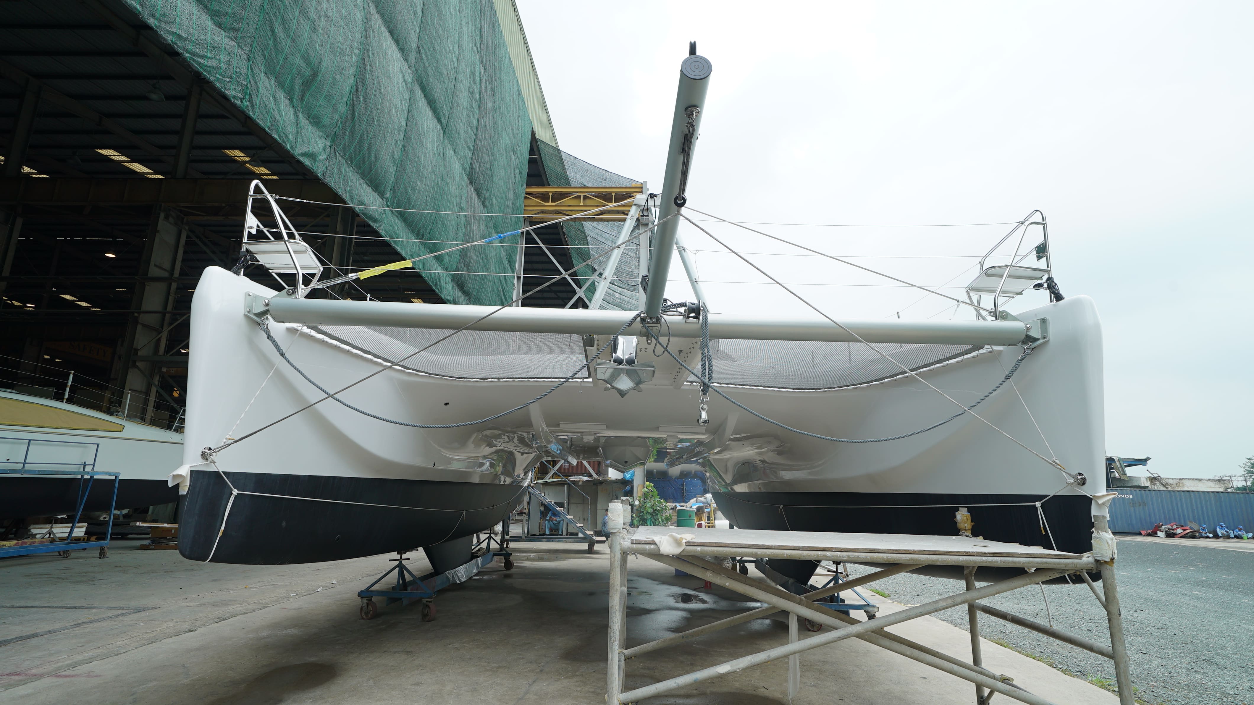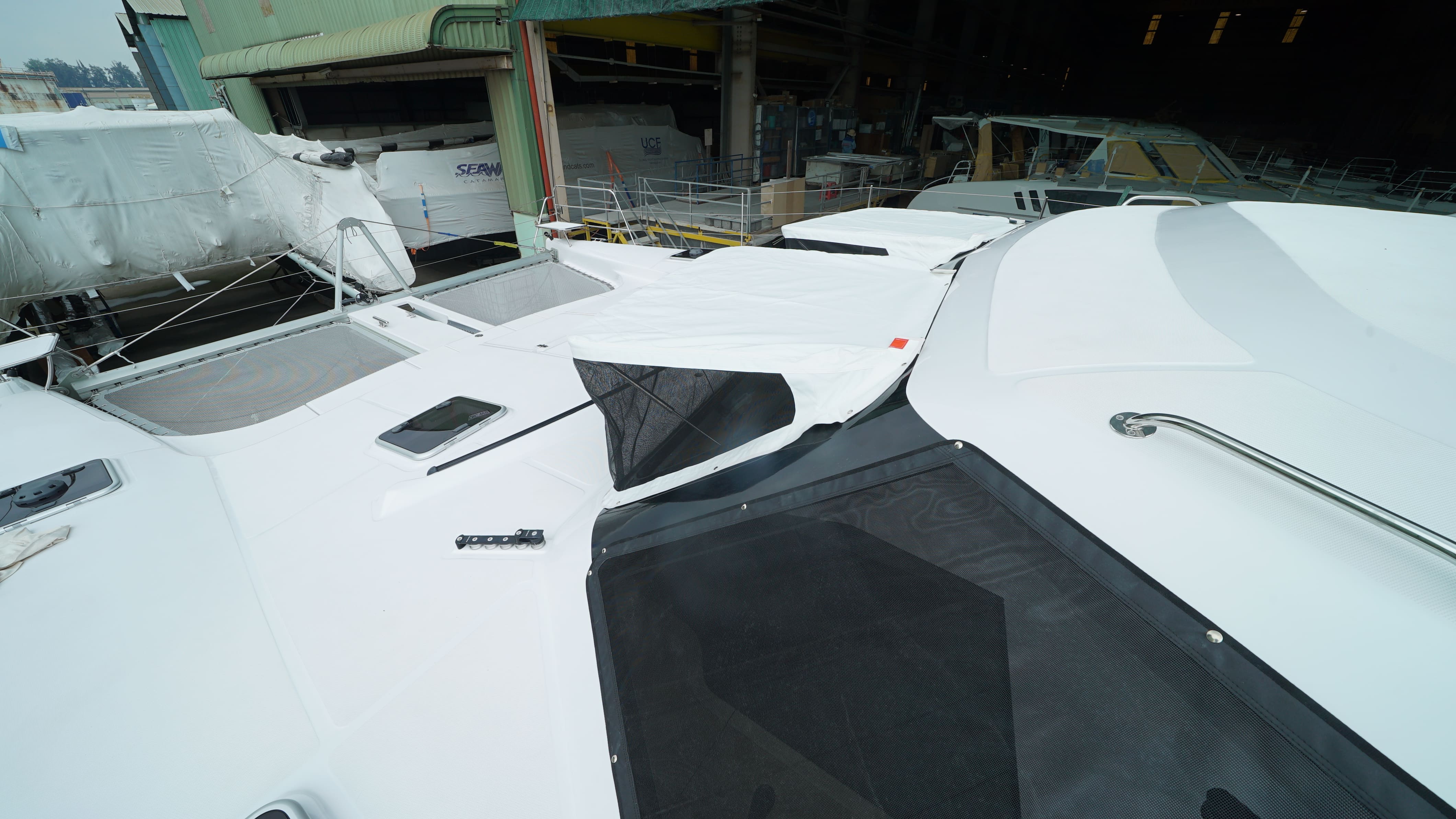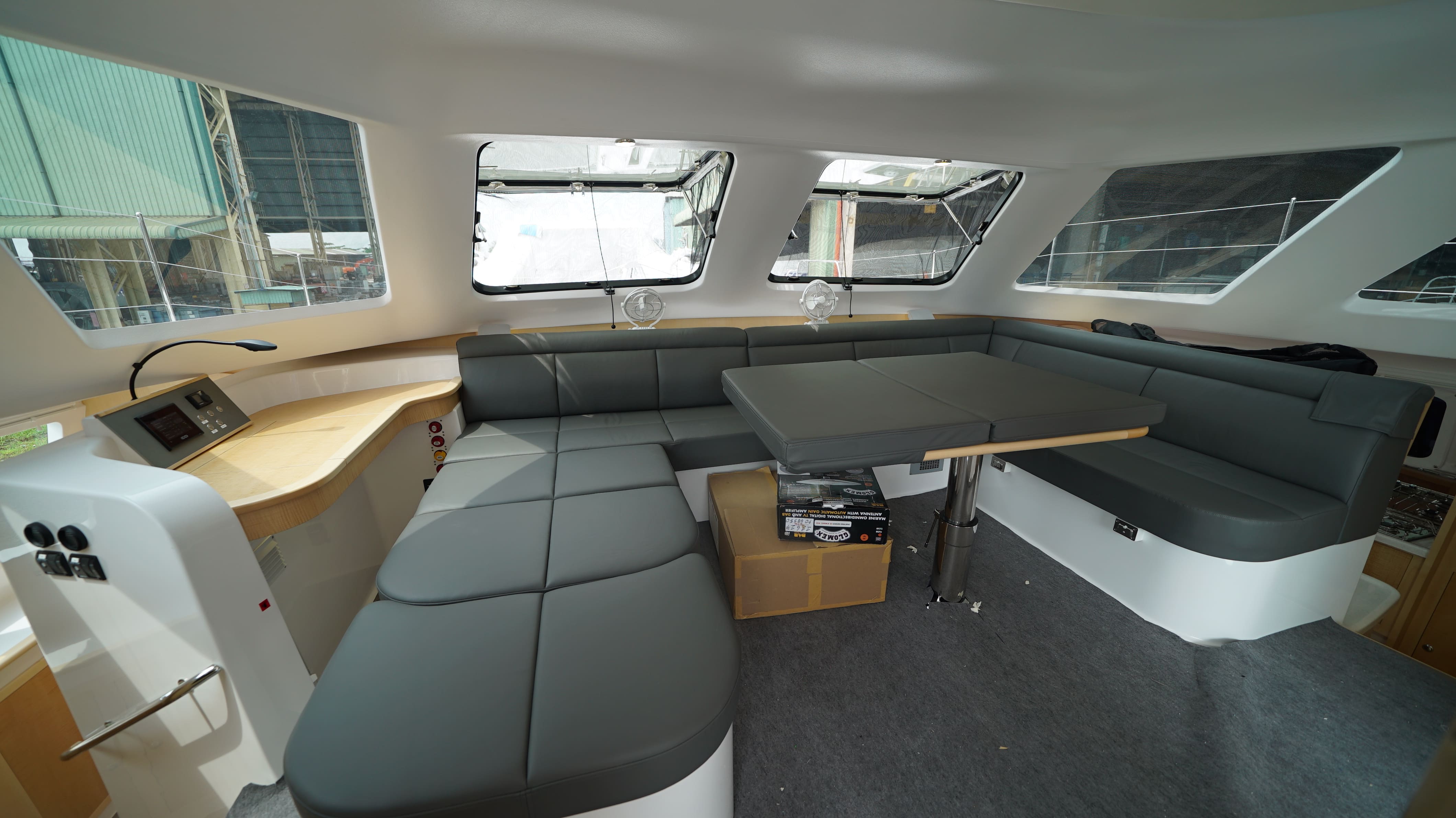 Recently, several parts of the boat have been completed, including antifouling paint, forward bunk headliners, stanchions and lifelines, windows, saloon flooring, trampoline, heating system, steering system, freezer and benchtop, as well as deck hatches. Additional features such as the BBQ, solar panels, and fridge have also been installed.