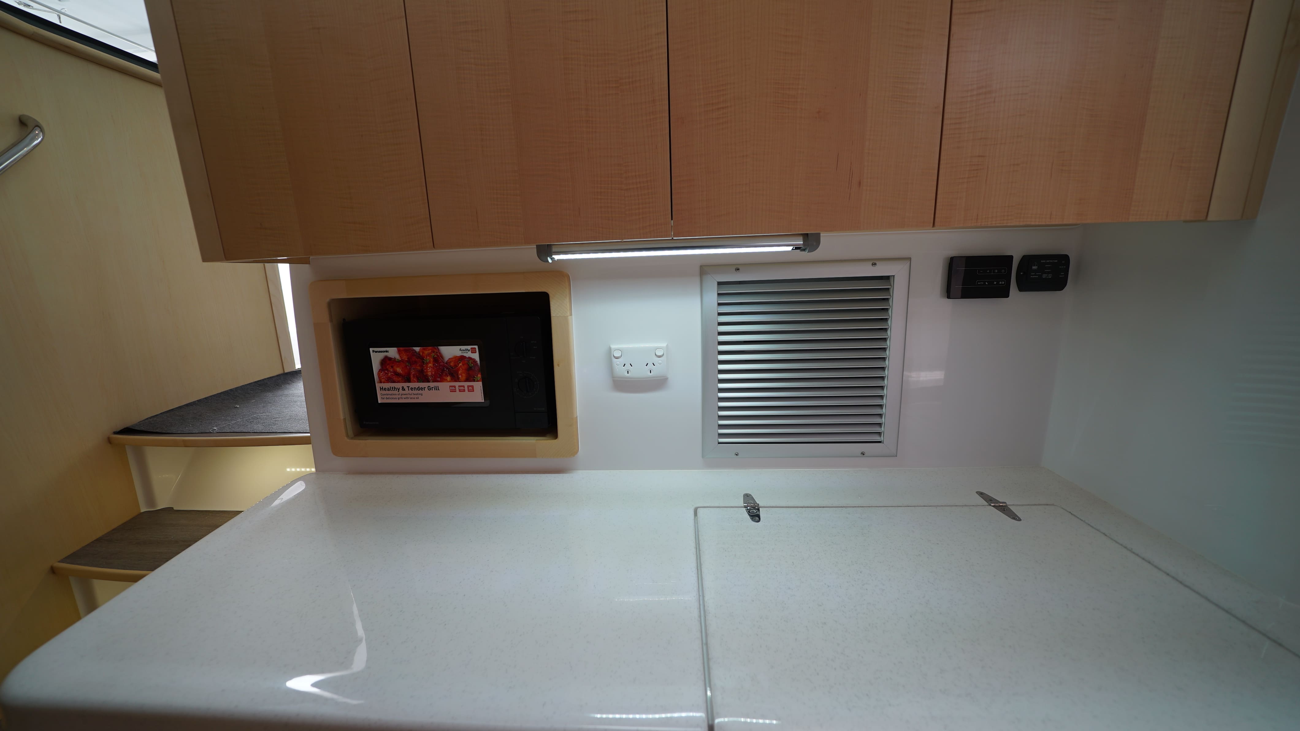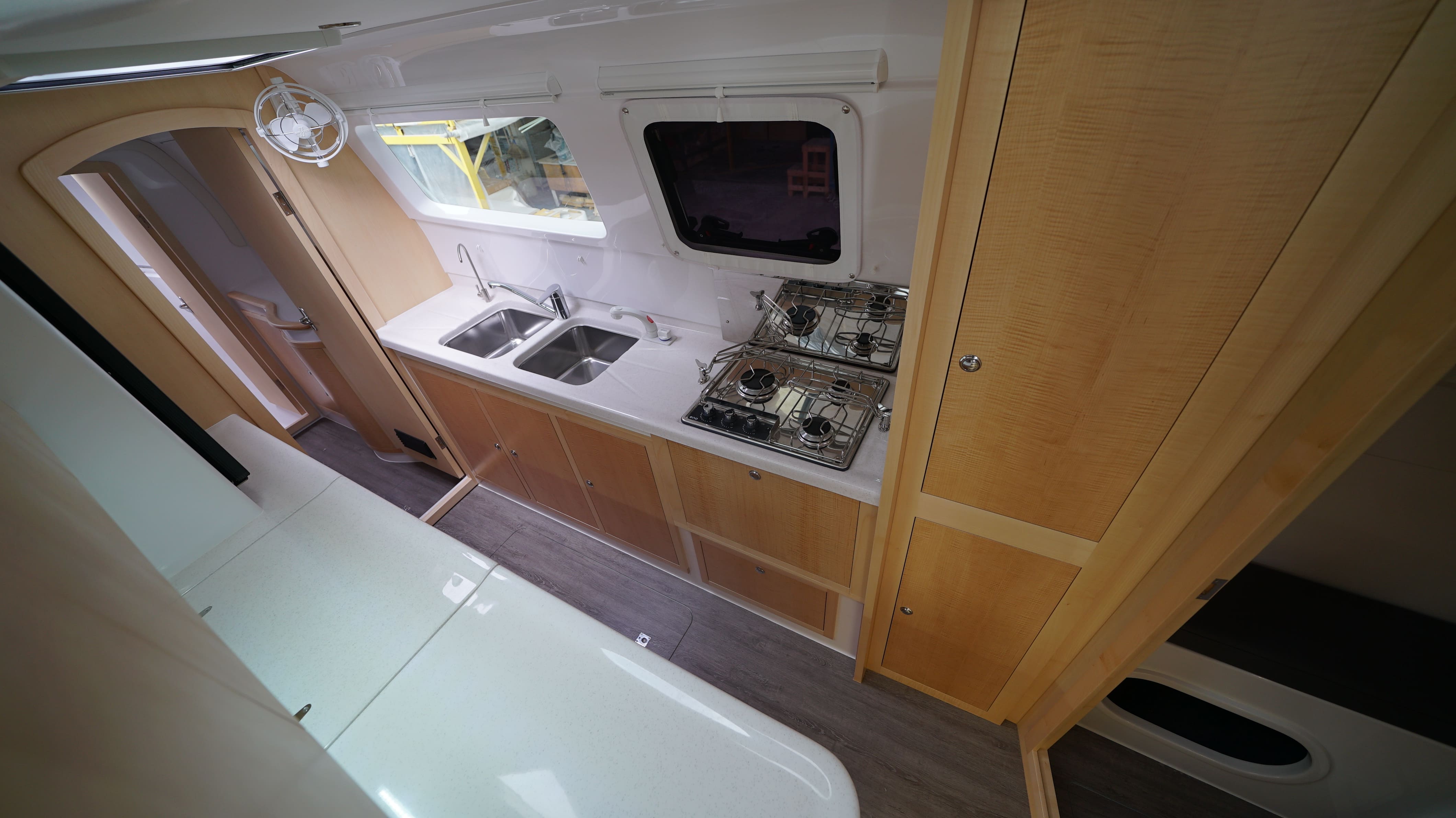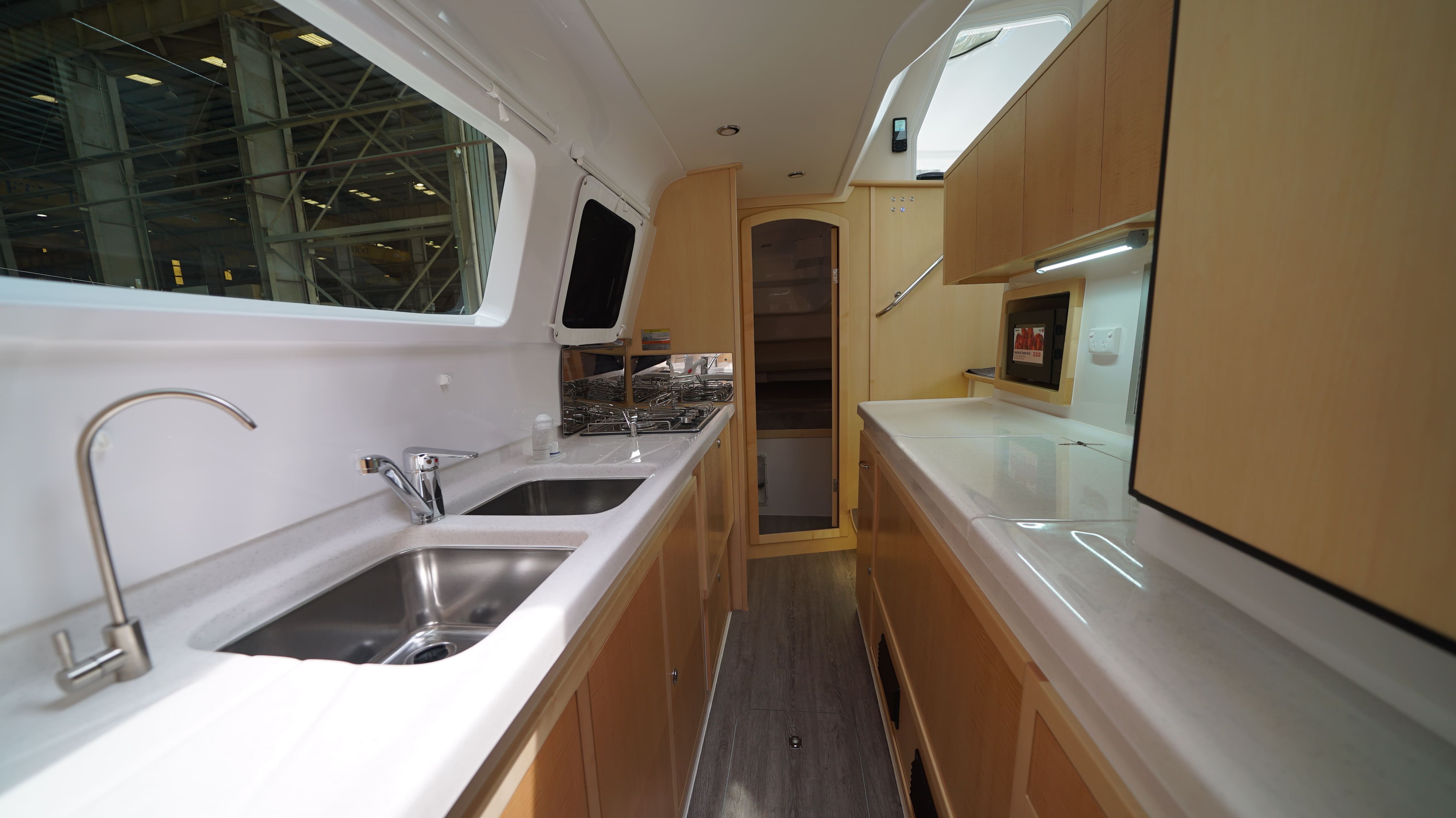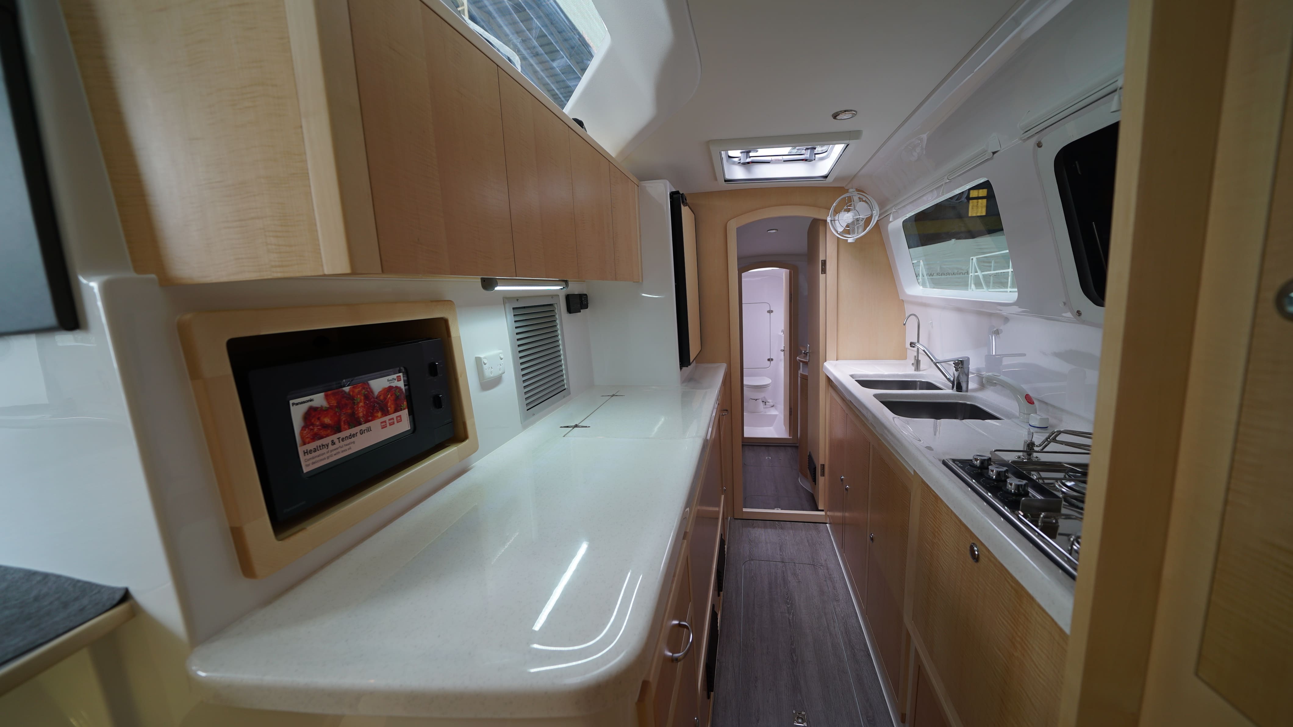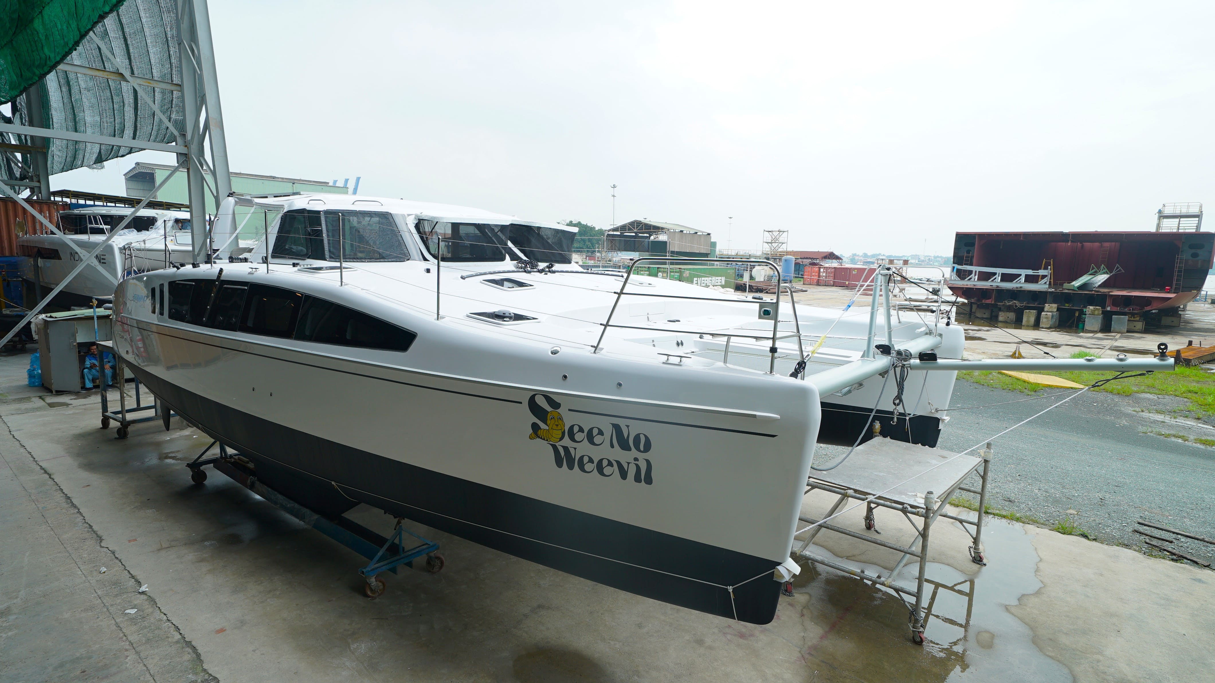 Recently, several parts of the boat have been completed, including antifouling paint, forward bunk headliners, stanchions and lifelines, windows, saloon flooring, trampoline, heating system, steering system, freezer and benchtop, as well as deck hatches. Additional features such as the BBQ, solar panels, and fridge have also been installed.