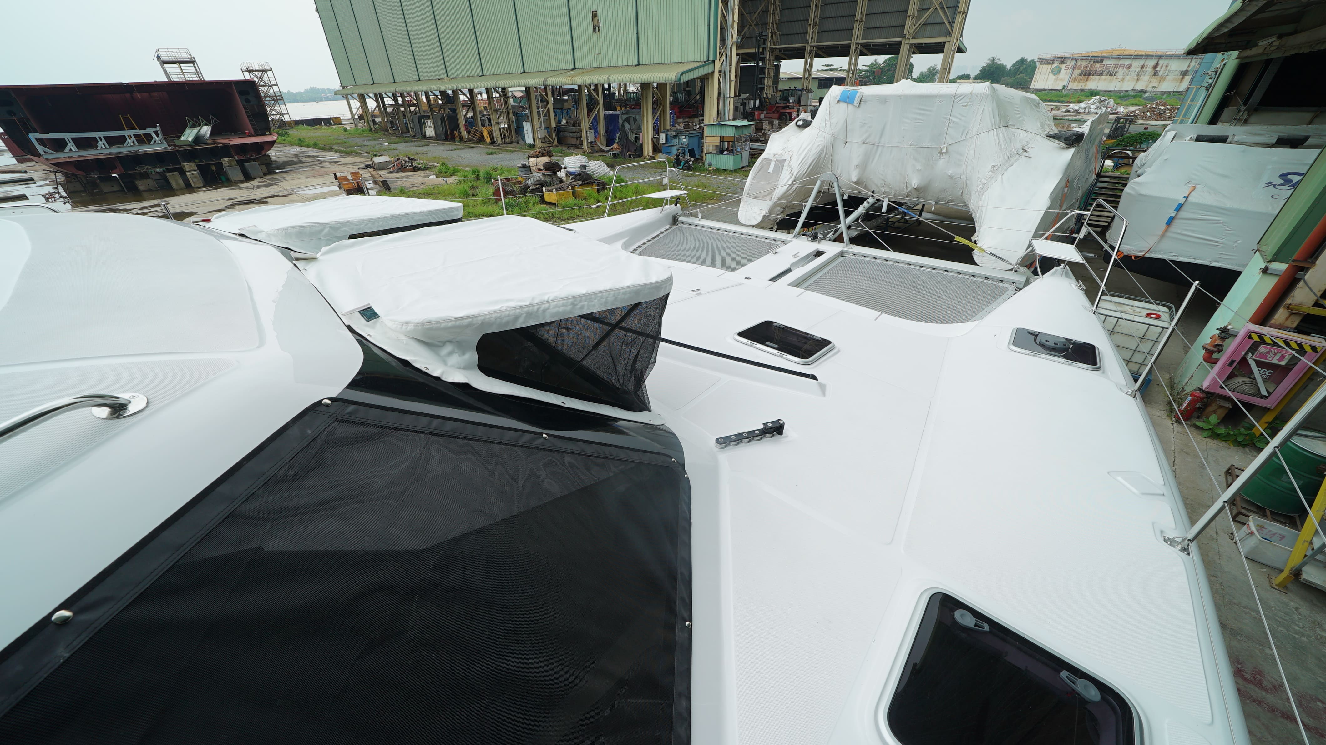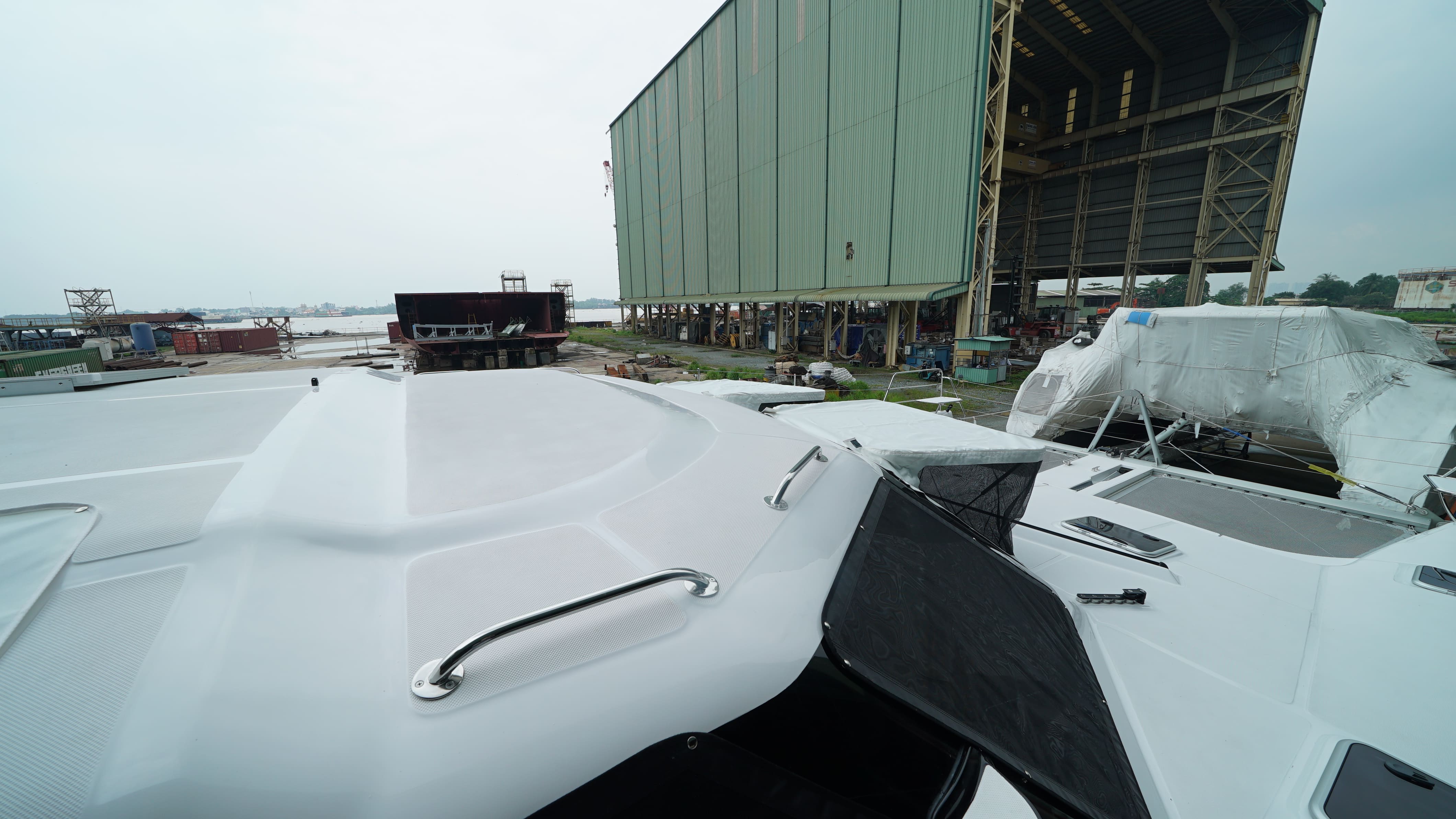 Currently, we are working on hull and deck gelcoat preparation. After both the deck and hull are completed, they will be moved to another step for deck joining.