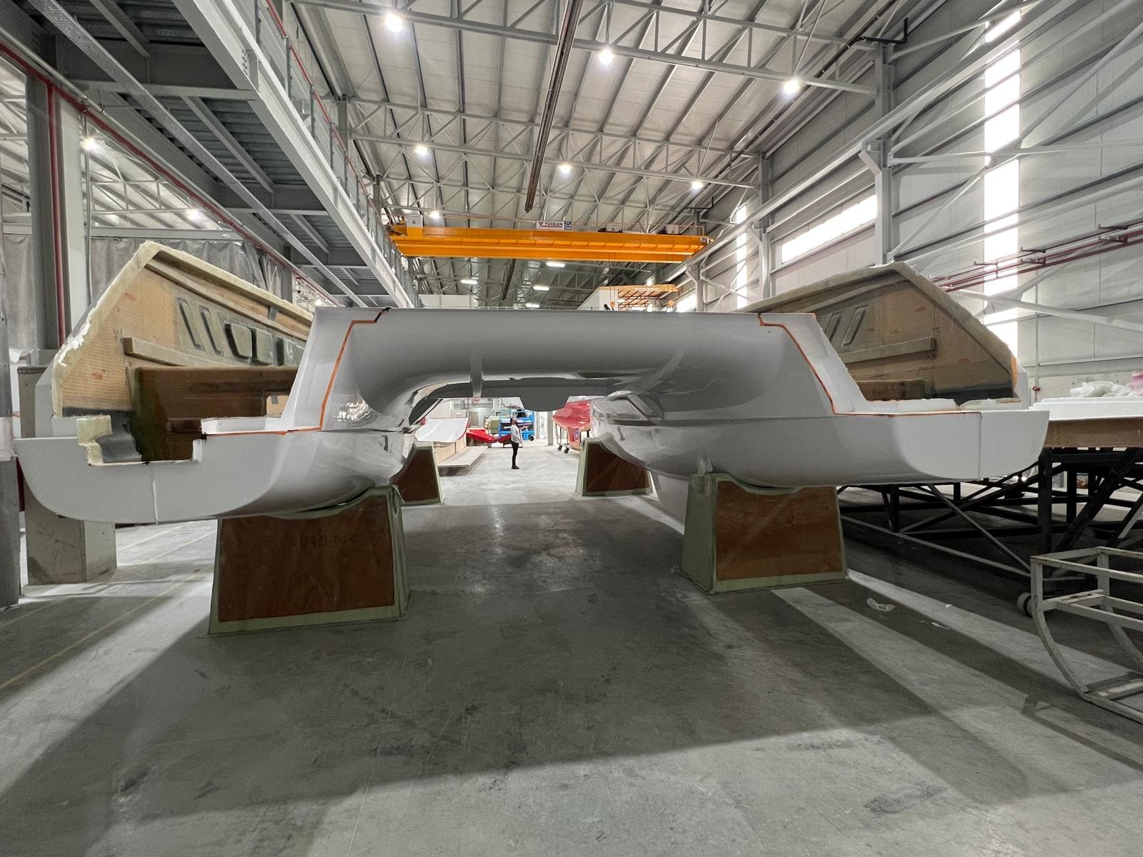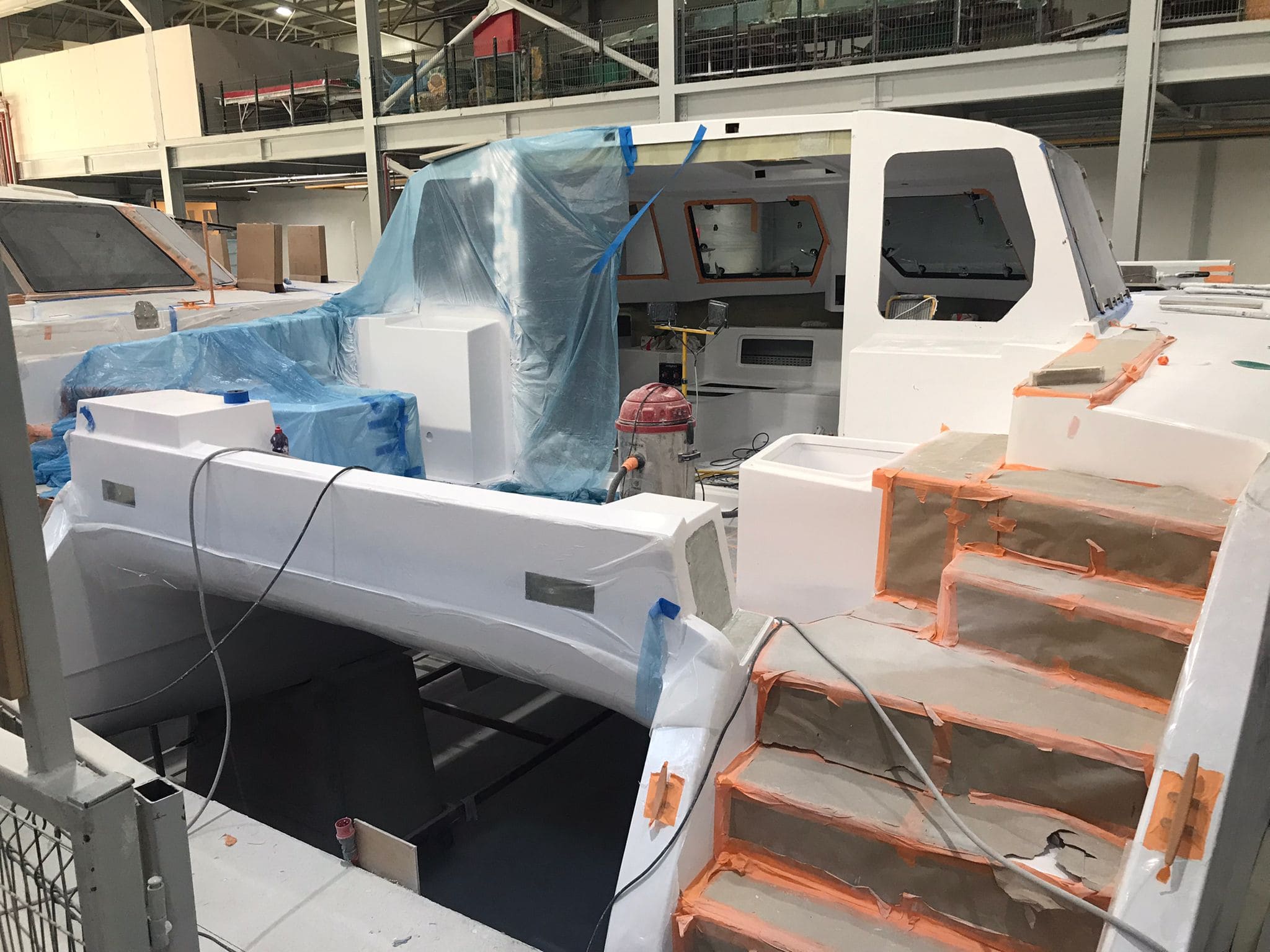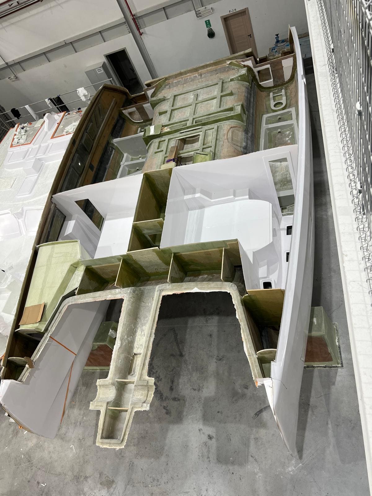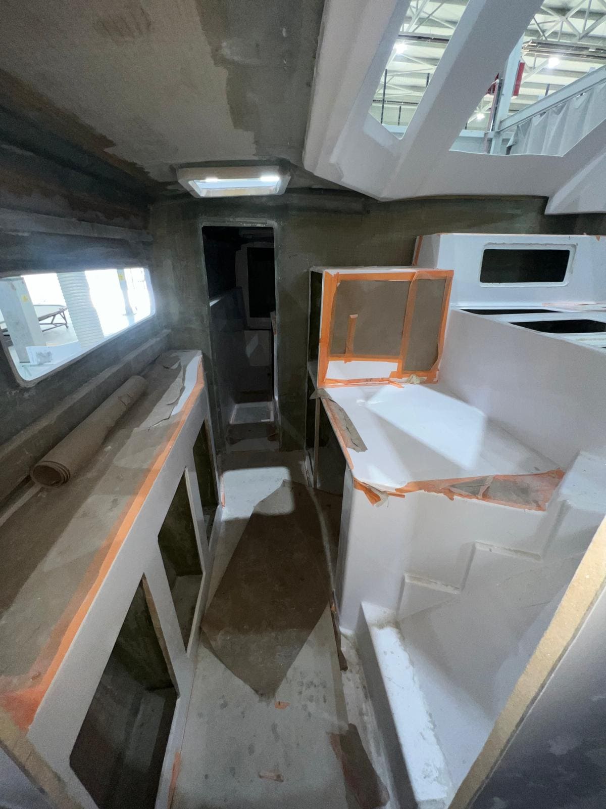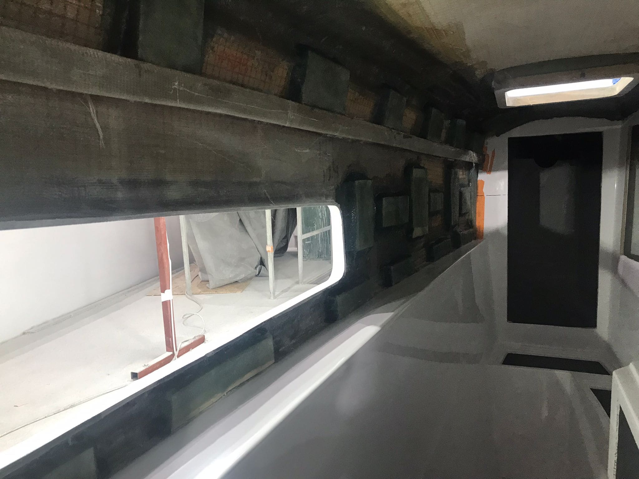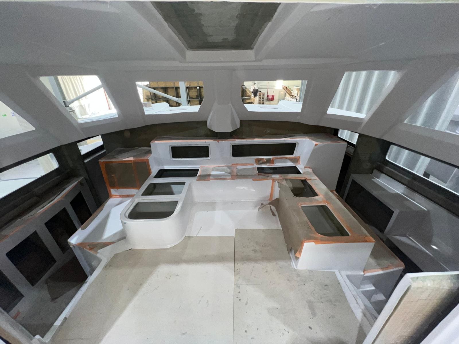 The boat has recently been equipped with some critical parts to get closer to Detailing & QA stage. At this point, we have completed the hull–deck interior laminations as well as the exterior and interior gelcoat repairs. The windows, fuel system, and bilge system have also been installed.