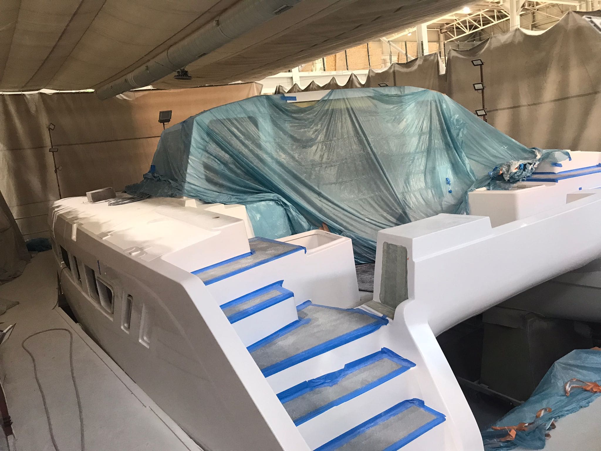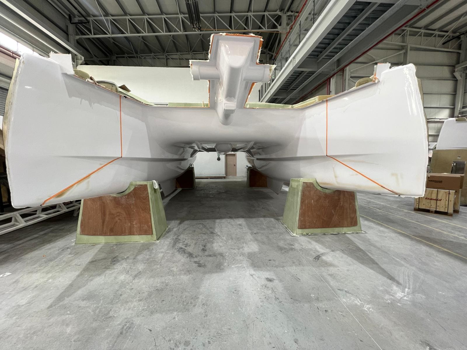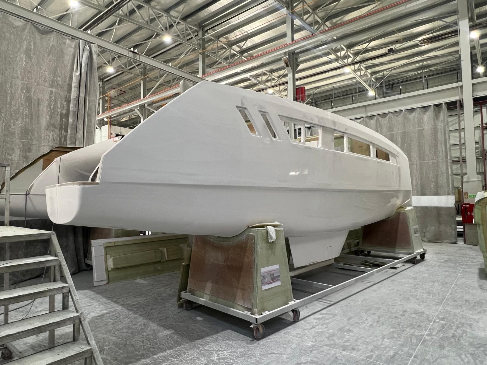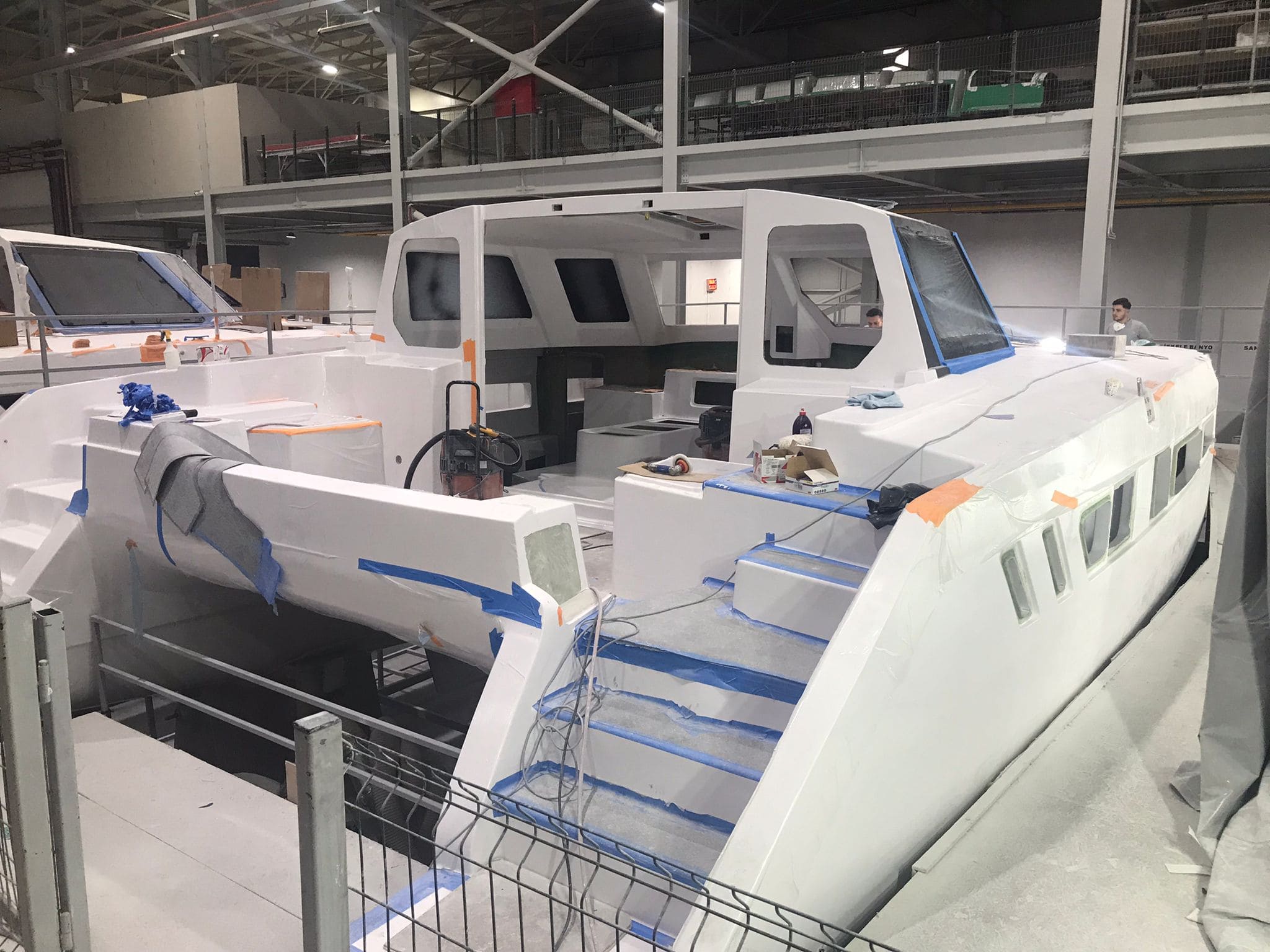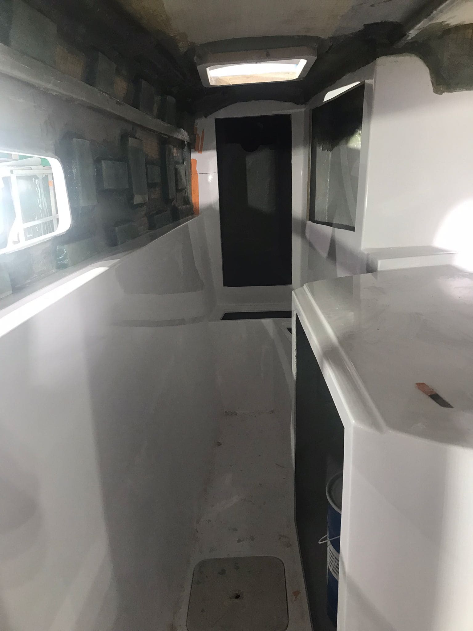 The boat has recently been equipped with some critical parts to get closer to Detailing & QA stage. At this point, we have completed the hull–deck interior laminations as well as the exterior and interior gelcoat repairs. The windows, fuel system, and bilge system have also been installed.