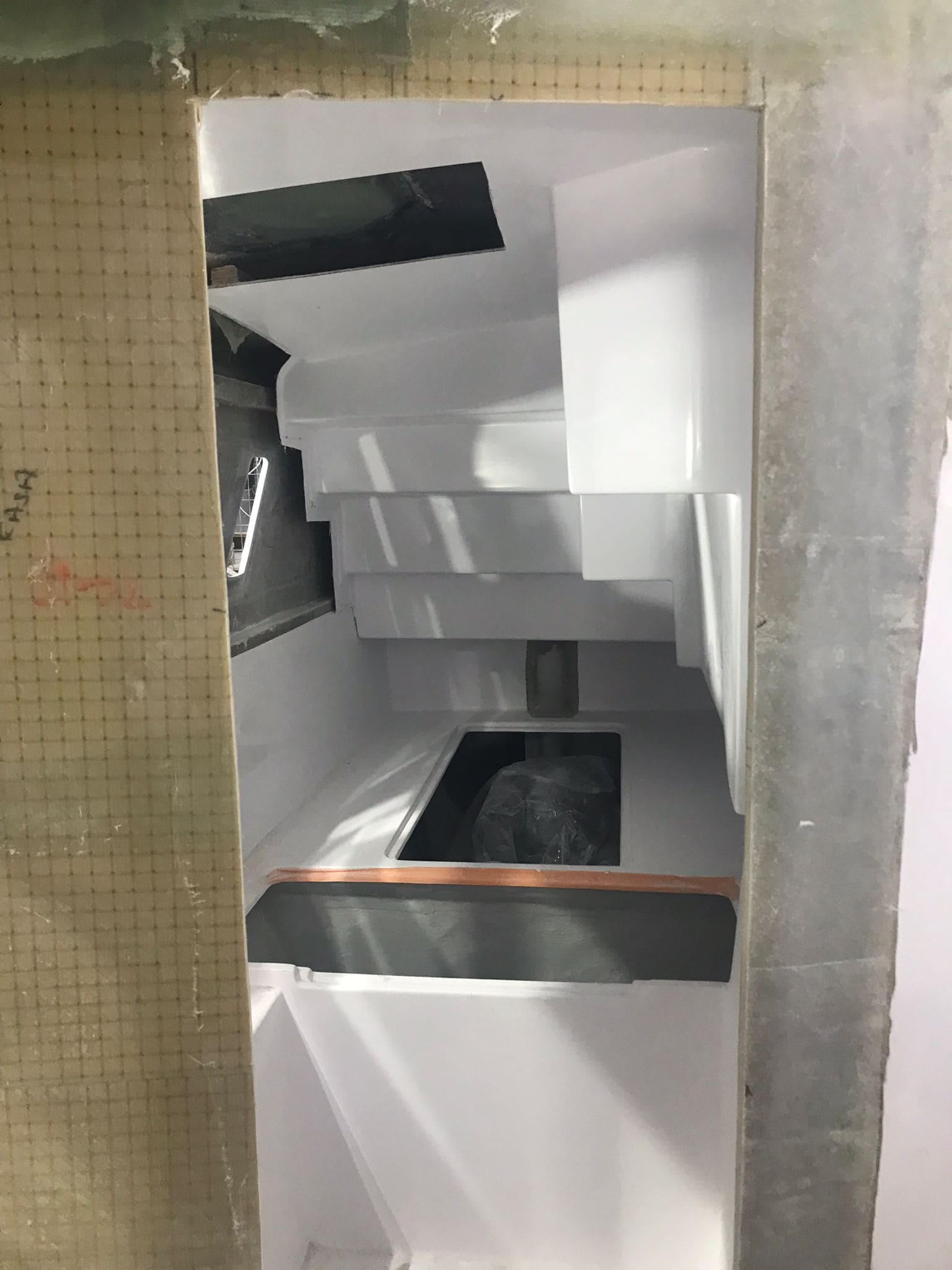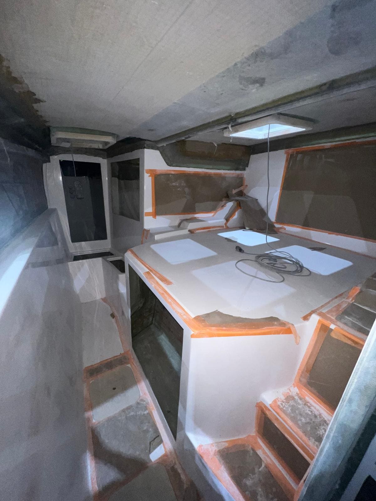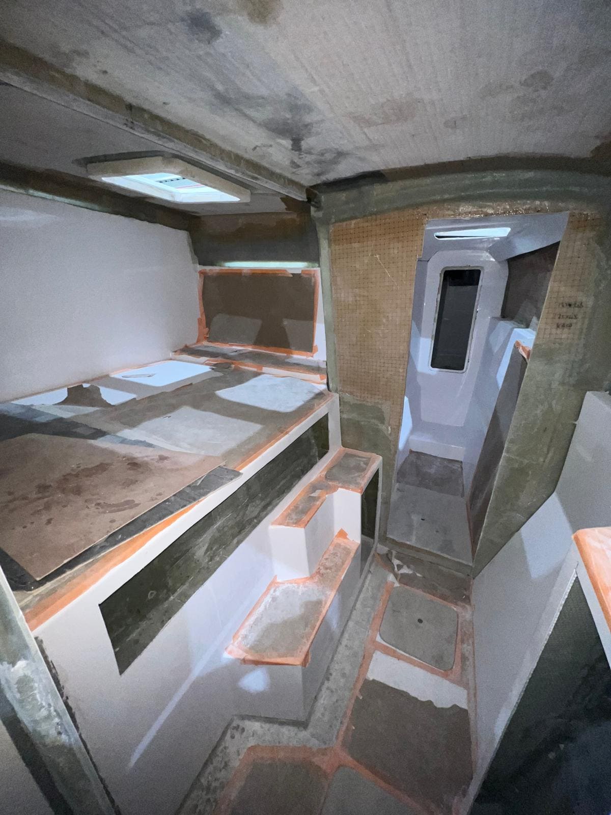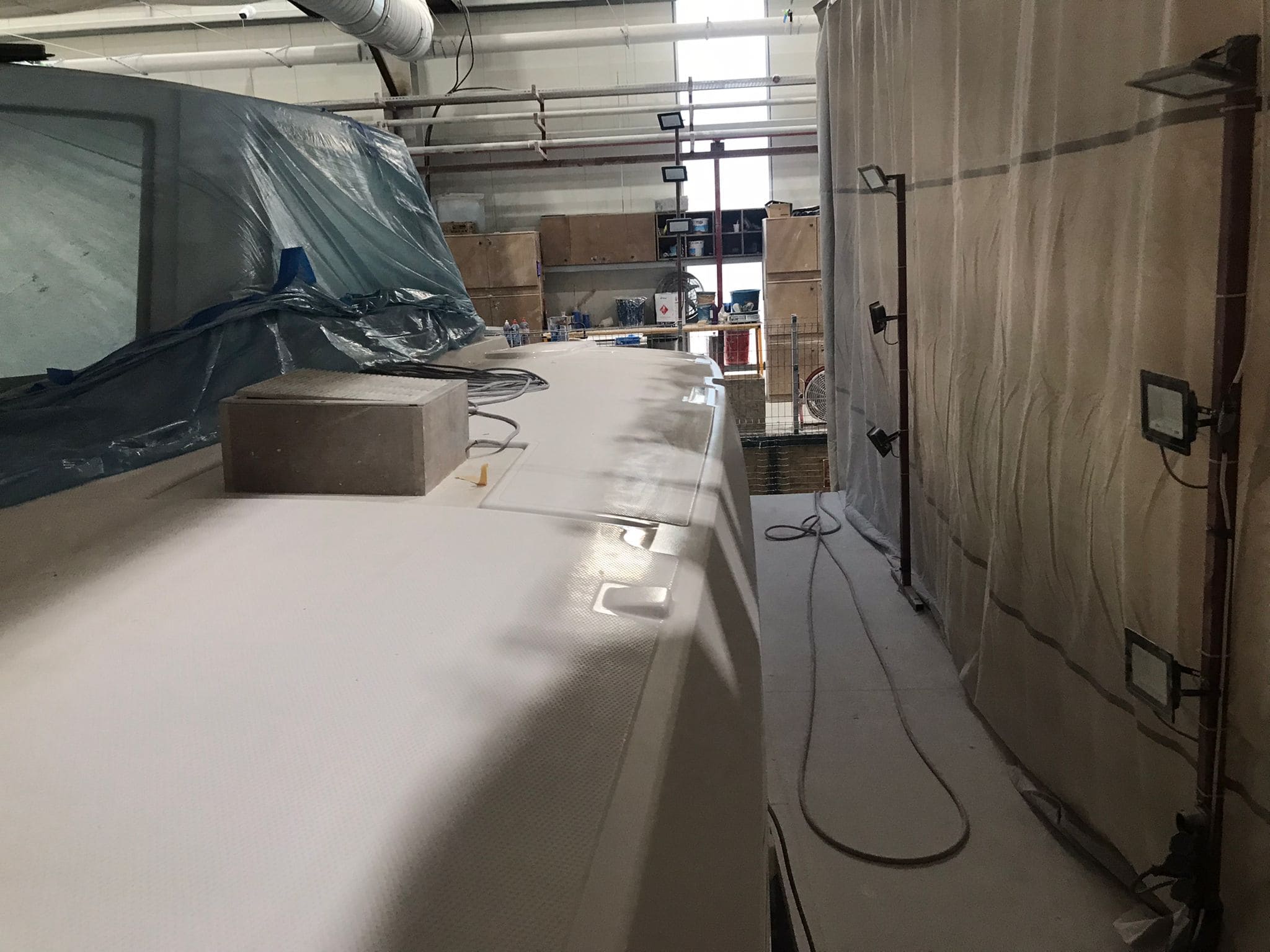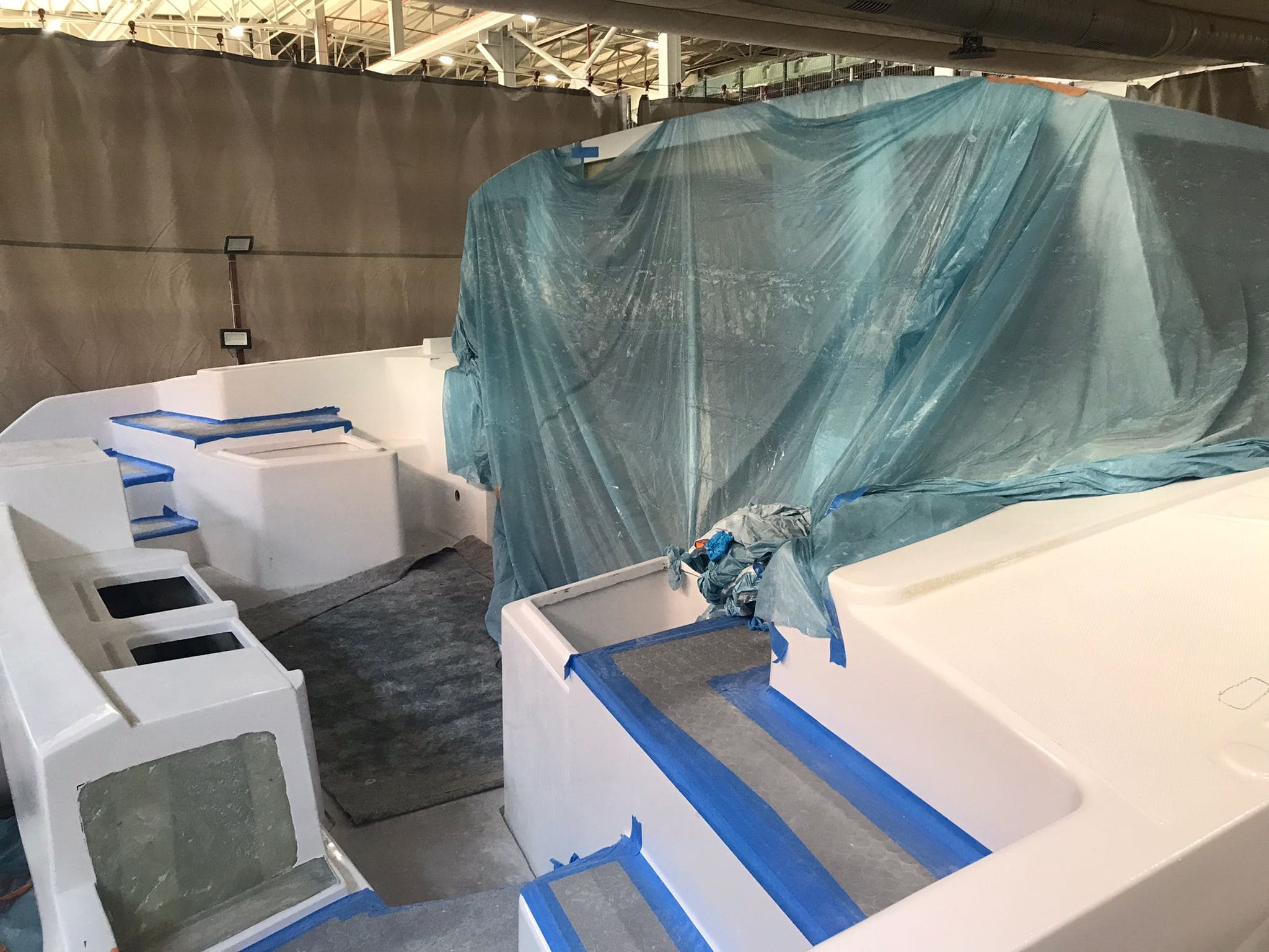 The boat has recently been equipped with some critical parts to get closer to Detailing & QA stage. At this point, we have completed the hull–deck interior laminations as well as the exterior and interior gelcoat repairs. The windows, fuel system, and bilge system have also been installed.