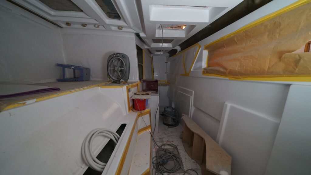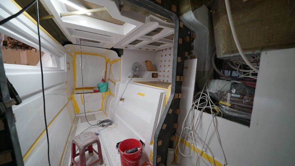 We recently complete the hull-deck joining, engines & saildrive installation.