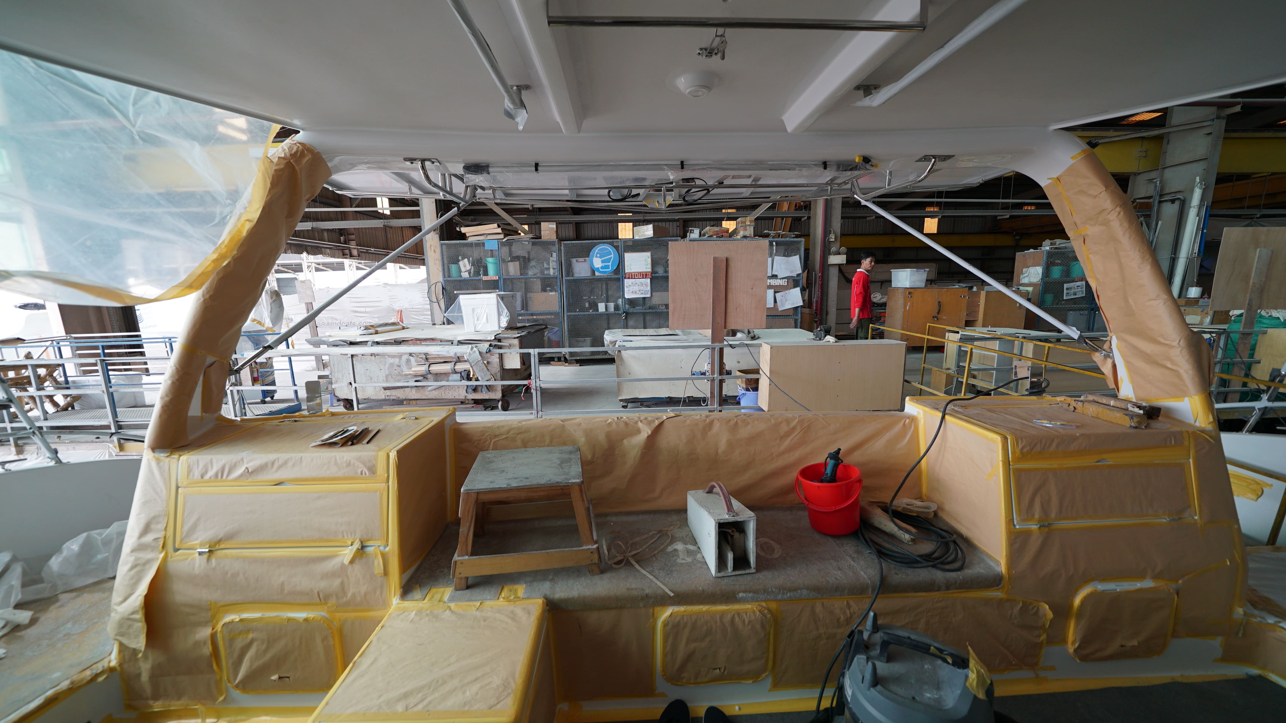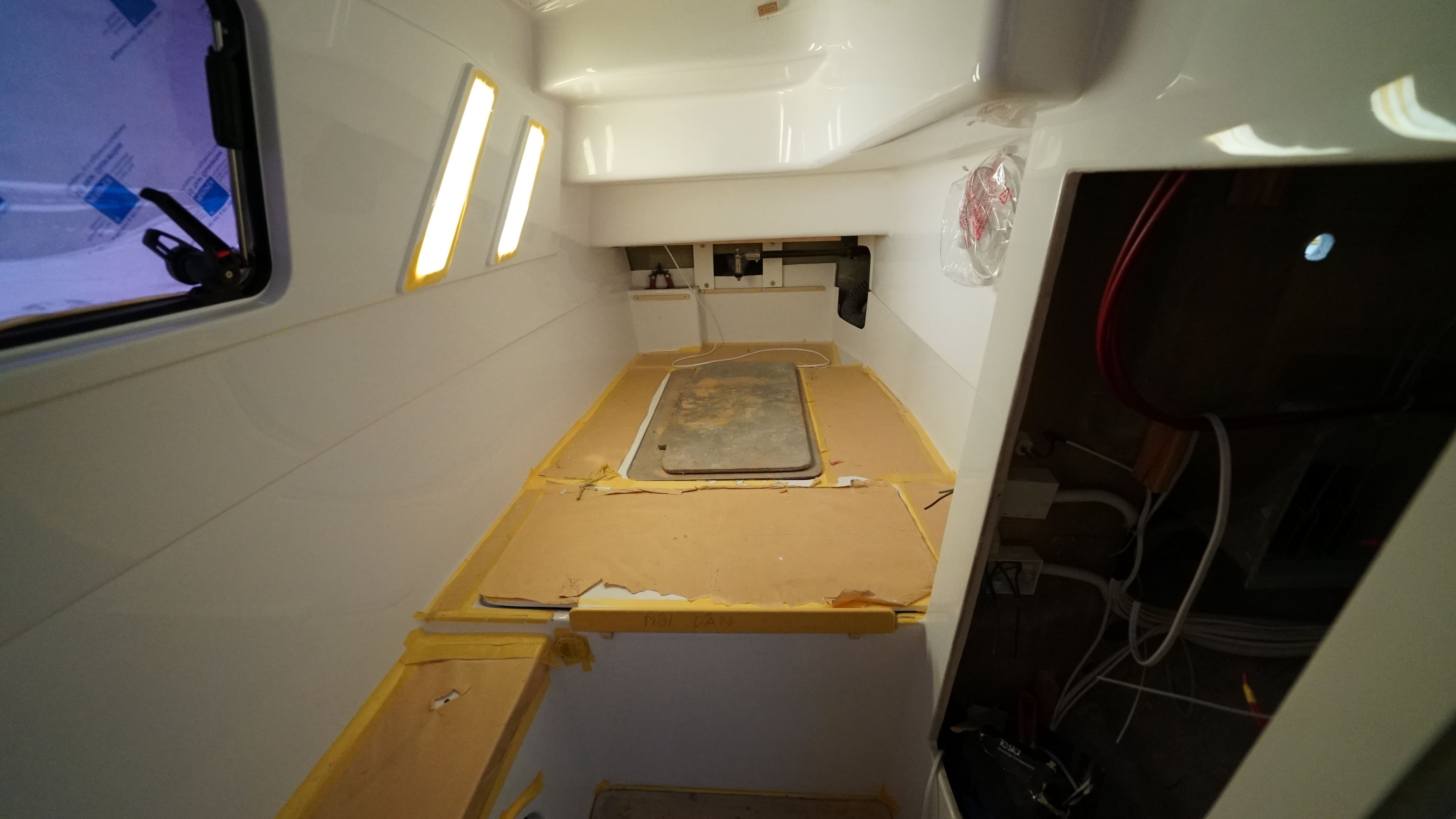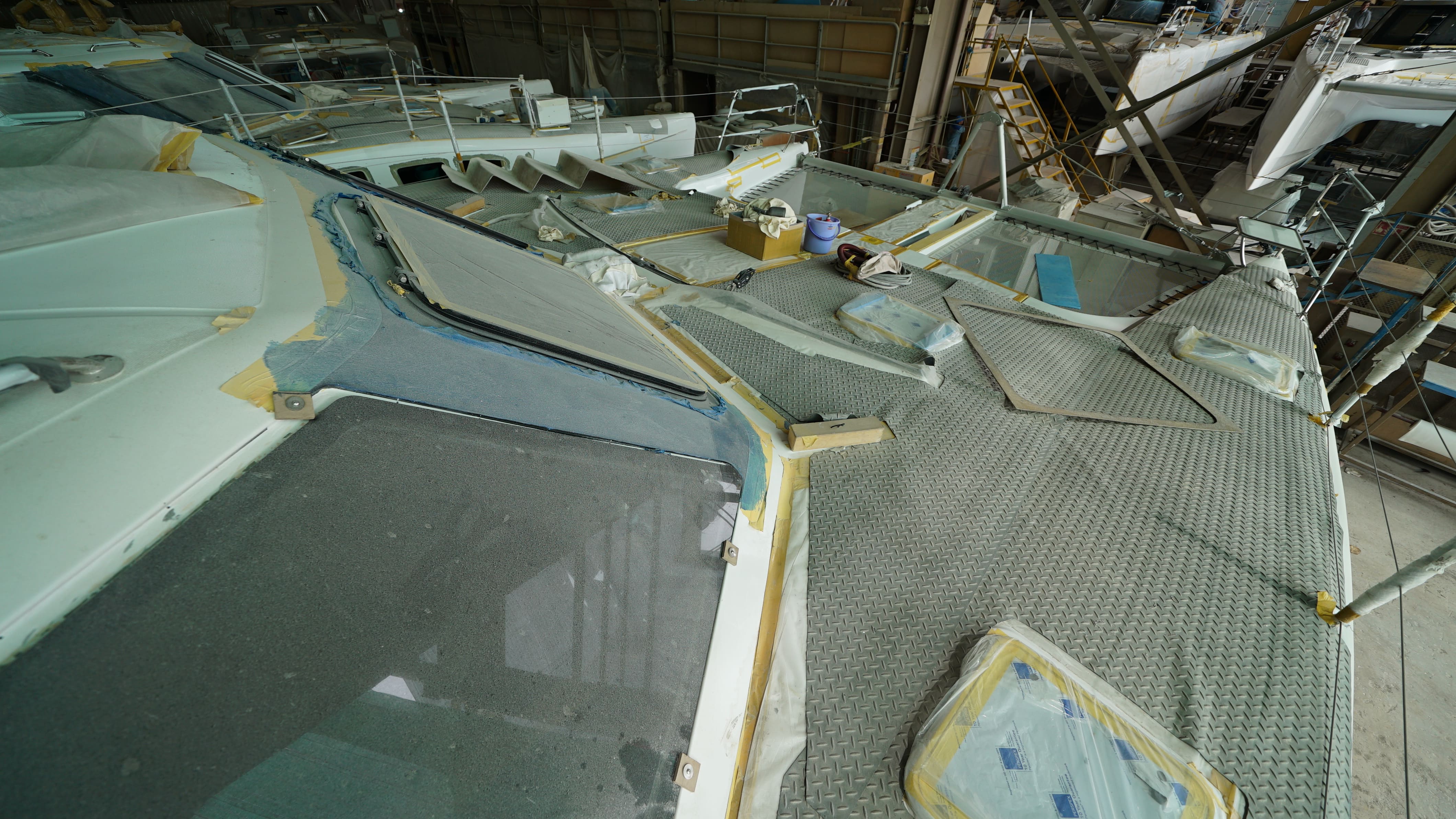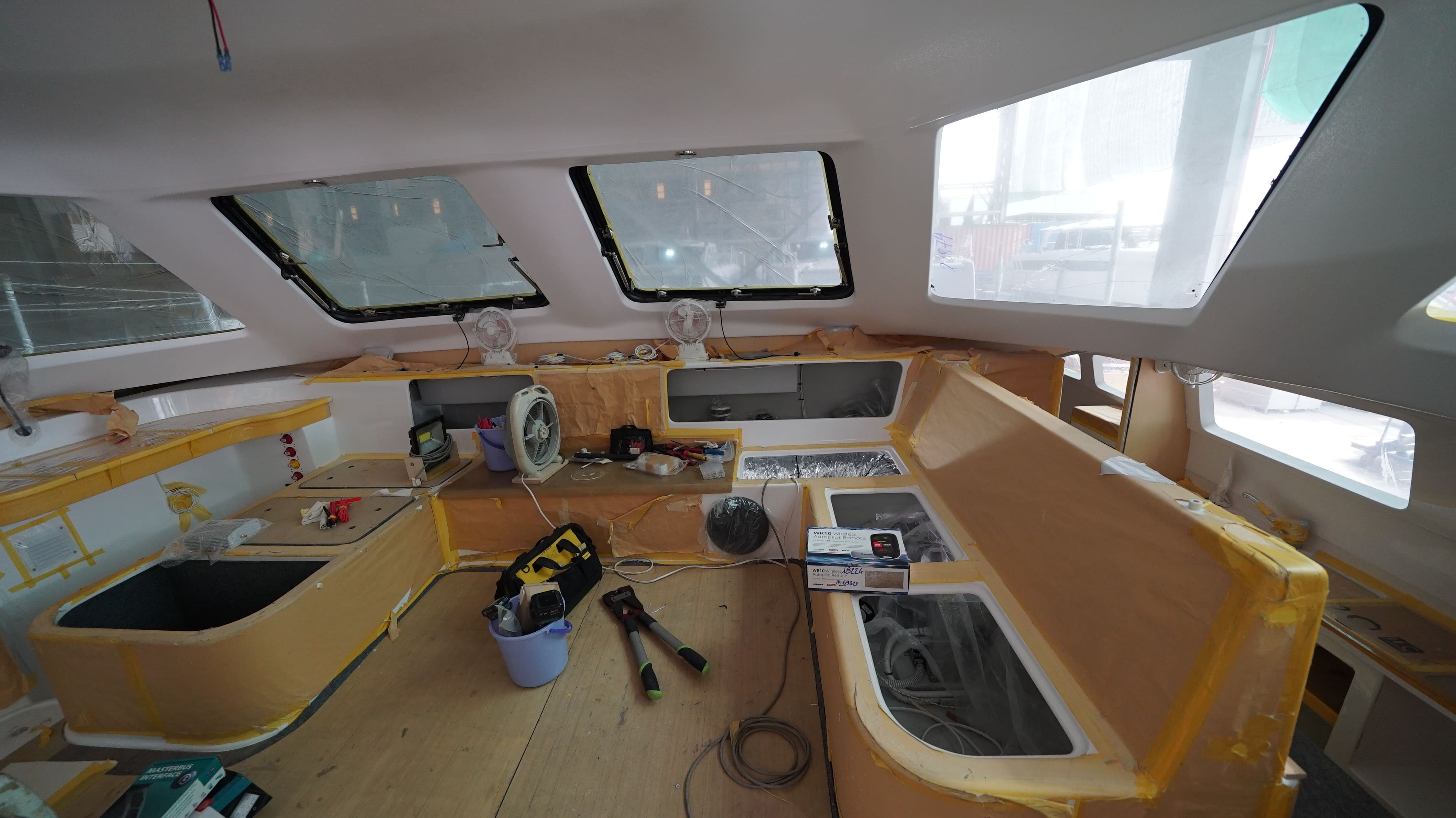At this point, some key components have recently been completed, including stanchion, A-frame, forward beam, anchor box, trampoline, windows and hatches.