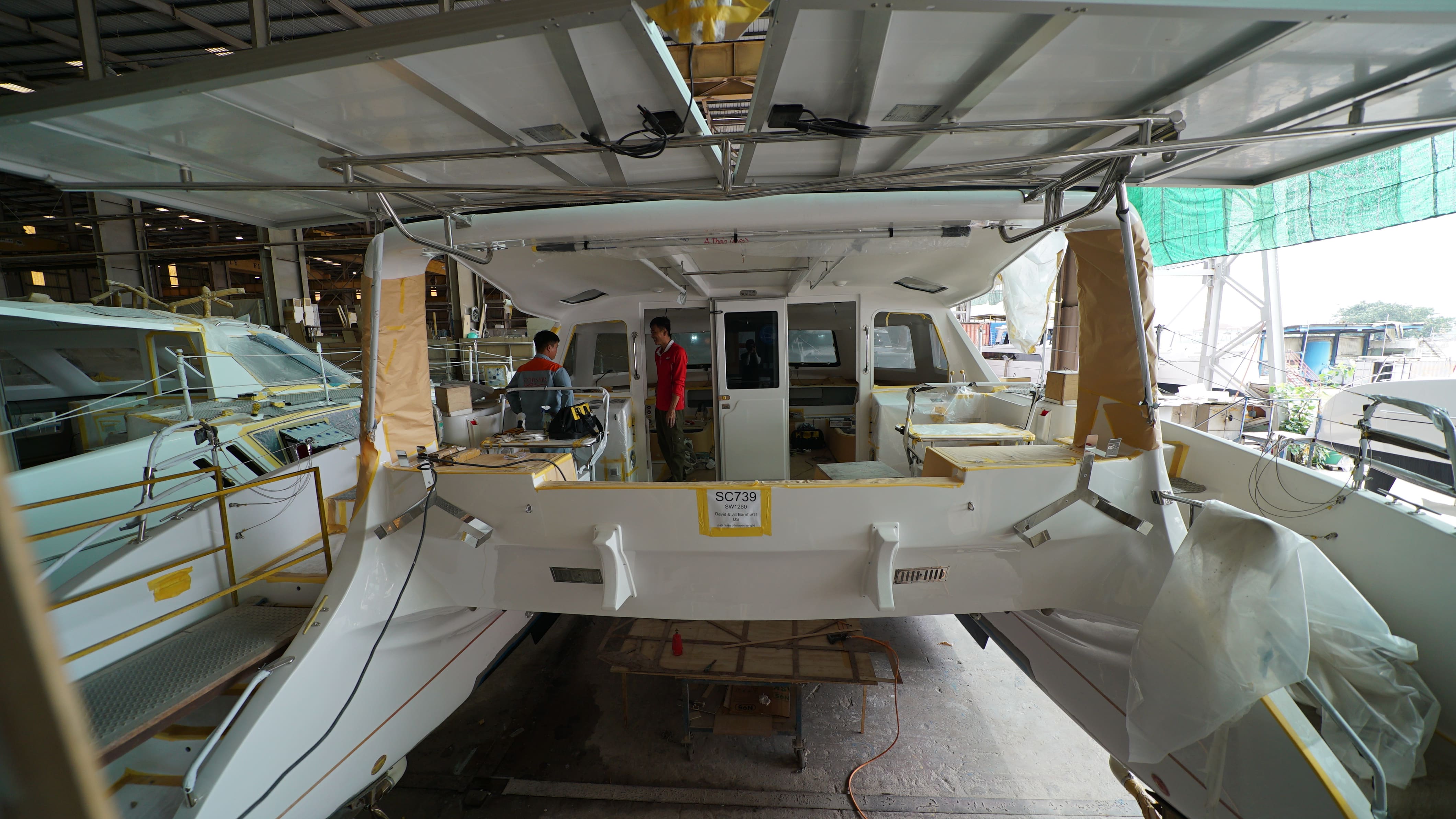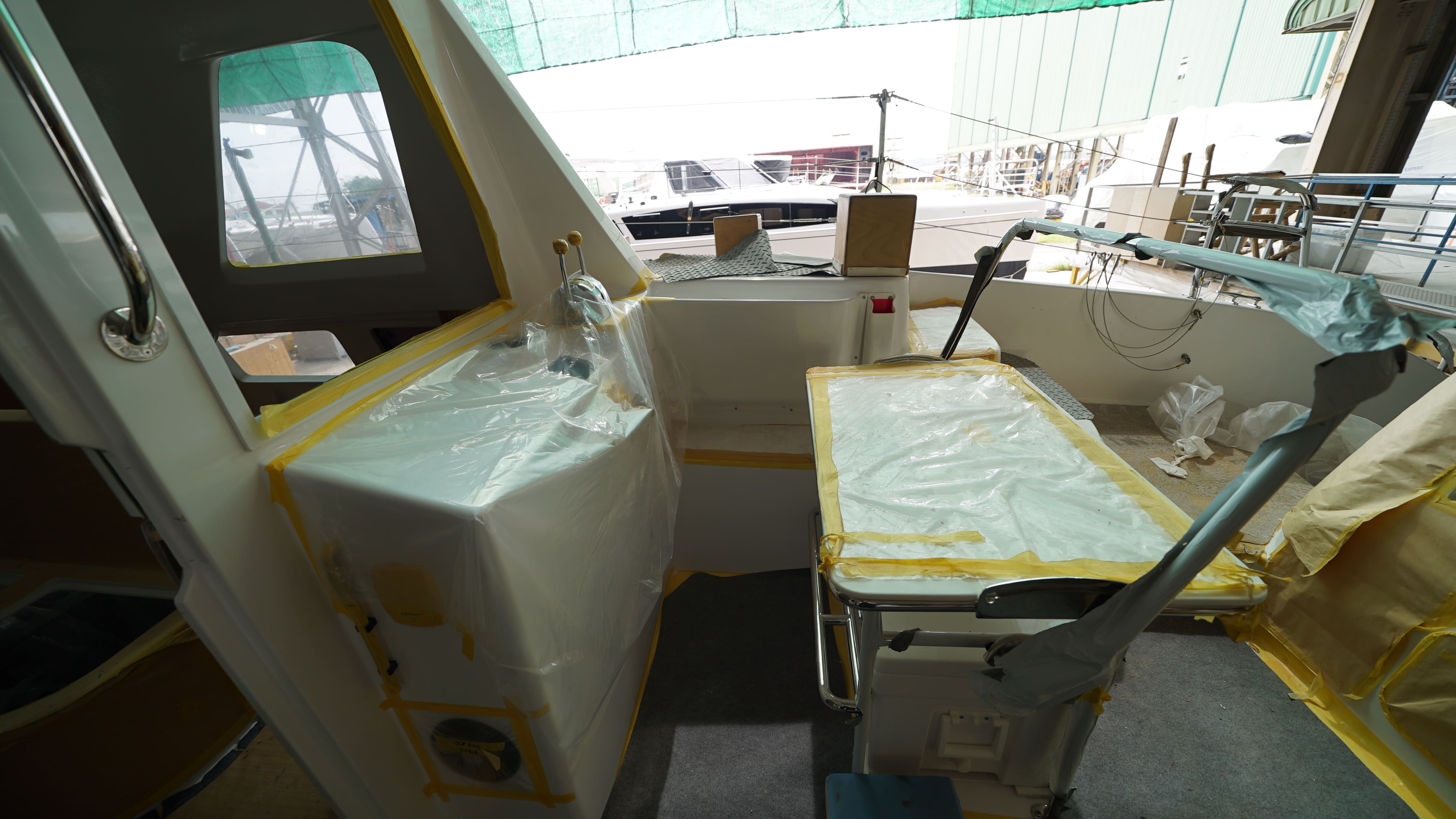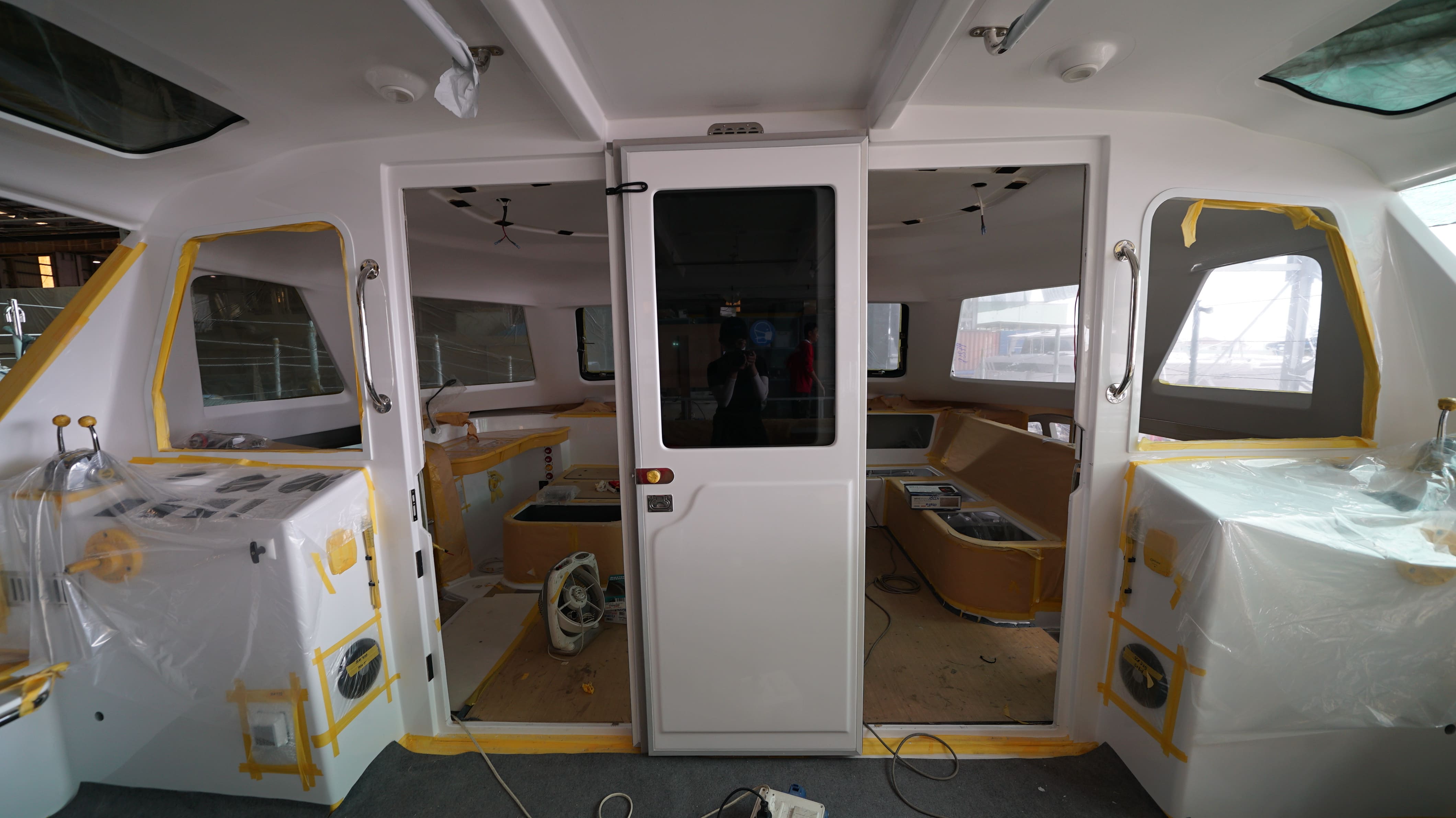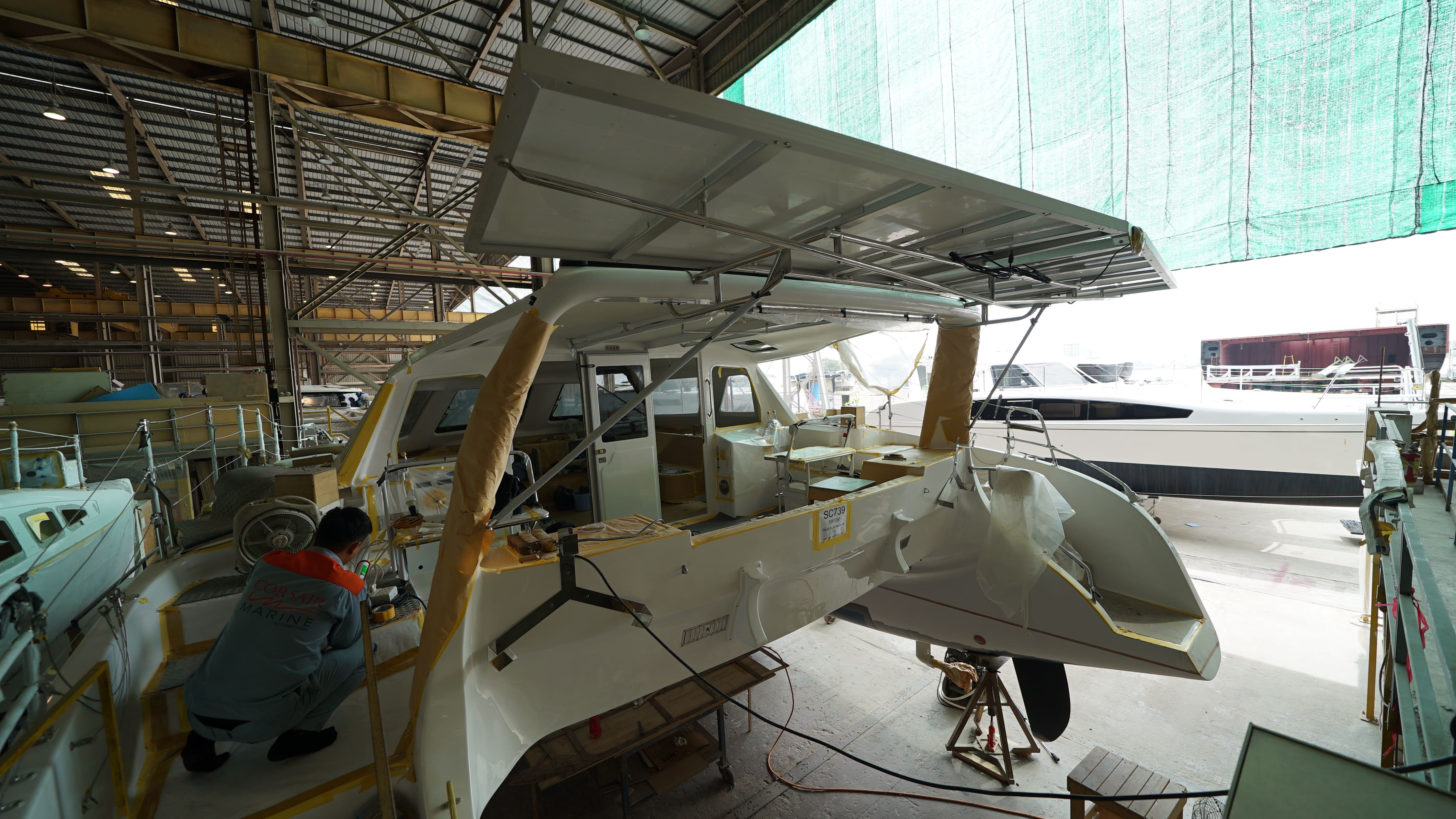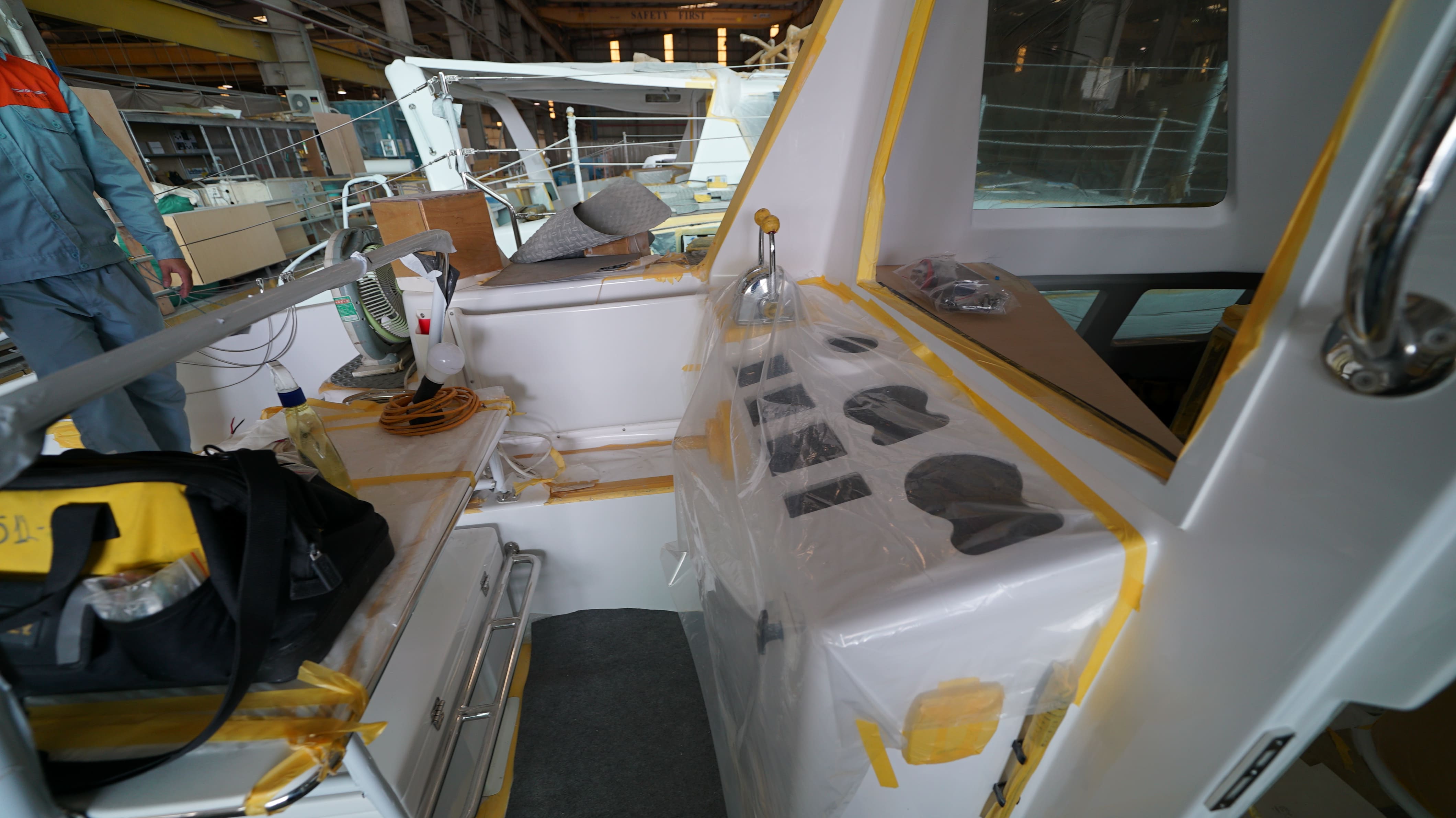 At this point, some key components have recently been completed, including stanchion, A-frame, forward beam, anchor box, trampoline, windows and hatches.