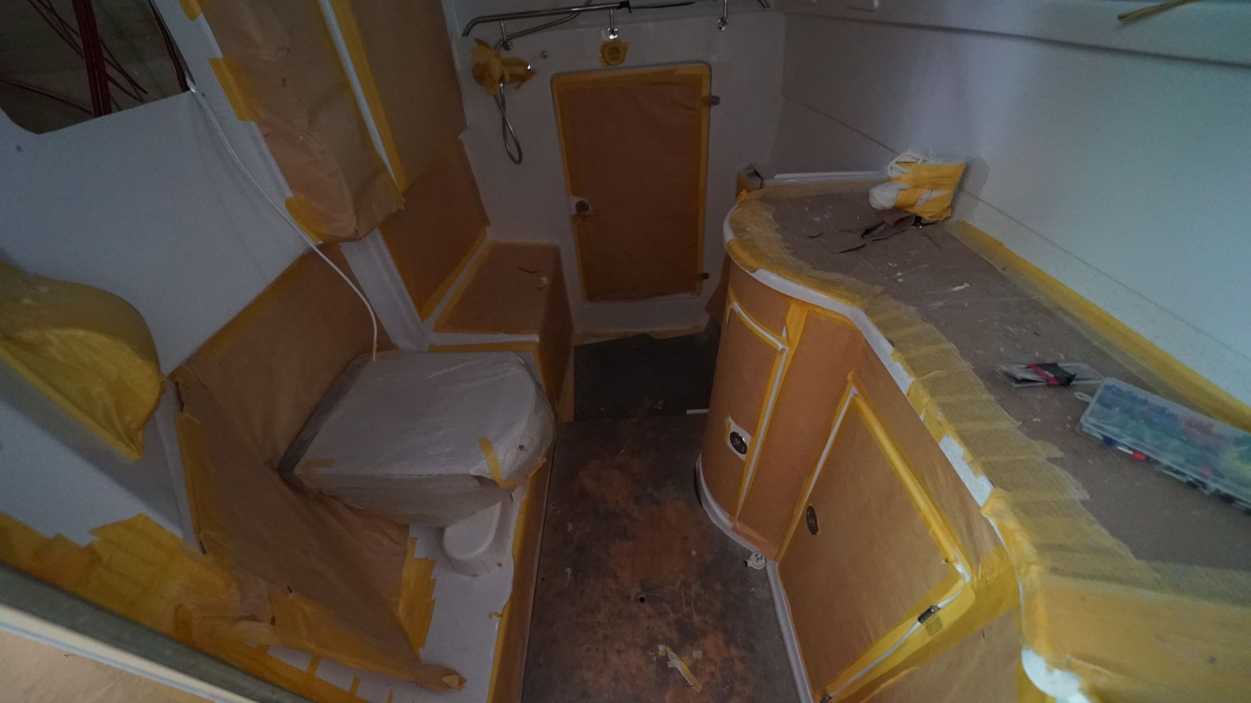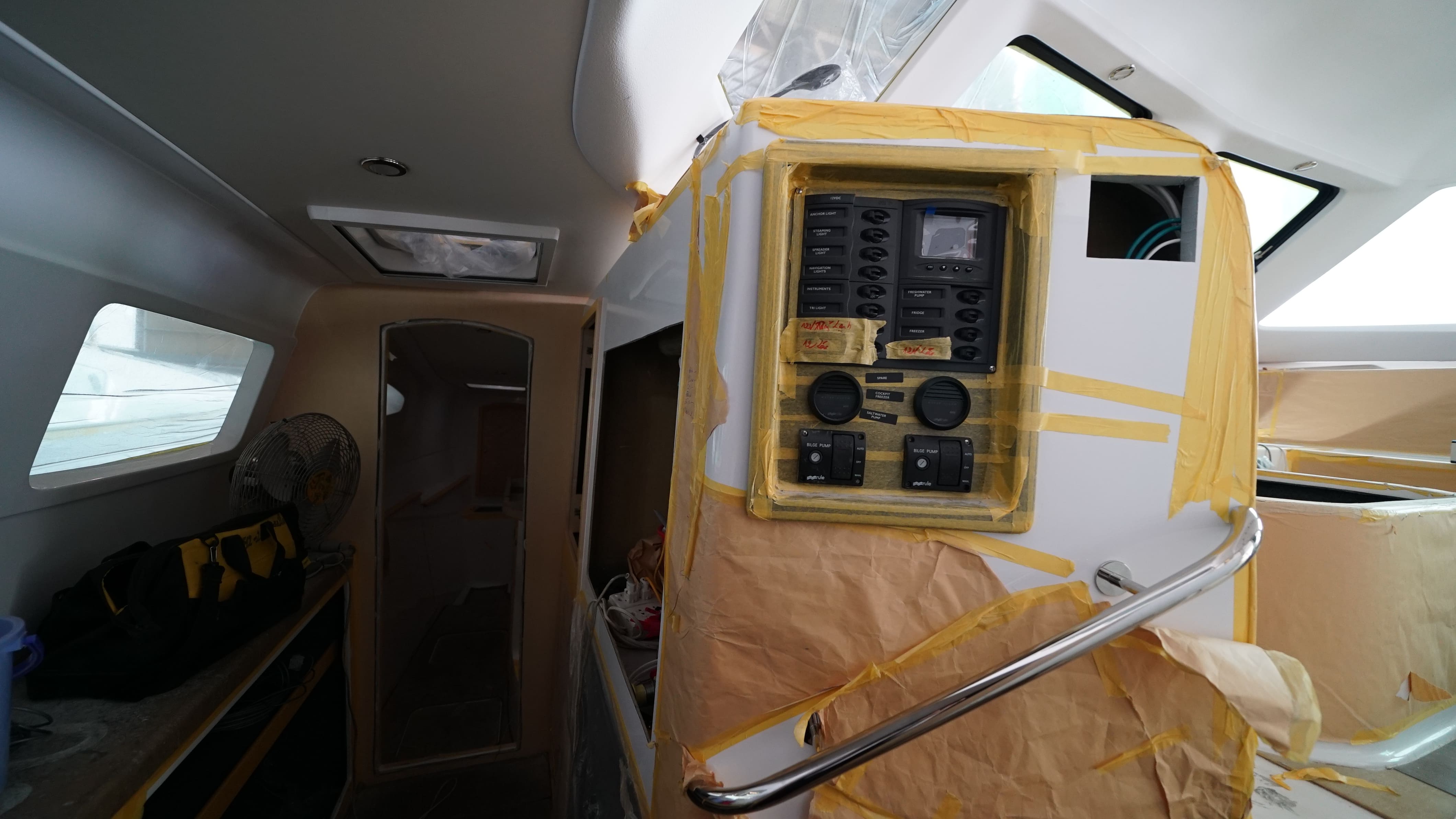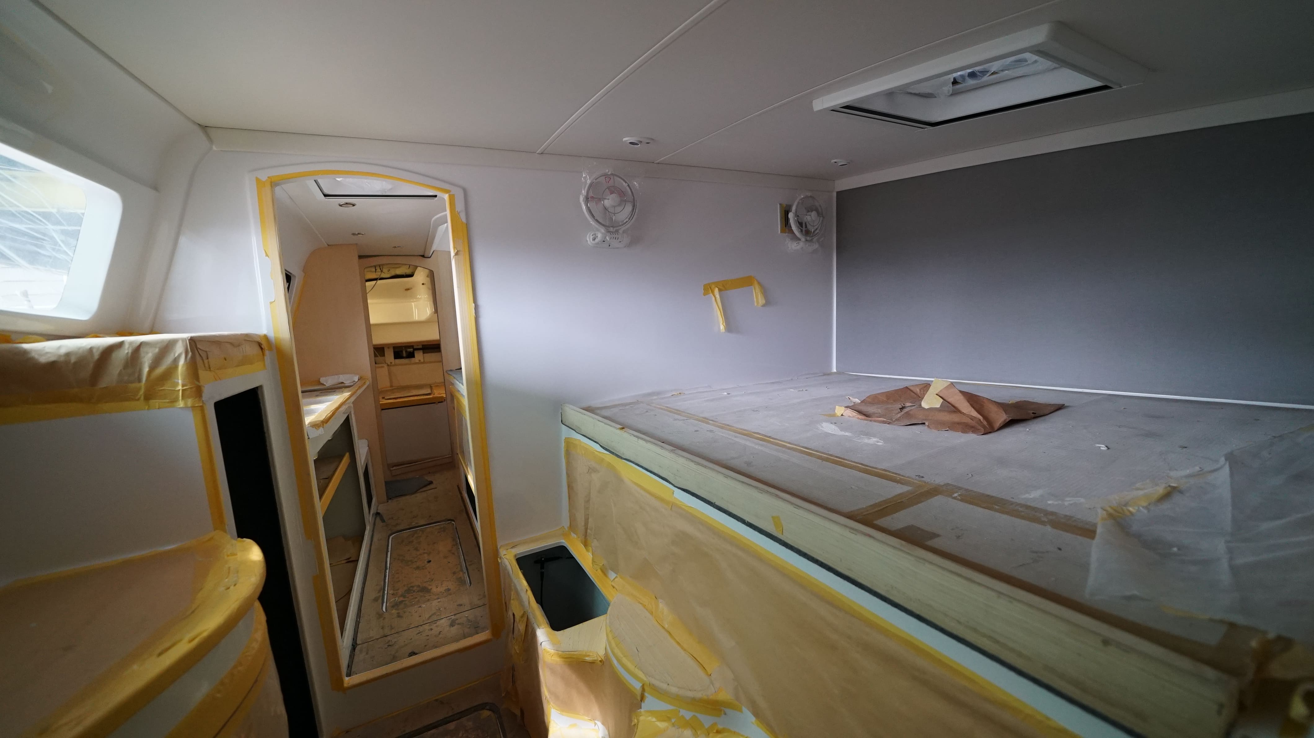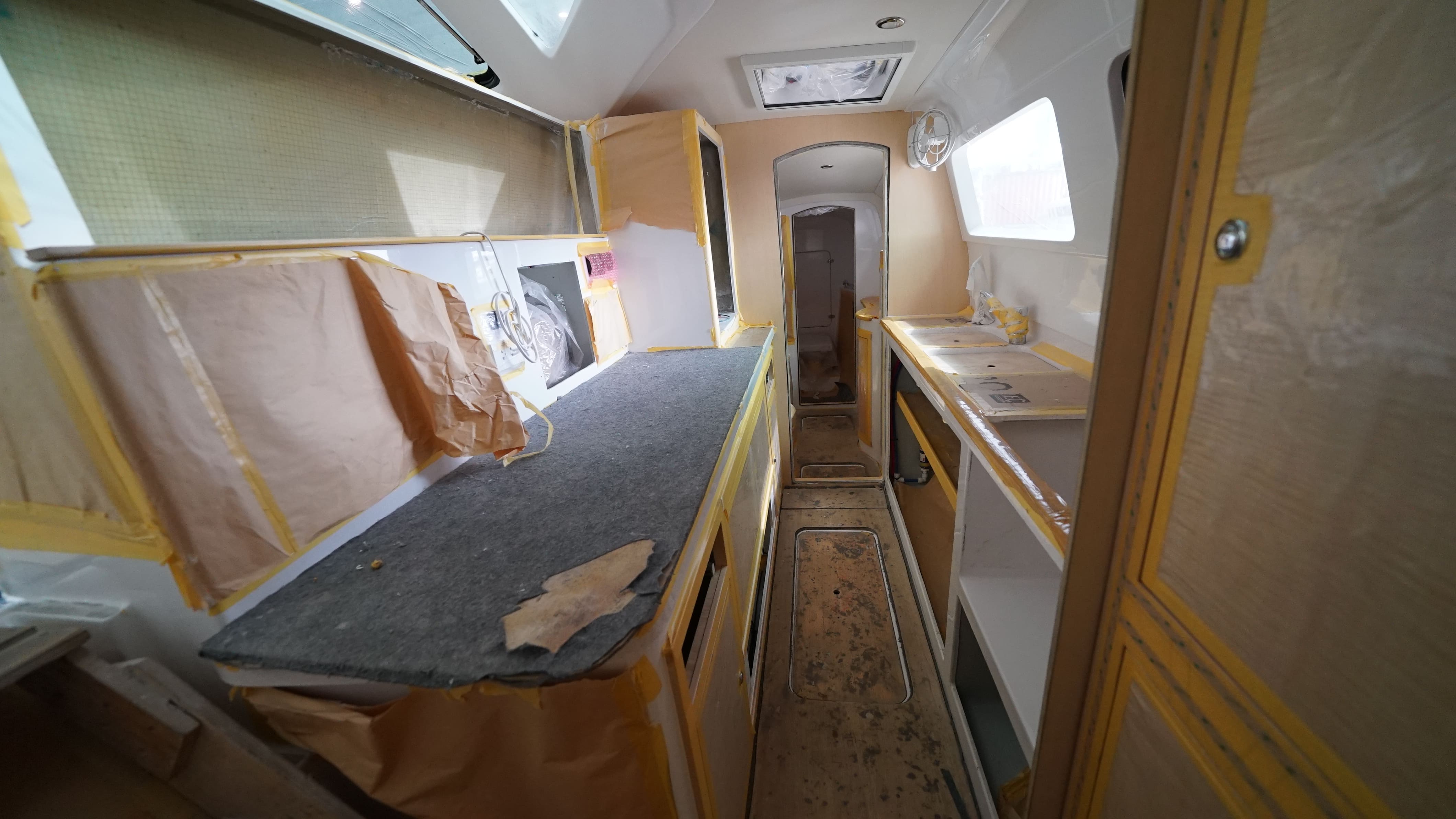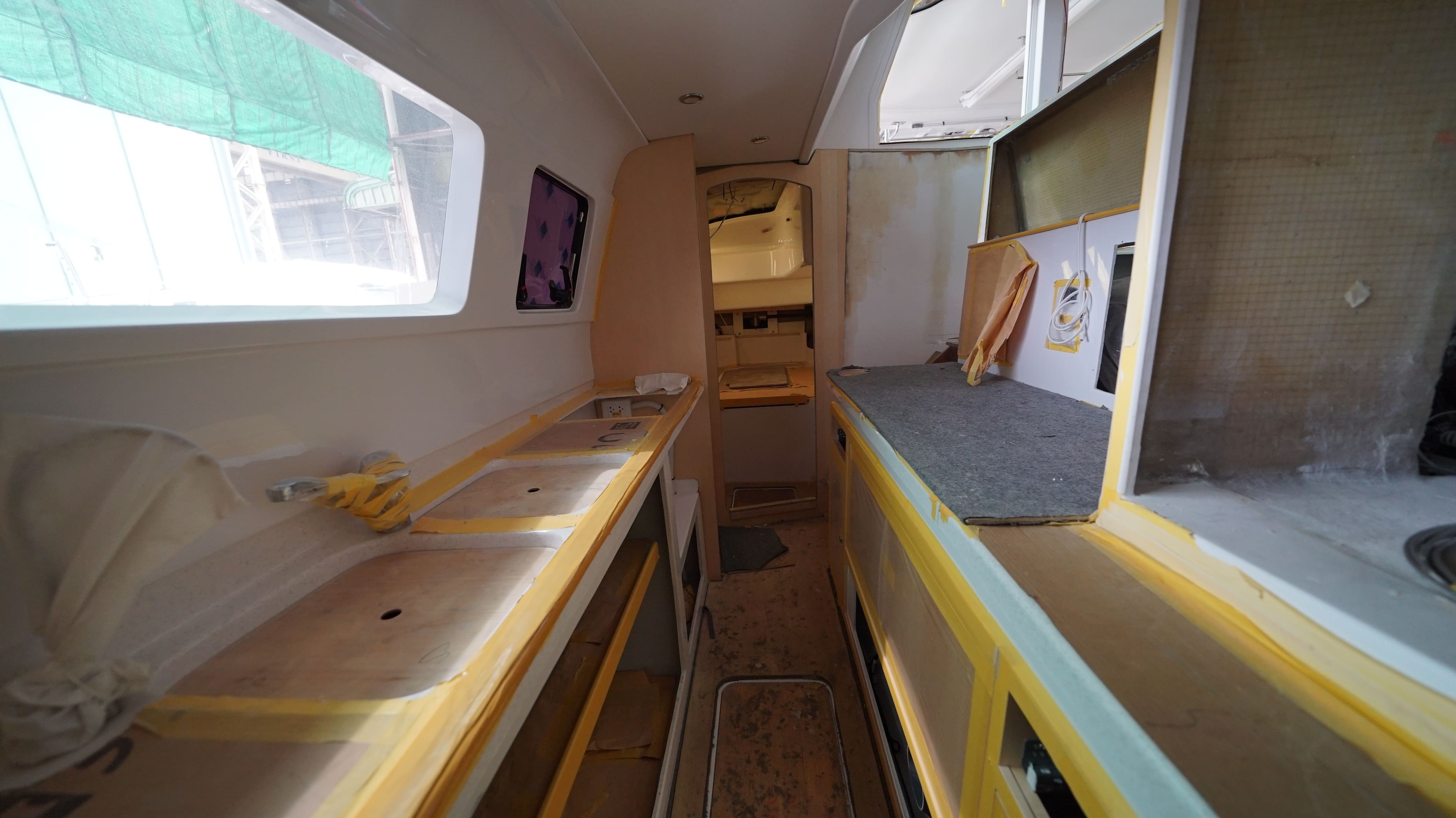 We are now working on the steering (50%), electrical and plumbing systems, LPG (75%), and timber fit-out (75%).