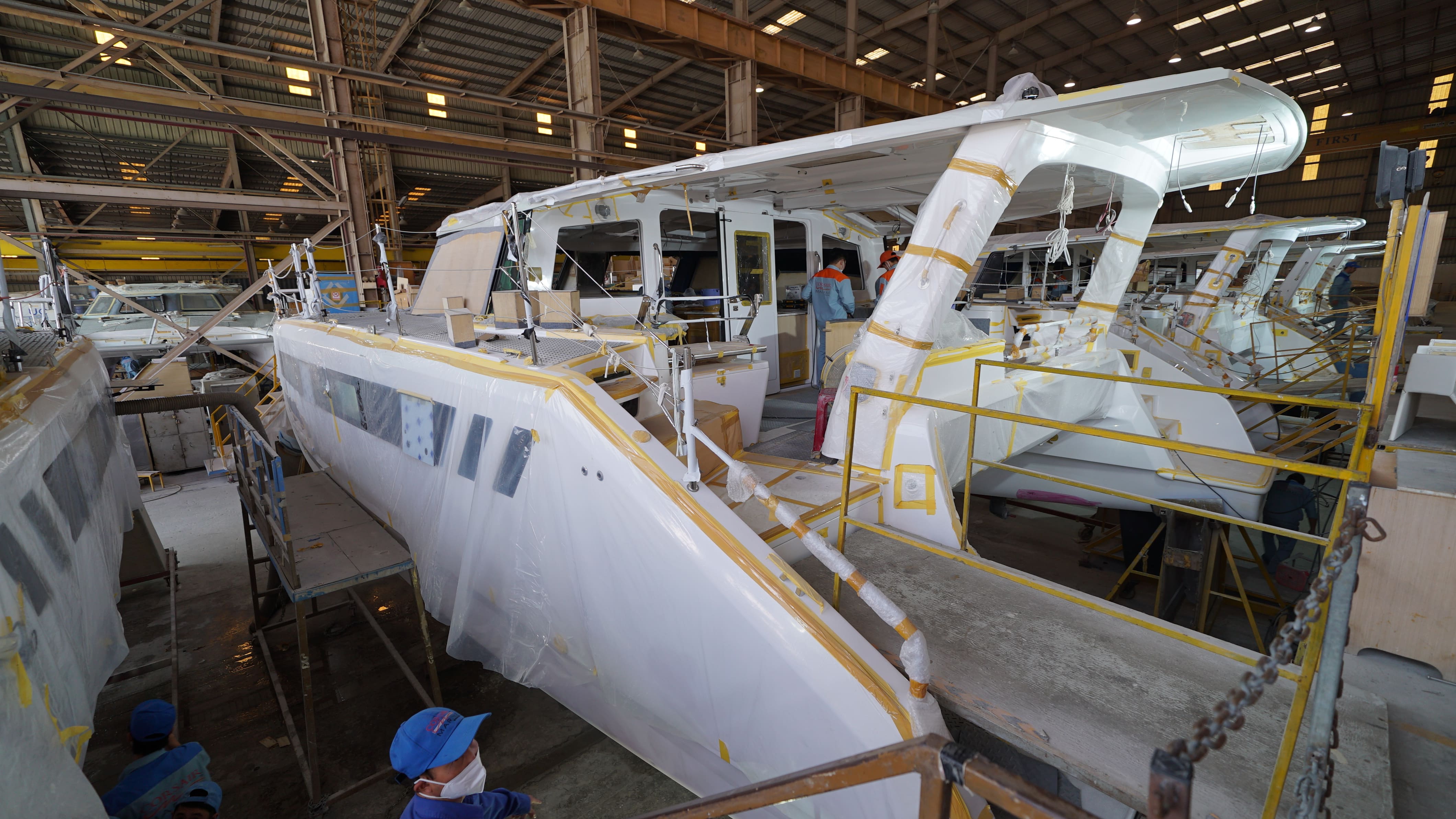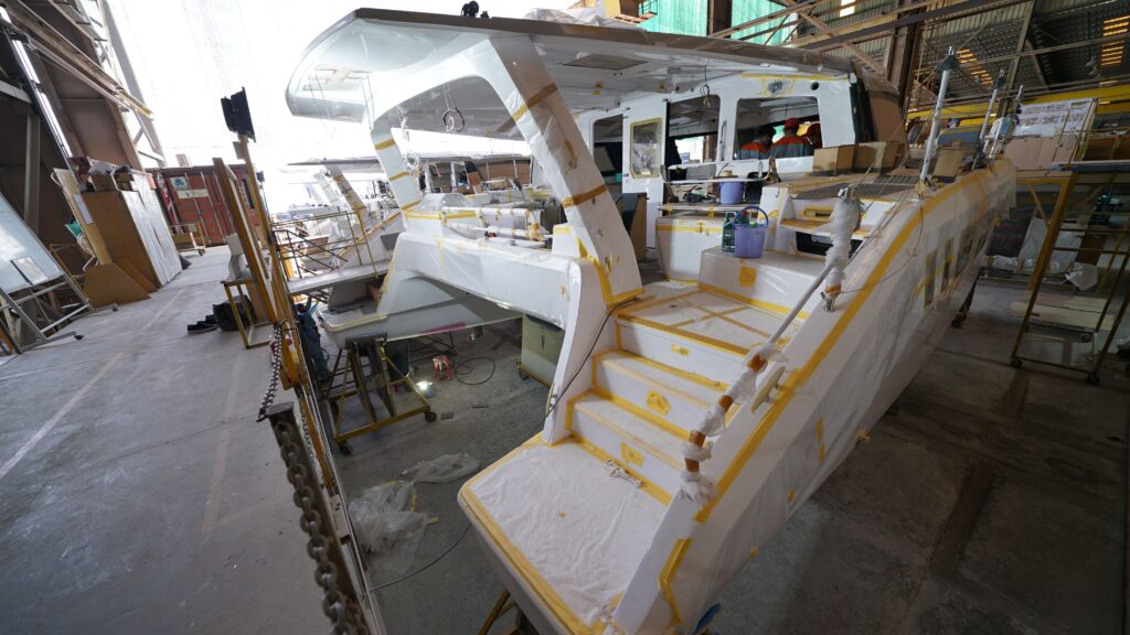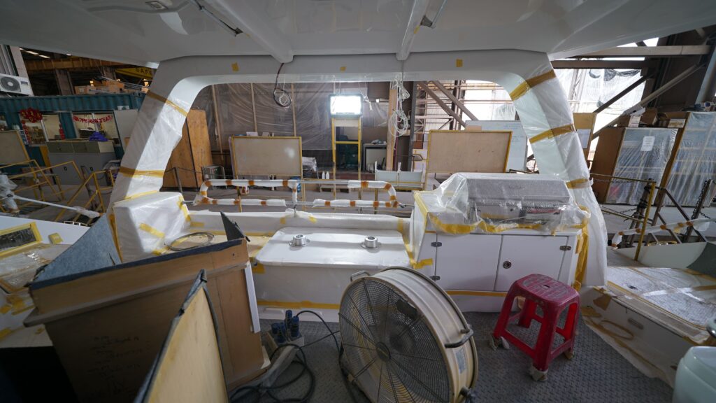 Posted on January 15, 2026January 15, 2026 by updatesProduction Update – Fit out Your boat is progressing well in the Fit out stage. We recently completed the engines, saloon windows, hullside windows, A-frame, gelcoat repair, deck hardware, hatches.Our Production team is working on LPG, plumbing, and electrical parts.