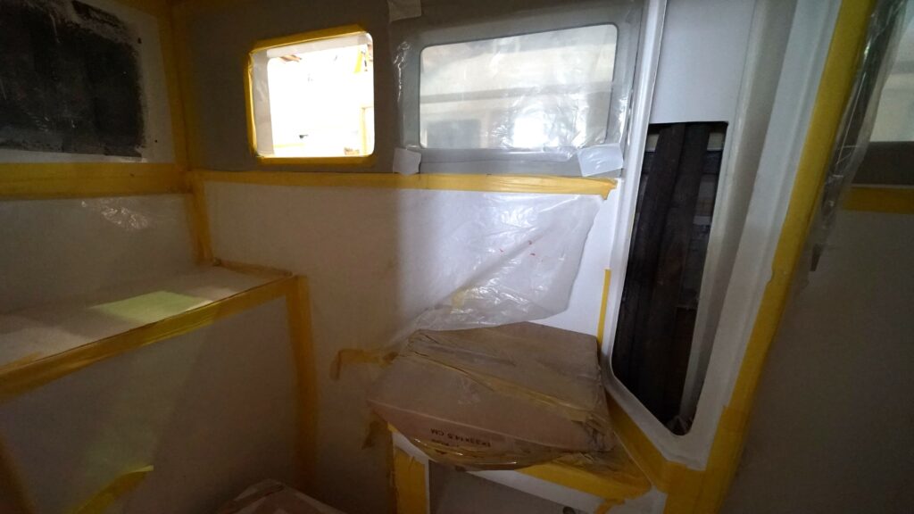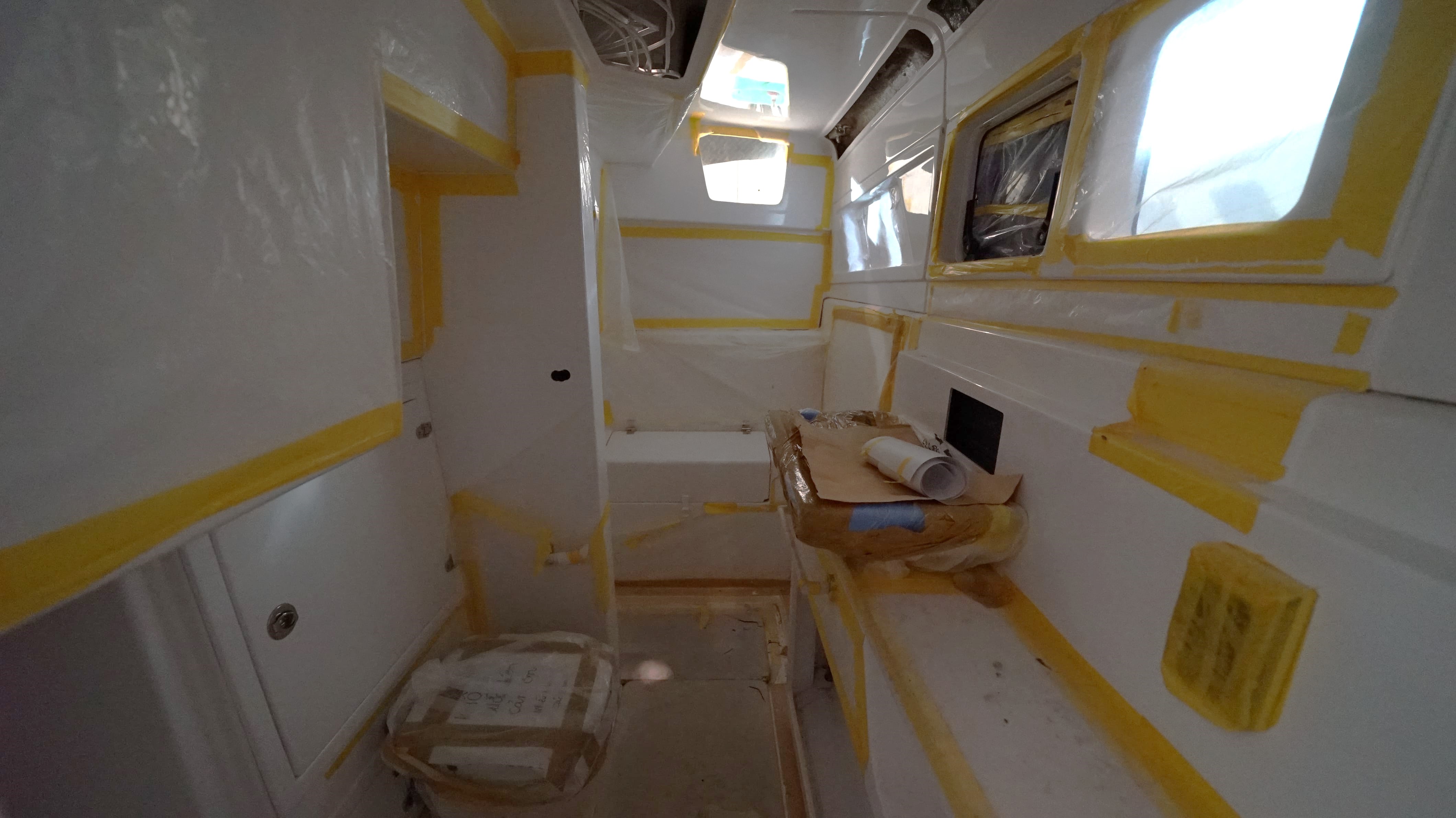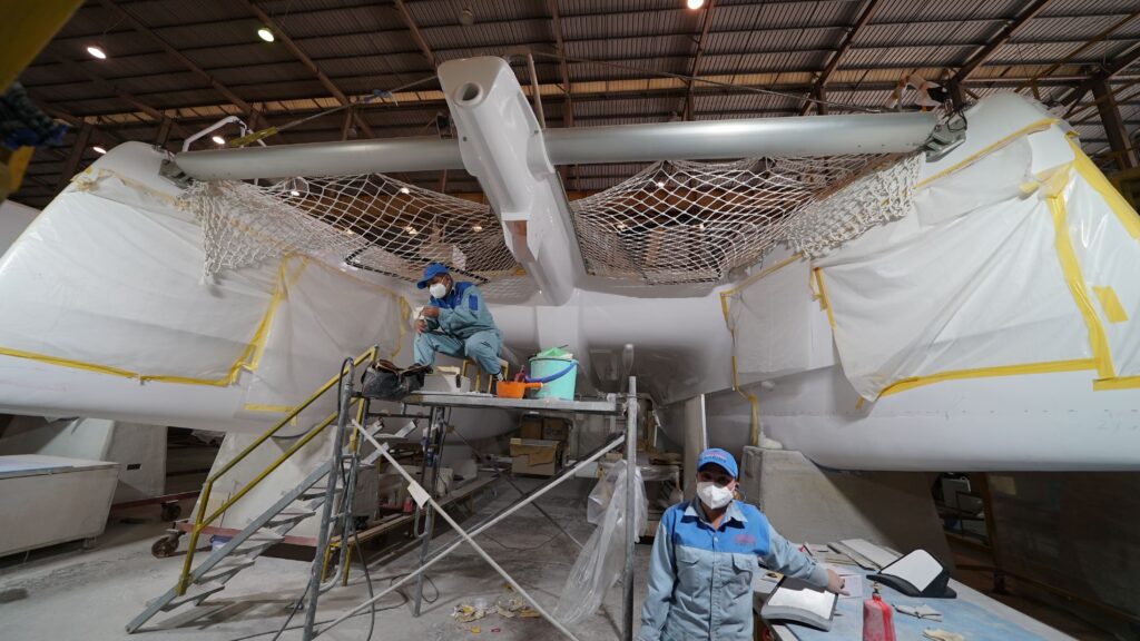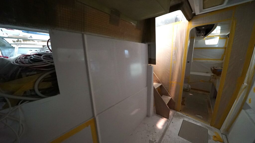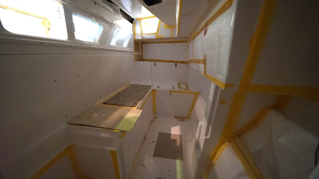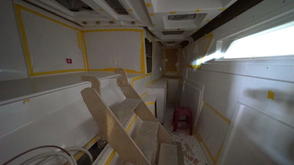 Our Production team is currently working on stanchion (75%), windows & hatches (40%), deck hardware (40%), electric (35%), plumbing & LPG (35%), steering (20%), and gelcoat at 85%.